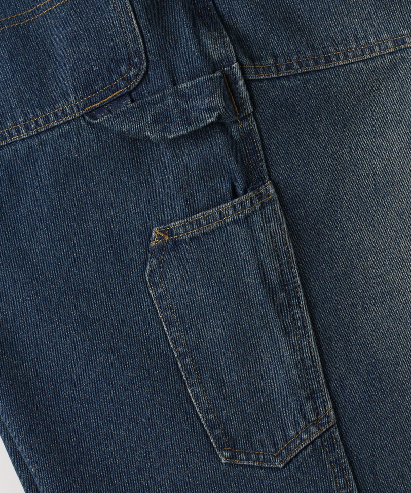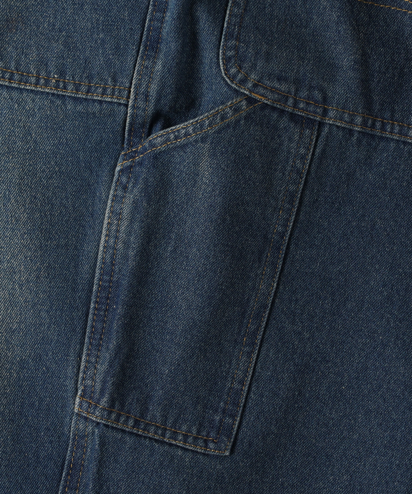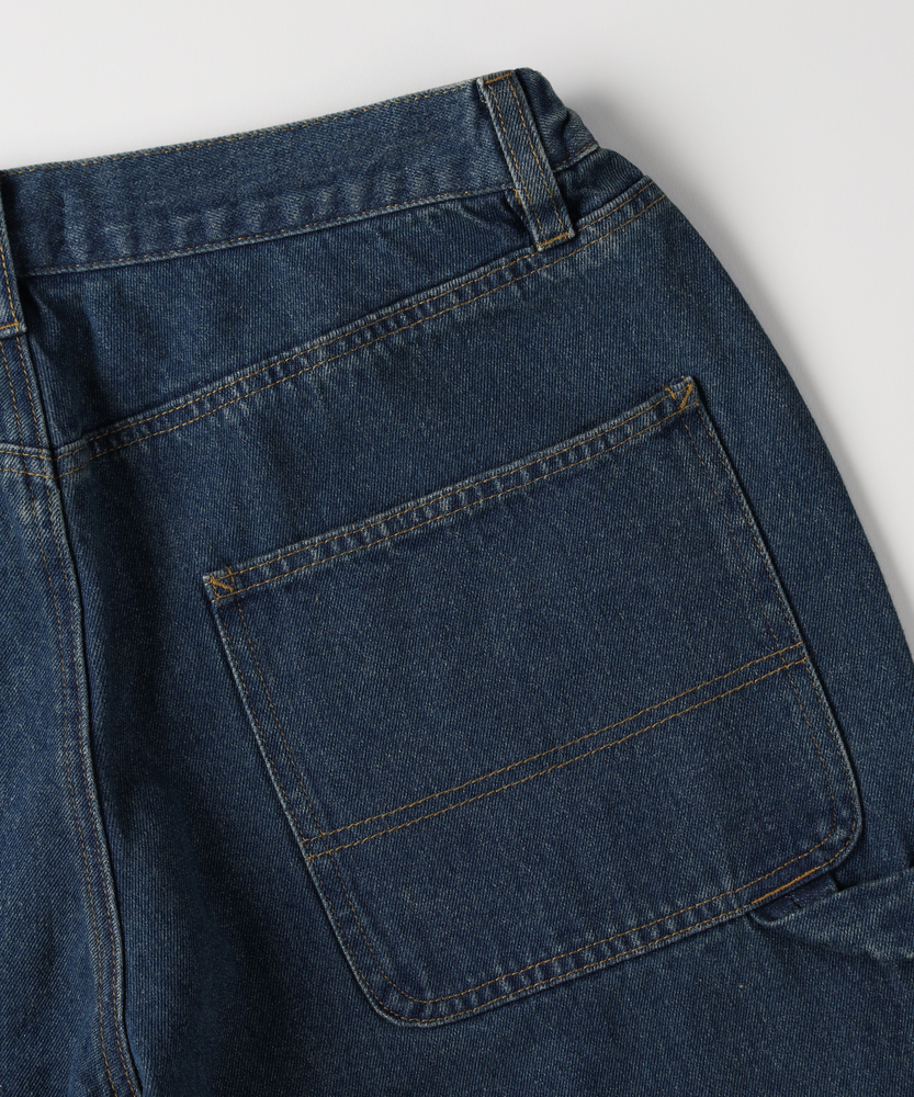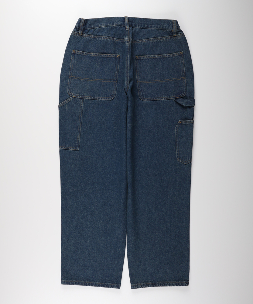 【仕様】機能美を追求したペインターパンツ。ワイドシルエットが特徴で、ゆったりとした履き心地と動きやすさを兼ね備えています。大きなフロントポケットやサイドポケットが実用的で、カジュアルながらもスタイリッシュな印象を与えます。【素材】 綿100%のデニム生地を使用し、肌に優しい柔らかさが特徴。しっかりとした厚みと加工感が、デニムならではの味わいを演出します。洗い込むほどに風合いを増し、経年変化を楽しむことができます。 【スタイリング】 シンプルなTシャツやプルオーバーと合わせることで、リラックスしたカジュアルスタイルが完成します。スニーカーやブーツを合わせれば、アクティブな印象に。アクセントとしてキャップやバックパックを加えれば、より個性的なコーディネートが楽しめます。