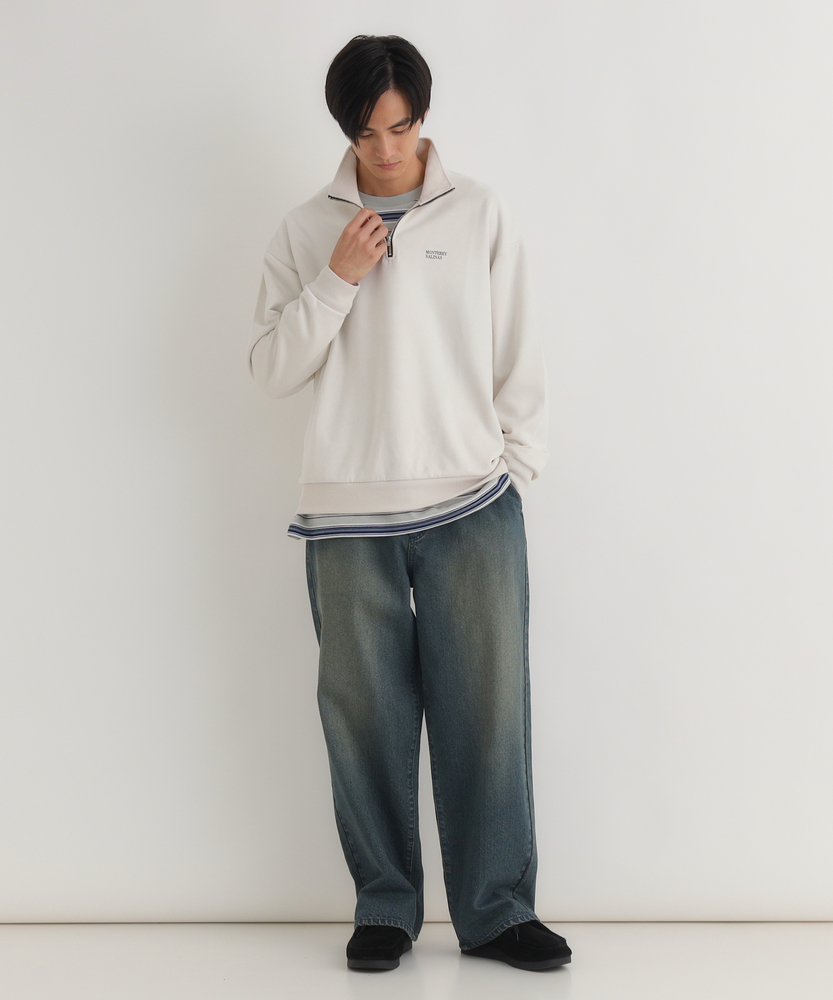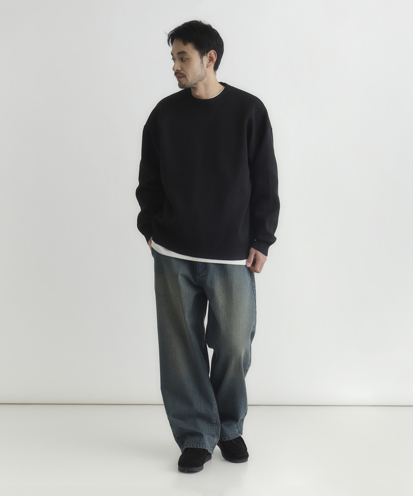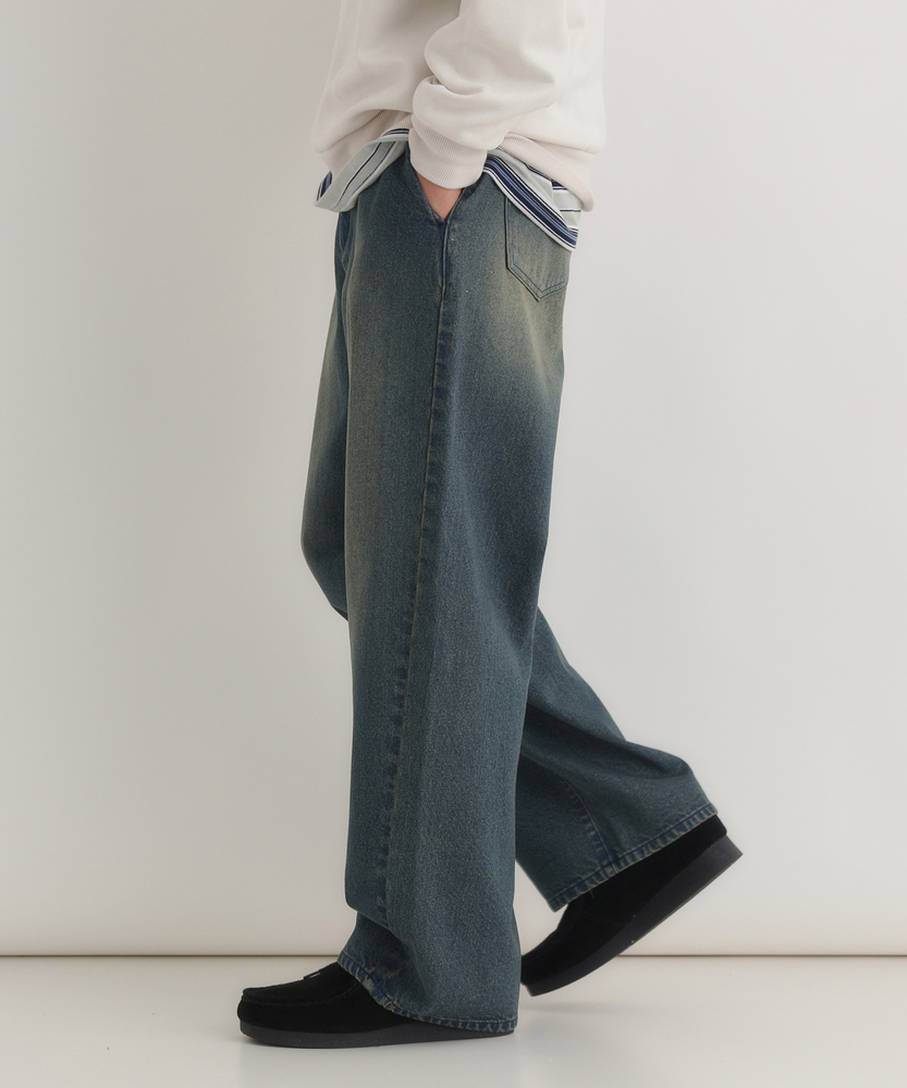 休日も楽にカッコよく。大人も綺麗に穿けるバギーシルエット。ウエストゴム&人気のバギーシルエットでお洒落さと快適さの良いトコ取り!大人の1ランク上のカジュアルスタイルに。■Point・トレンドのバギーシルエット。ゆったりフィットだけどやり過ぎていない。大人も穿きやすいシルエットを実現。・ウエストゴムで楽な穿き心地。・トレンドの加工感のデニムはコーデを選ばず、抜群の使い回し易さ。・オールシーズン使える点も嬉しいポイント!【仕様】ゆったりとしたバギーシルエットが特徴のこのジーンズは、リラックスしたスタイルを演出します。イージーウエストとウエスト紐により、快適なフィット感を実現。カジュアルな加工感が、デイリーユースにぴったりの一着です。【素材】12ozのC100デニムを使用しており、しっかりとした生地感が魅力。耐久性に優れ、長く愛用できるアイテムです。デニム特有の風合いが、コーディネートにこなれた印象を与えます。 【スタイリング】 シンプルなトップスと合わせることで、リラックスしたカジュアルスタイルが完成。スニーカーやブーツと組み合わせれば、休日のカジュアルスタイルにも最適です。【着用コメント】ゆったりとしたシルエットで、ワンサイズ上げて穿いてもトレンド感抜群です!加工感が綺麗なので、どんなコーデにも取り入れやすいのも特徴の1つです。綿100%素材でしっかりとした生地感、ウエストは、内側にある紐で調節可能です!足幅は、ゆったりめに感じました。