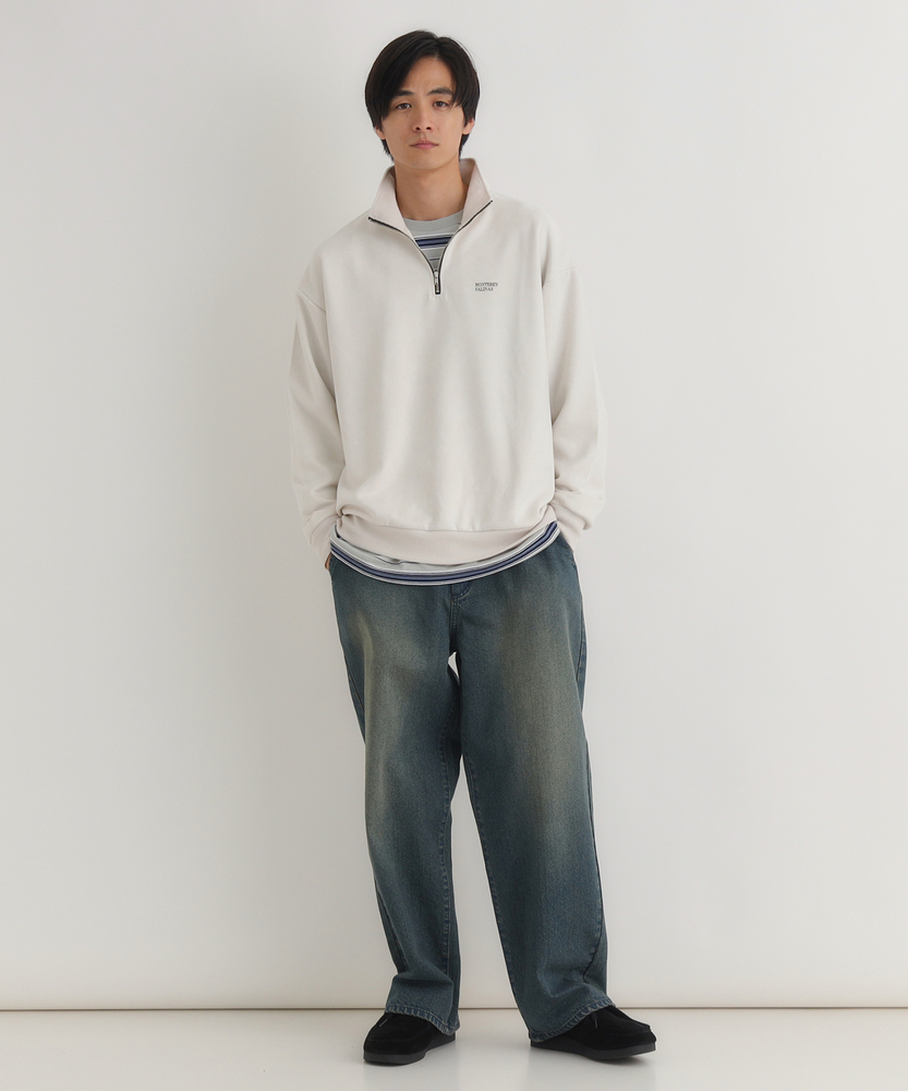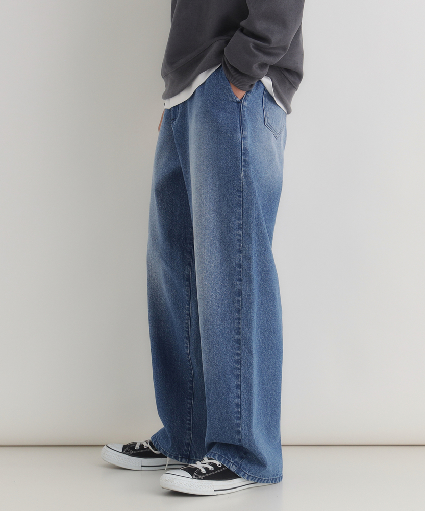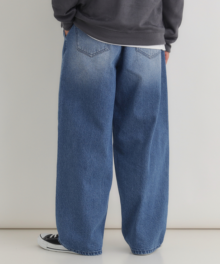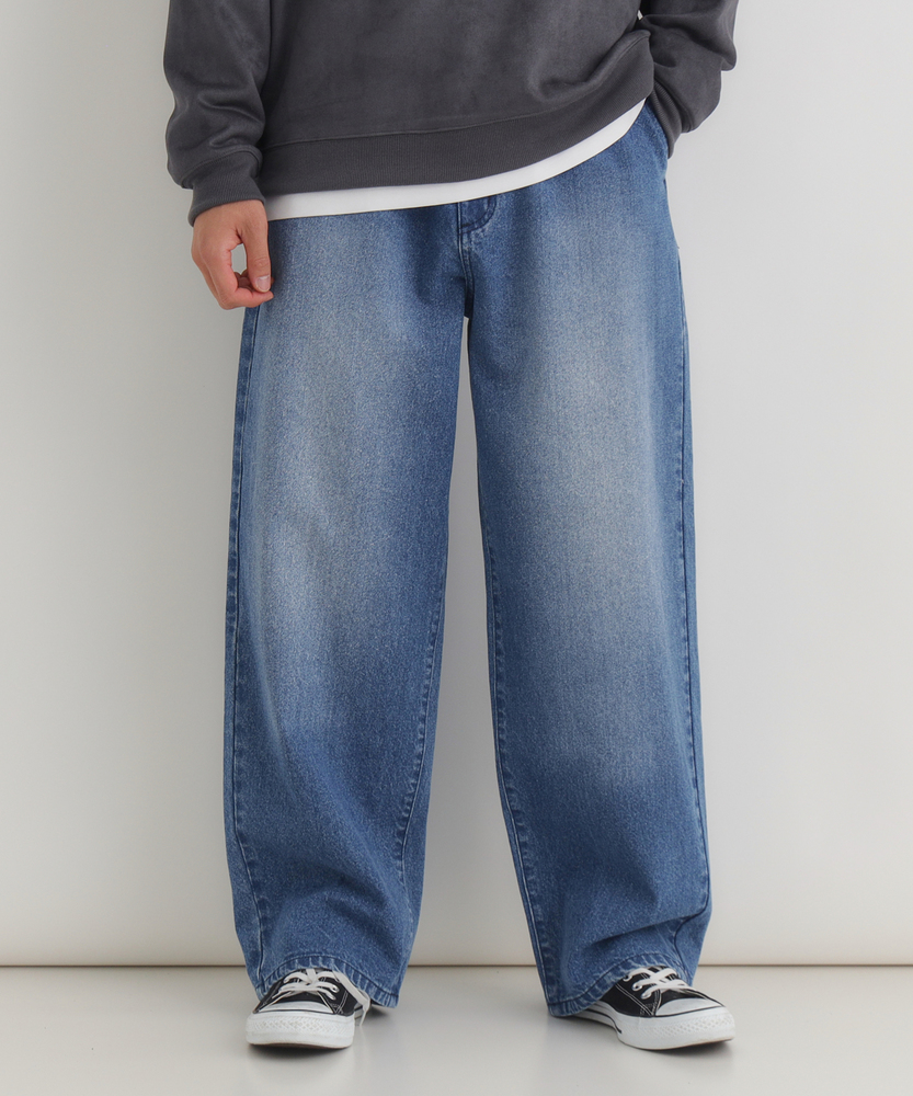 休日も楽にカッコよく。大人も綺麗に穿けるバギーシルエット。ウエストゴム&人気のバギーシルエットでお洒落さと快適さの良いトコ取り!大人の1ランク上のカジュアルスタイルに。■Point・トレンドのバギーシルエット。ゆったりフィットだけどやり過ぎていない。大人も穿きやすいシルエットを実現。・ウエストゴムで楽な穿き心地。・トレンドの加工感のデニムはコーデを選ばず、抜群の使い回し易さ。・オールシーズン使える点も嬉しいポイント!【仕様】ゆったりとしたバギーシルエットが特徴のこのジーンズは、リラックスしたスタイルを演出します。イージーウエストとウエスト紐により、快適なフィット感を実現。カジュアルな加工感が、デイリーユースにぴったりの一着です。【素材】12ozのC100デニムを使用しており、しっかりとした生地感が魅力。耐久性に優れ、長く愛用できるアイテムです。デニム特有の風合いが、コーディネートにこなれた印象を与えます。 【スタイリング】 シンプルなトップスと合わせることで、リラックスしたカジュアルスタイルが完成。スニーカーやブーツと組み合わせれば、休日のカジュアルスタイルにも最適です。【着用コメント】ゆったりとしたシルエットで、ワンサイズ上げて穿いてもトレンド感抜群です!加工感が綺麗なので、どんなコーデにも取り入れやすいのも特徴の1つです。綿100%素材でしっかりとした生地感、ウエストは、内側にある紐で調節可能です!足幅は、ゆったりめに感じました。