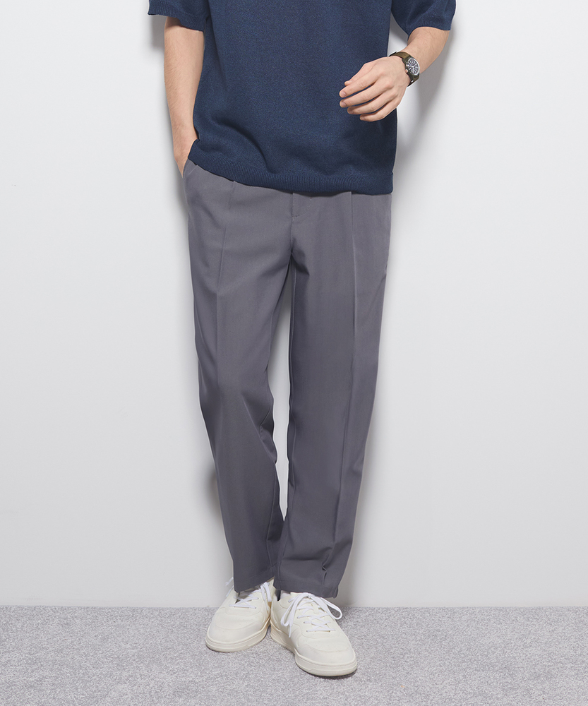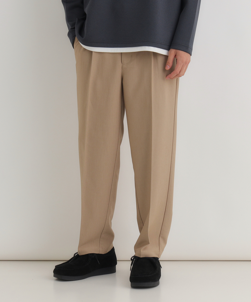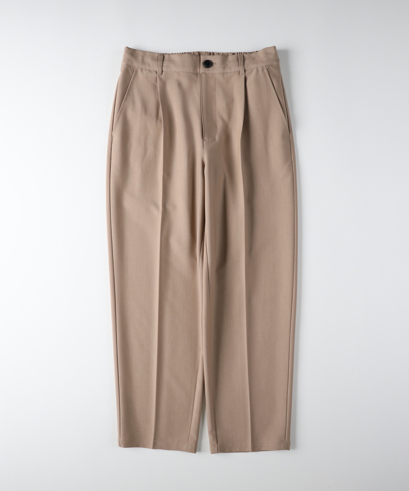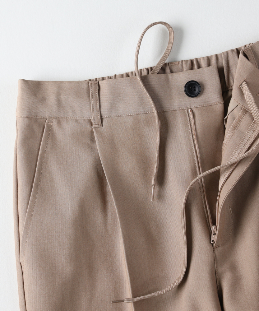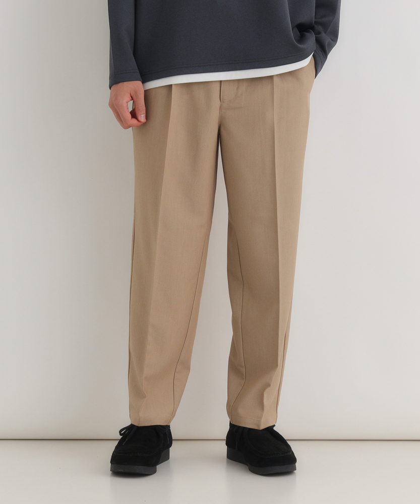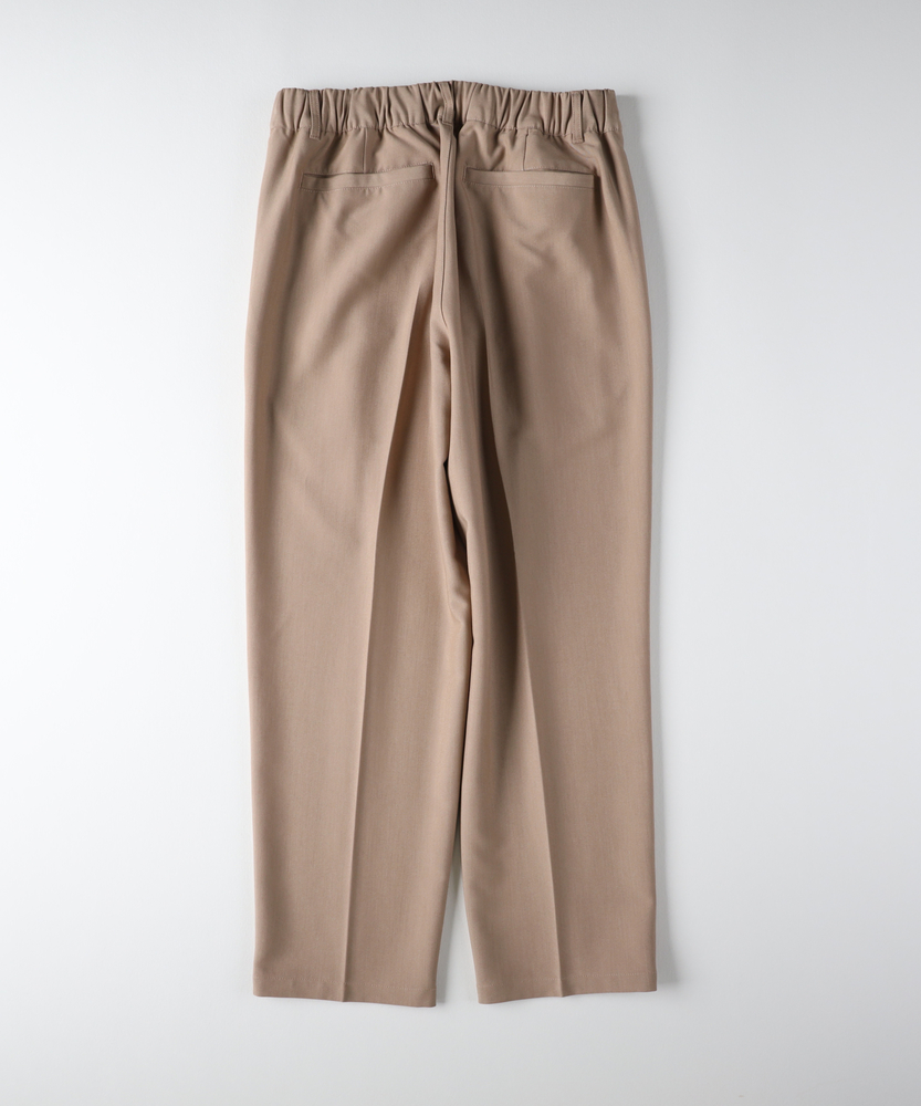 休日も楽にカッコよく。ウエストゴム&シワになりにくくて楽!大人の1ランク上のカジュアルスタイルに。TRトラウザーシリーズ■Point・腰周りはゆったり、裾に向かってすっきりとしたテーパードシルエット。・ウエストゴムで楽な穿き心地。・シワになりにくい素材でお手入れもラク【仕様】洗練されたテーパードシルエットが特徴のトラウザー。フロントのタックが立体感を生み出し、スタイリッシュな印象を与えます。ウエストはゴム仕様で、快適な着用感を実現しています。【素材】 軽やかなTR素材を使用。シワになりにくく、動きやすさを兼ね備えたこのパンツは、デイリーユースに最適です。さらりとした肌触りで、季節を問わず快適に着用できます。 【スタイリング】シンプルなTシャツやシャツと合わせて、大人のカジュアルスタイルに幅広く対応。休日のカジュアルコーデの外しにオススメ。 【楽して上品。TRトラウザーシリーズ】TRトラウザーシリーズ▶