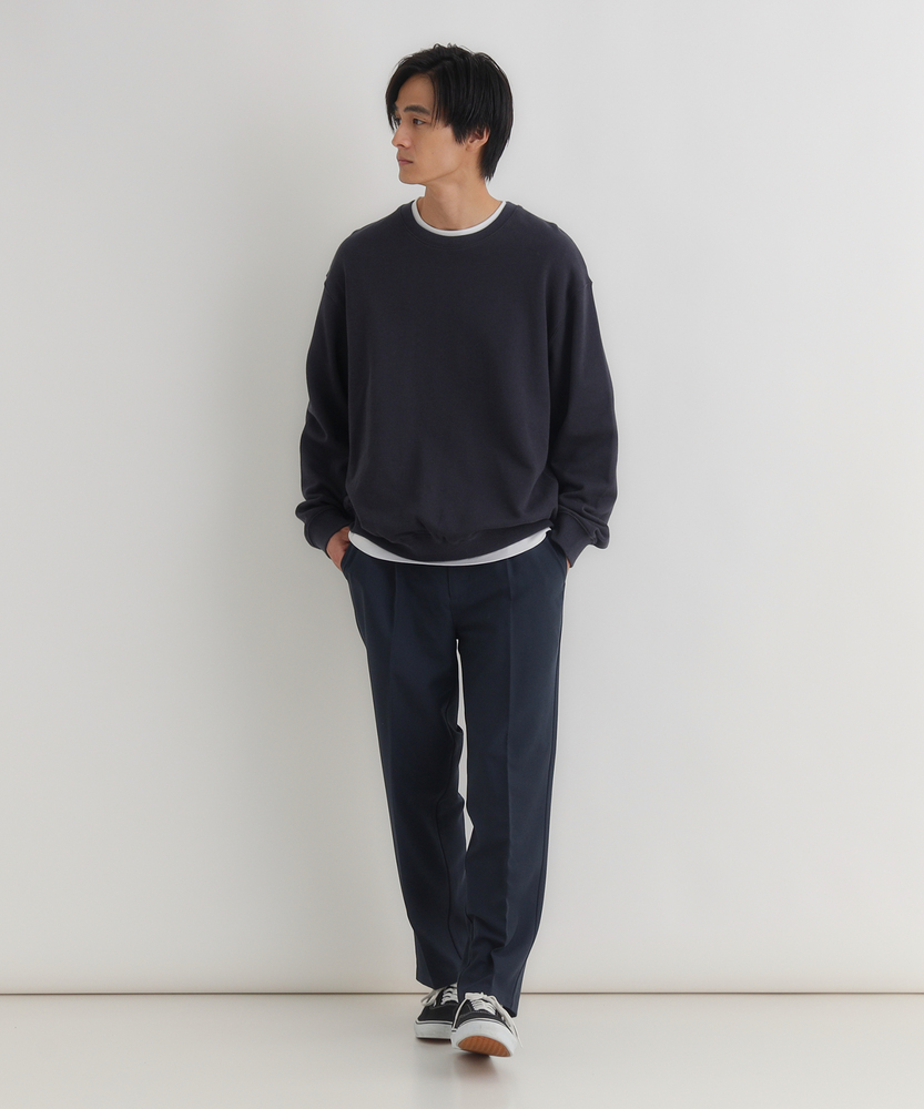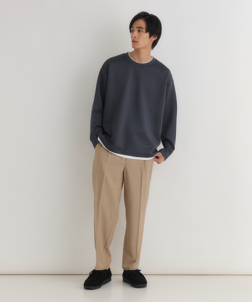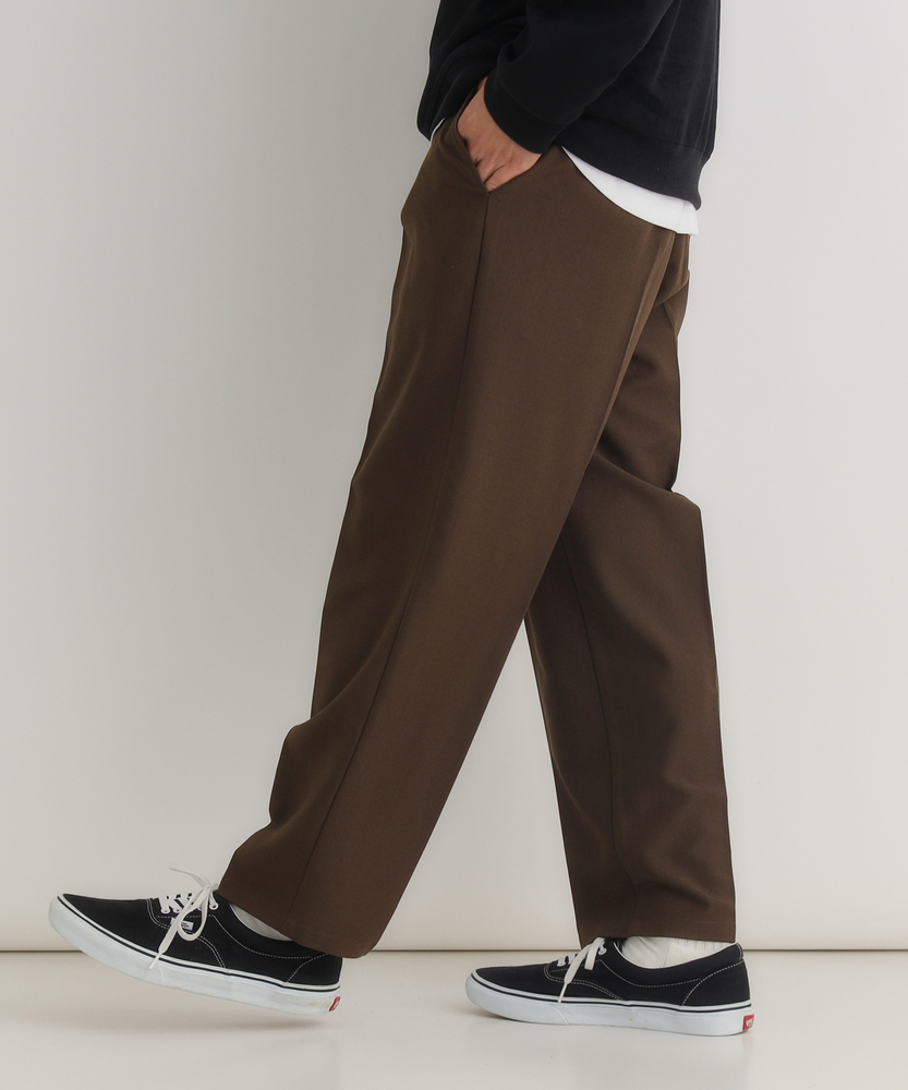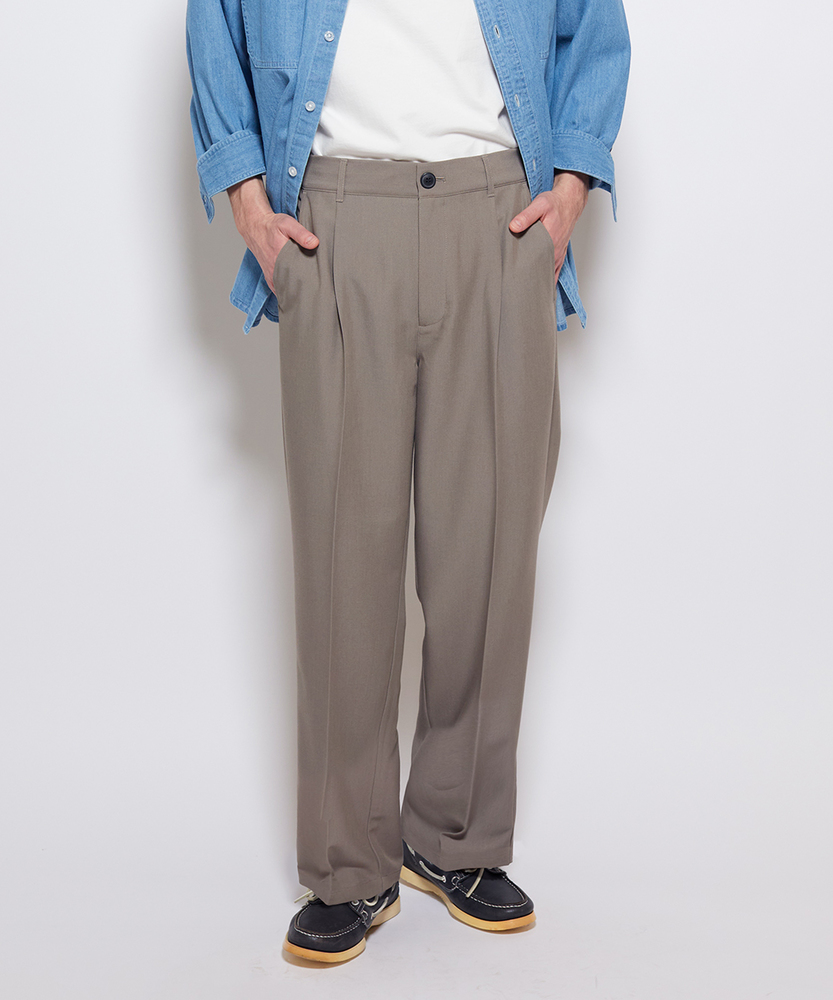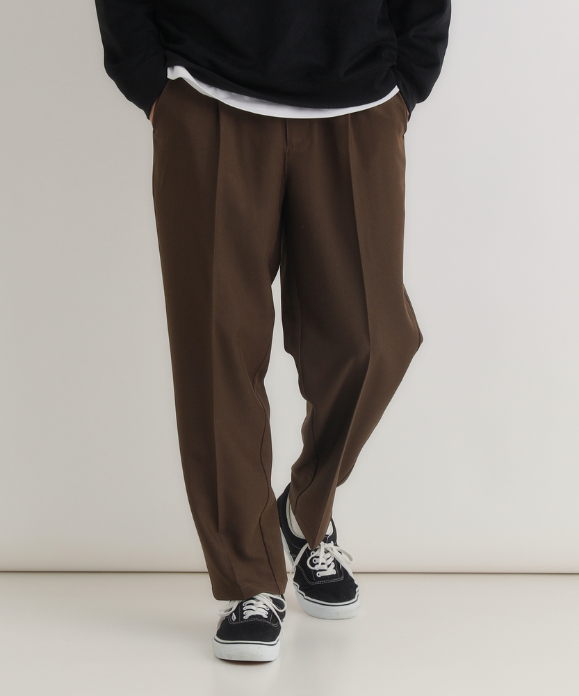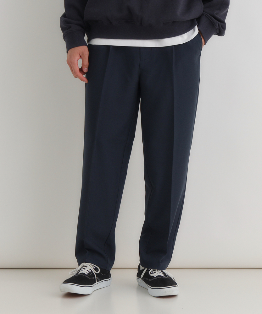 休日も楽にカッコよく。ウエストゴム&シワになりにくくて楽!大人の1ランク上のカジュアルスタイルに。TRトラウザーシリーズ■Point・腰周りはゆったり、裾に向かってすっきりとしたテーパードシルエット。・ウエストゴムで楽な穿き心地。・シワになりにくい素材でお手入れもラク【仕様】洗練されたテーパードシルエットが特徴のトラウザー。フロントのタックが立体感を生み出し、スタイリッシュな印象を与えます。ウエストはゴム仕様で、快適な着用感を実現しています。【素材】 軽やかなTR素材を使用。シワになりにくく、動きやすさを兼ね備えたこのパンツは、デイリーユースに最適です。さらりとした肌触りで、季節を問わず快適に着用できます。 【スタイリング】シンプルなTシャツやシャツと合わせて、大人のカジュアルスタイルに幅広く対応。休日のカジュアルコーデの外しにオススメ。 【楽して上品。TRトラウザーシリーズ】TRトラウザーシリーズ▶