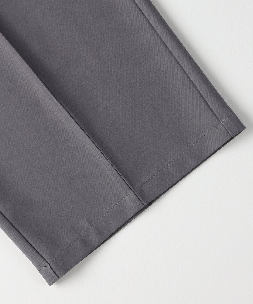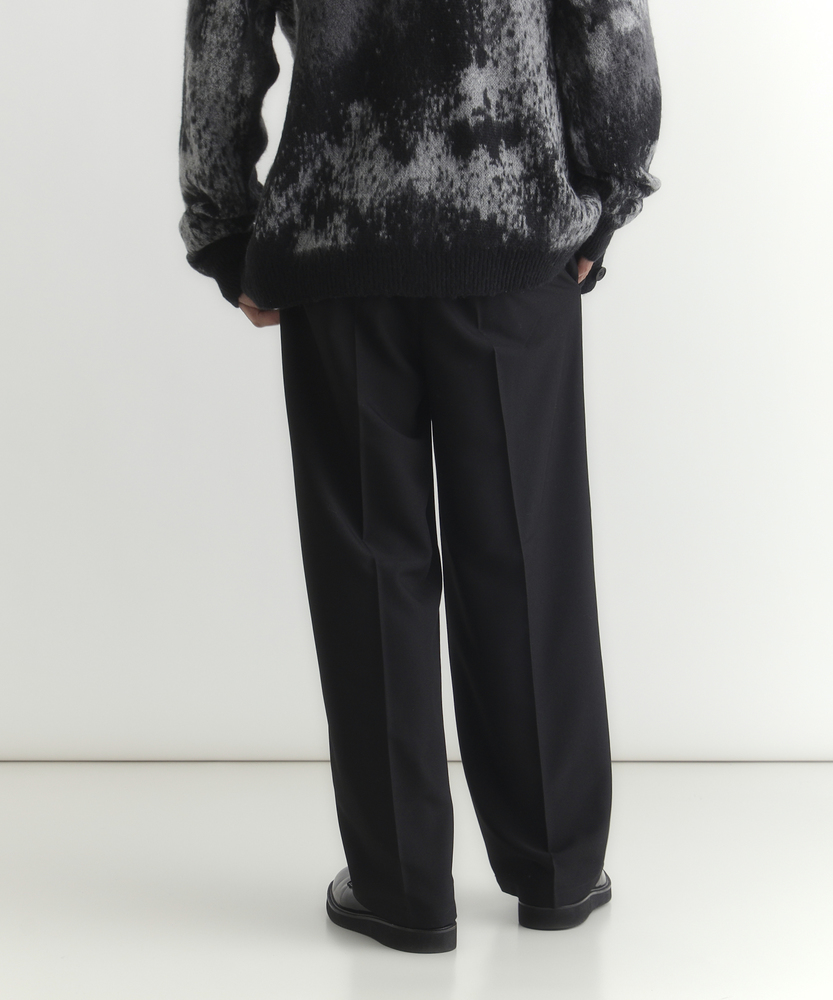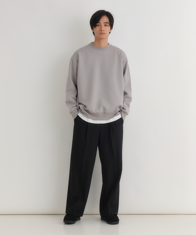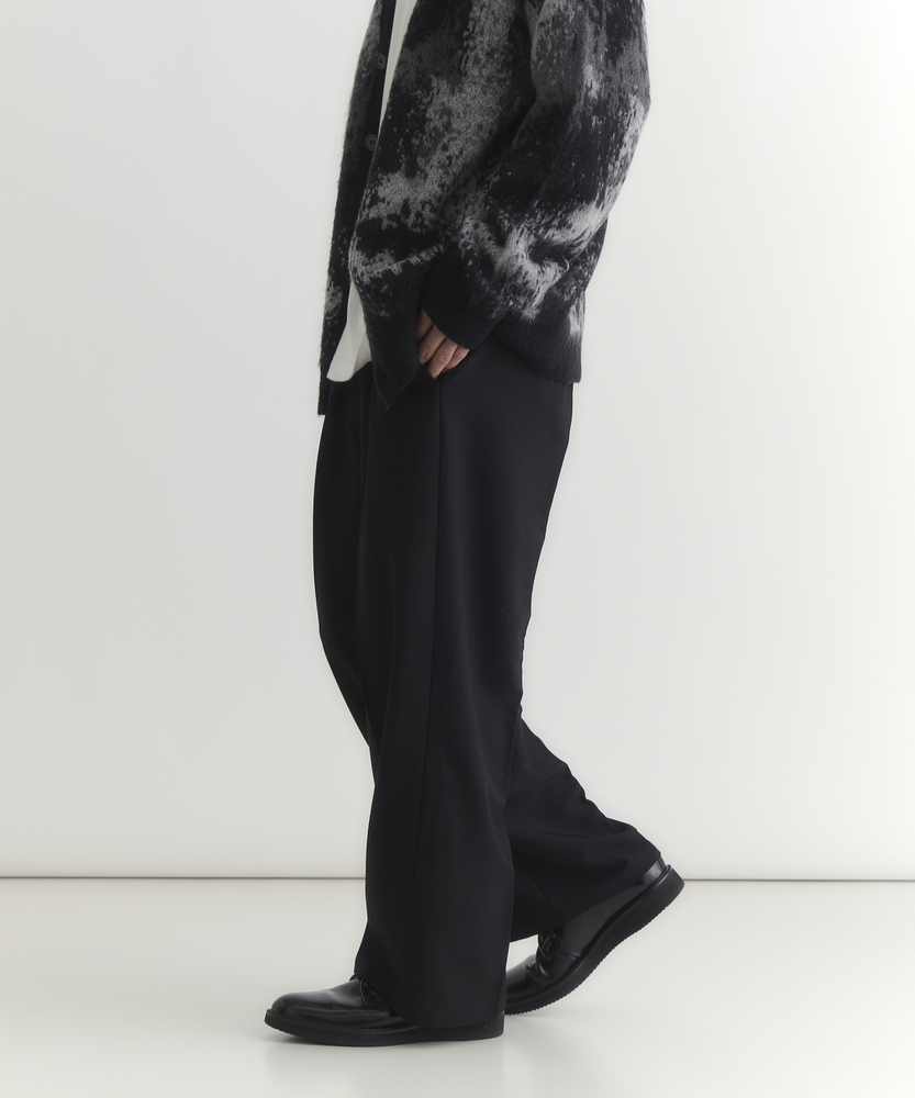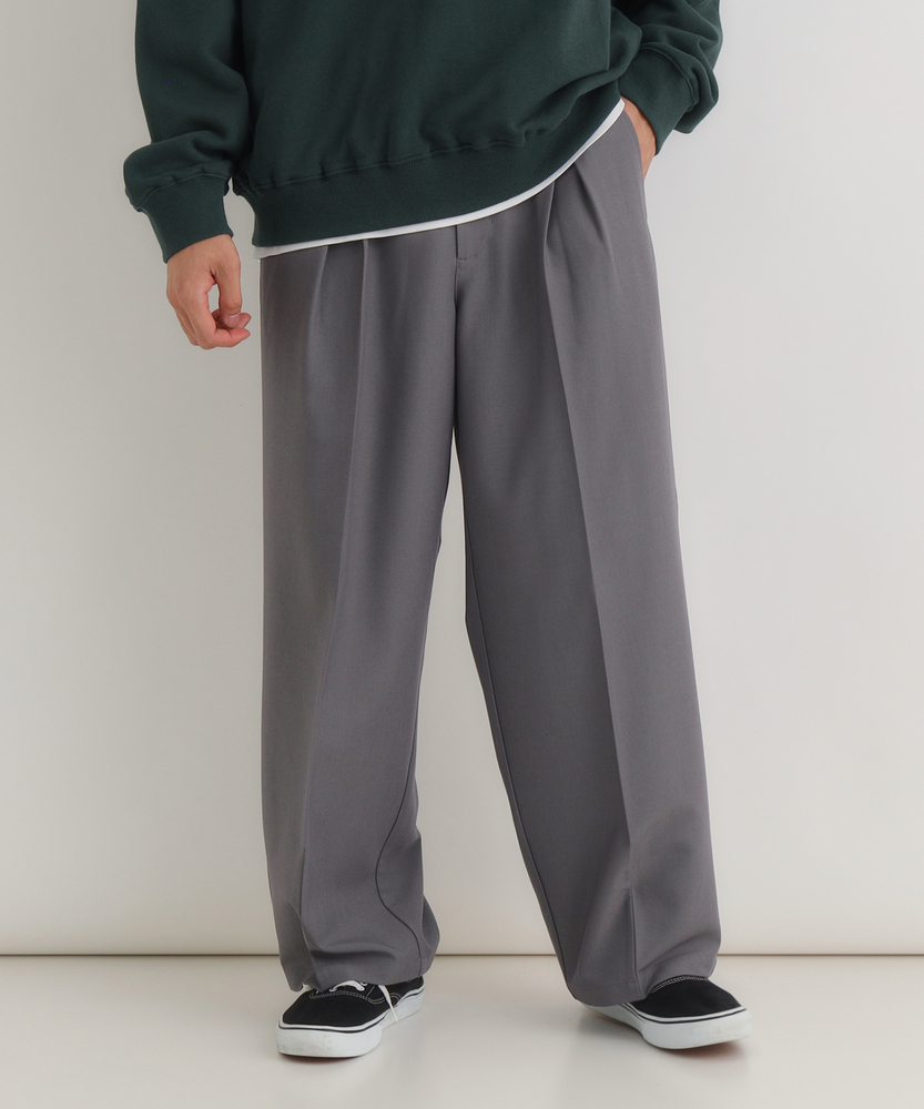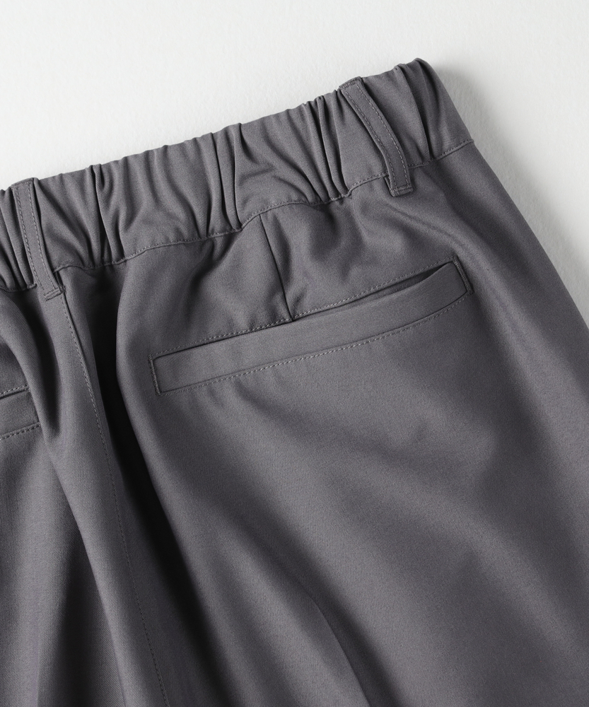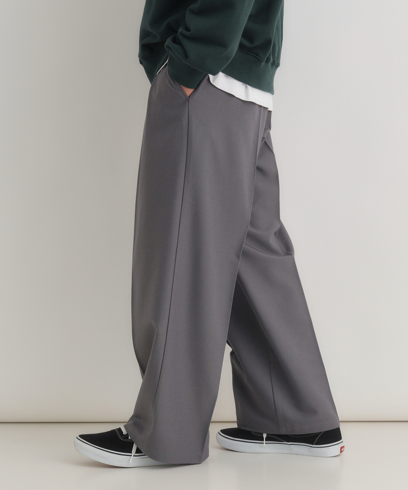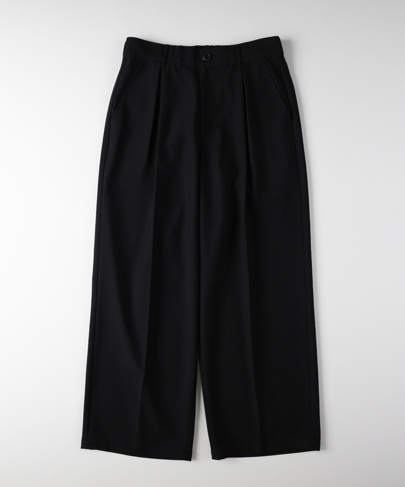 休日も楽にカッコよく。ウエストゴム&シワになりにくくて楽!1ランク上のカジュアルスタイルに。TRトラウザーシリーズ■Point・全体的にゆったりとしたトレンドのワイドシルエット。・ウエストゴムで楽な穿き心地。・シワになりにくい素材でお手入れもラク【仕様】ゆったりとしたワイドシルエットが特徴のトラウザー。フロントのタックが立体感を生み出し、リラックスした印象を与えます。ウエストはゴム仕様で、快適なフィット感を実現しています。【素材】 軽やかなTR素材を使用。シワになりにくく、動きやすさを兼ね備えたこのパンツは、デイリーユースに最適です。さらりとした肌触りで、季節を問わず快適に着用できます。 【スタイリング】 シンプルなTシャツやシャツと合わせて、大人のカジュアルスタイルに幅広く対応。スニーカーやサンダルを合わせることで、リラックスしたスタイルに。アクセサリーで個性をプラスすれば、洗練された印象に仕上がります。 【楽して上品。TRトラウザーシリーズ】TRトラウザーシリーズ▶