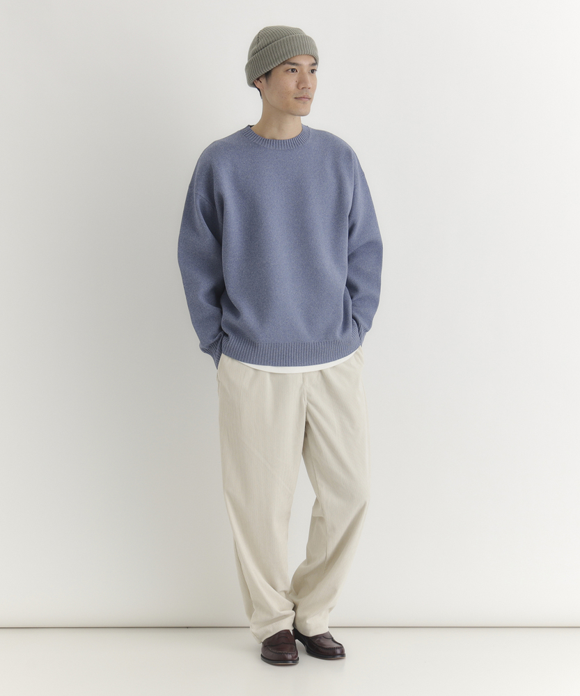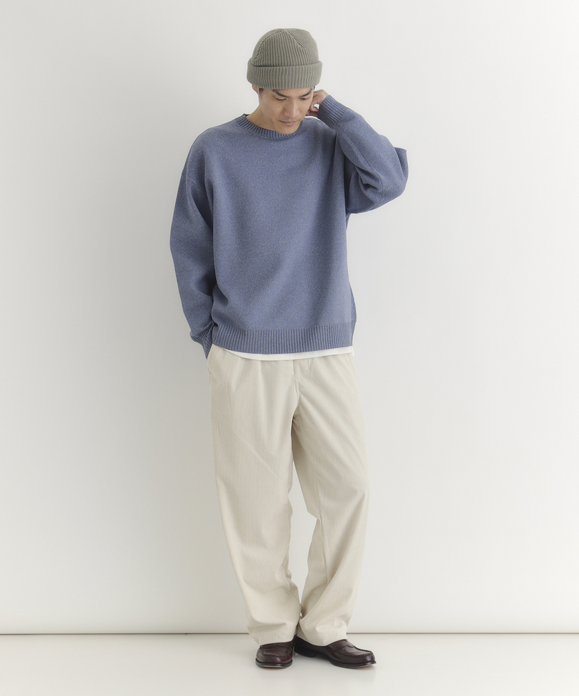 シンプルなTシャツやニットと組み合わせることで、リラックス感のあるコーディネートが完成。