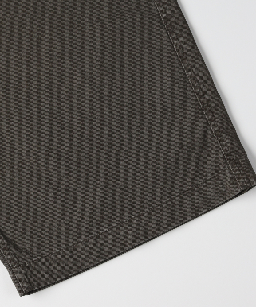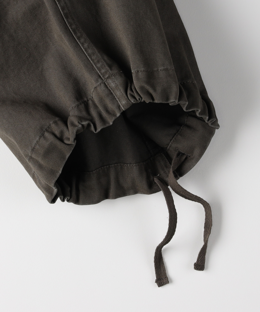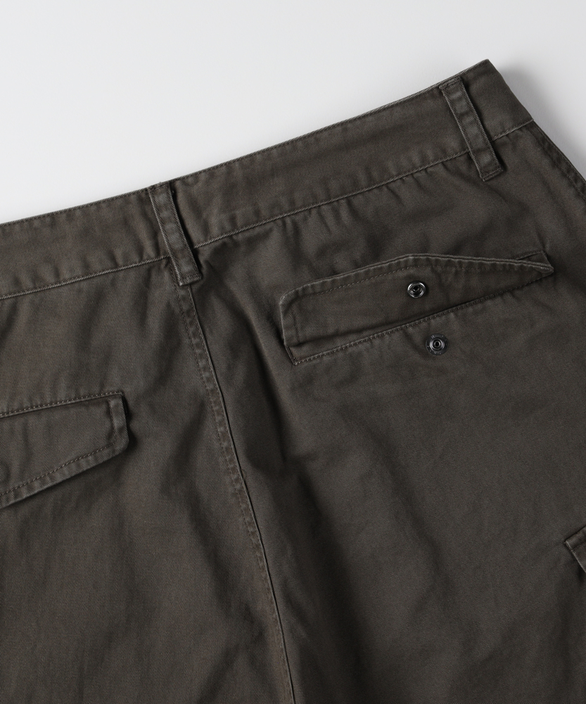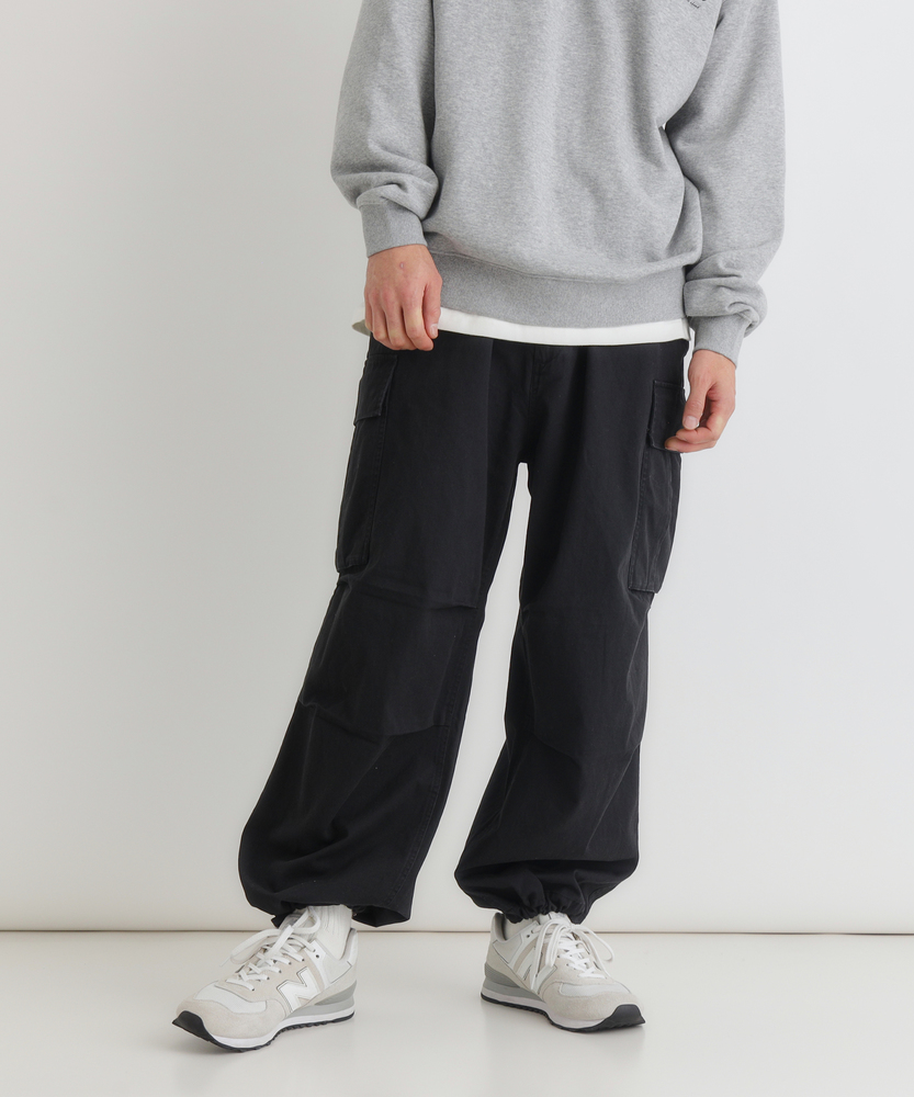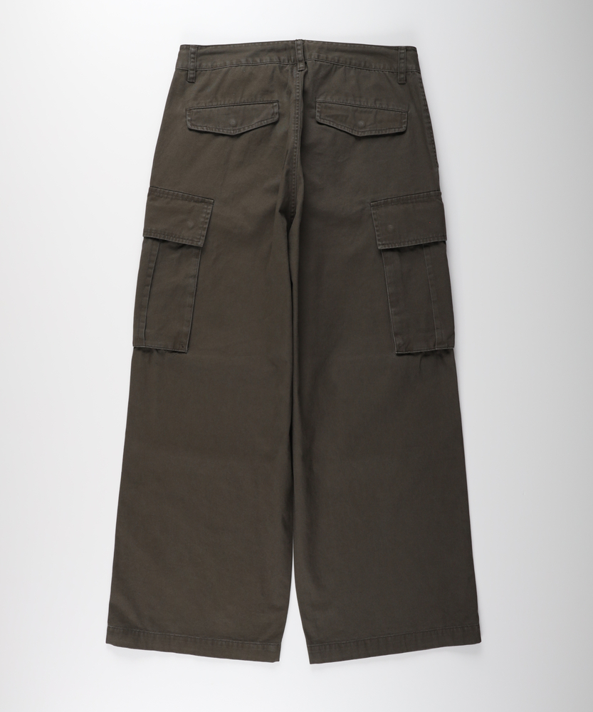 【仕様】古着のような味わい深い加工感が魅力のカーゴパンツ。ワイドシルエットがリラックスした印象を与え、カジュアルなスタイルにぴったりです。大きなサイドポケットが実用性を高め、機能美を兼ね備えたデザインに仕上がっています。【素材】 綿100%のコットンツイル生地を使用し、優しい肌触りと通気性を実現。しっかりとした厚みがありながら、軽やかな着心地が特徴です。古着のような色落ち加工が施されており、独自の風合いを楽しむことができます。 【スタイリング】 シンプルなTシャツやバンドカラーシャツとの組み合わせが絶妙です。スニーカーやサンダルでアクティブに決めたり、トレンドのアウターを重ねてスタイリングを楽しむことができます。多様な色展開が、シーンに合わせたコーディネートを可能にします。