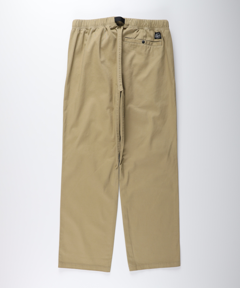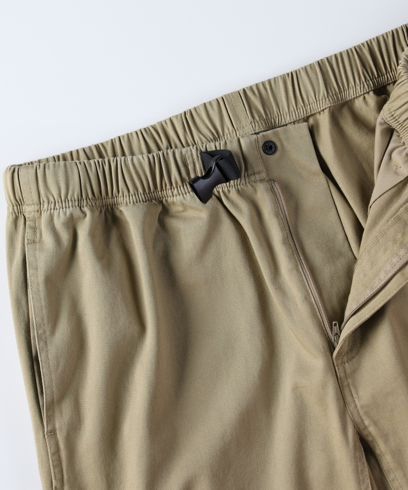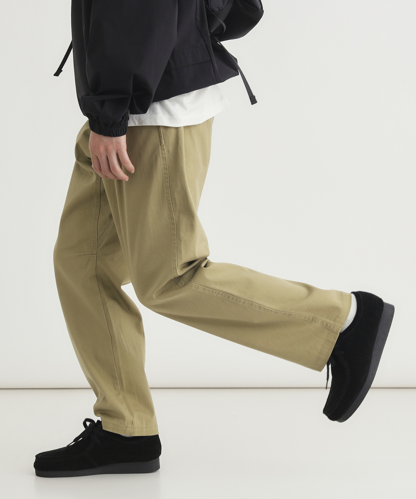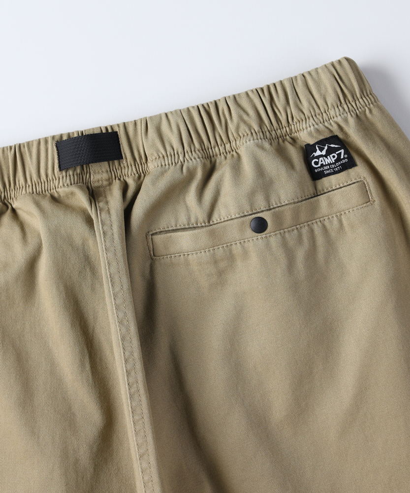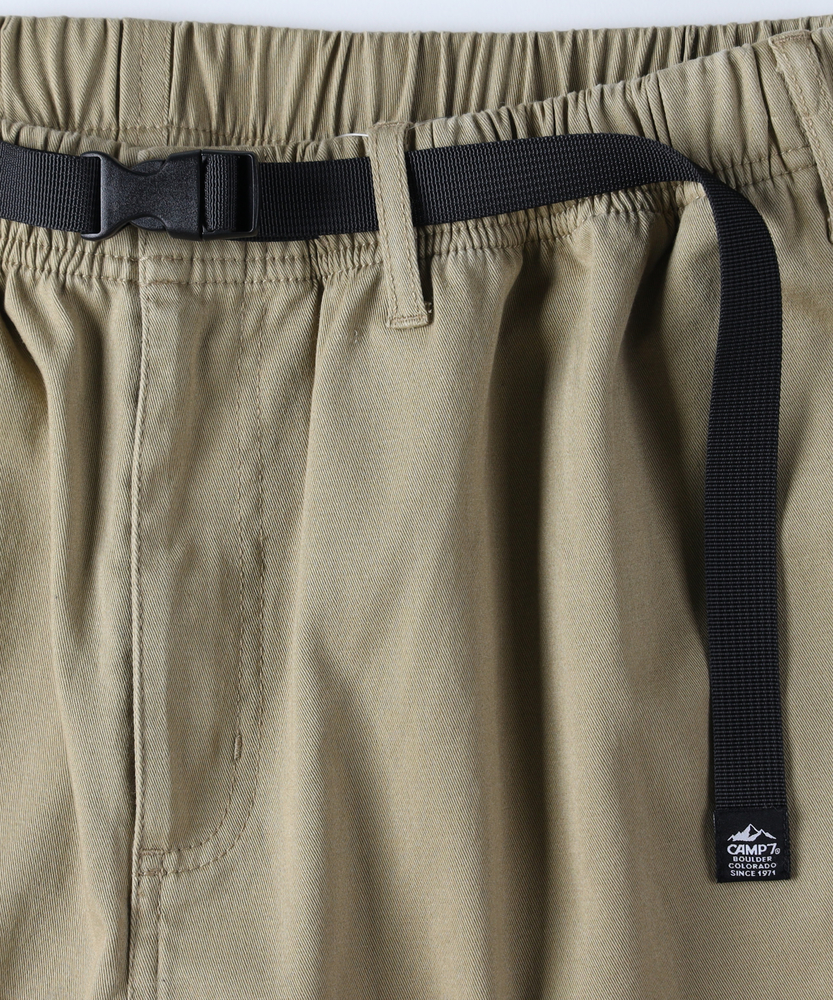 「動きやすさ」を追求した機能美。大人の休日を格上げする本格派パンツ。■Point・動きを妨げない「立体的な膝周り」膝部分にタックを入れた立体縫製を採用。屈伸運動やアクティブな動きもスムーズに。窮屈感を感じさせない快適な穿き心地です。・ストレスフリーな「ウエストゴム仕様」締め付け感のないリラックスしたフィット感。長時間の着用やドライブシーンでも快適。食後やリラックスタイムも楽に過ごせます。・脚のラインを拾いすぎないシルエット太すぎず細すぎない絶妙なバランス感。体型をカバーしつつ、すっきり見えを実現。野暮ったさを排除した都会的なラインです。・季節を問わず使える「タフな素材感」しっかりとしたハリのある生地を採用。デイリーからアウトドアまでガシガシ使える。長く愛用することで馴染む風合いも魅力。【仕様】本格的なクライミングパンツのディテールを踏襲しつつ、現代的なシルエットにアップデートしました。ベルト付きで、ウエストの微調整を容易にし、デザインのアクセントとしても機能します。膝部分には立体的なカッティングを施すことで、足の可動域を確保。機能性を追求した設計が、無駄のない美しいフォルムを生み出しています。【素材】程よい厚みとハリのある、しっかりとした生地を使用しています。コットンのようなナチュラルでマットな風合いは、どんなトップスとも好相性。肌あたりも良く、タフな質感ながらもゴワつきを抑えた仕上がりです。季節を問わずオールシーズン活躍する、頼れる素材感です。【スタイリング】パーカーやスウェットと合わせた王道のアウトドアカジュアルはもちろん、きれいめなシャツやジャケットの外しアイテムとしても優秀です。足元はスニーカーで軽快にまとめるのが定番ですが、レザーシューズを合わせて大人っぽく引き締めるのもおすすめ。裾を少しロールアップして、ソックスをチラ見せするこなれたアレンジも様になります。【CAMP7】CAMP7は、1971年アメリカ合衆国コロラド州ボルダーにて設立されたブランド。ロッキー山脈に集まる世界中のクライマーたちの要望に応え、常にハイクオリティな商品を開発・提供してきました。流行に左右されず、機能を追い求める姿勢が、古き良き時代のアメリカ製品として、愛好家たちの間で支持を受けています。