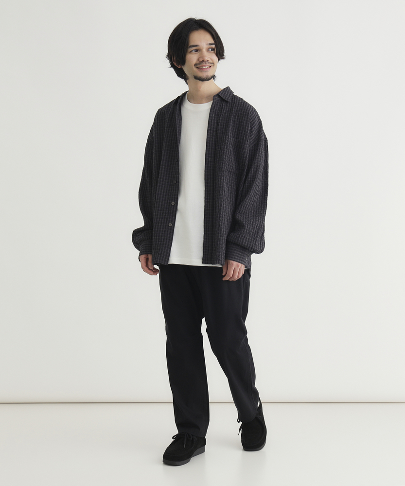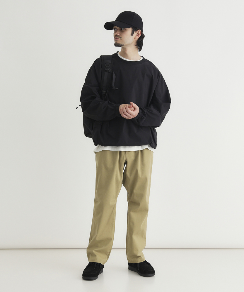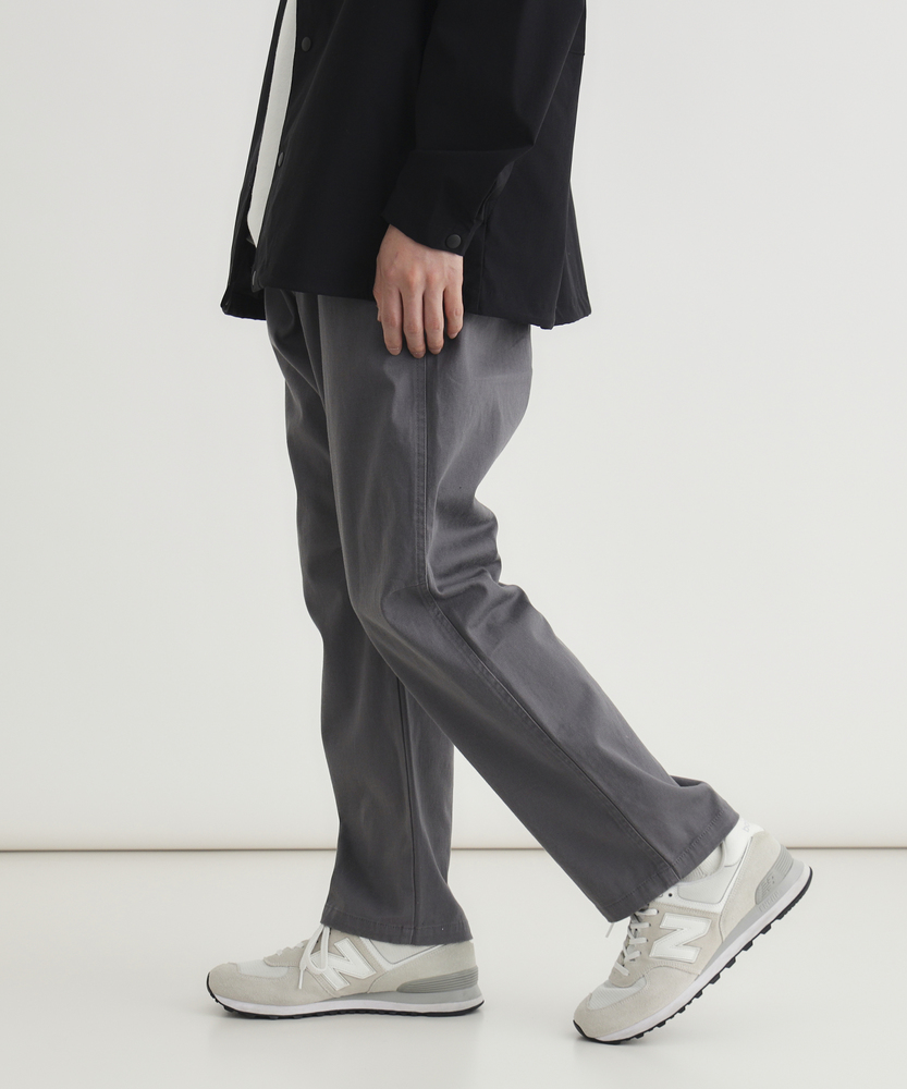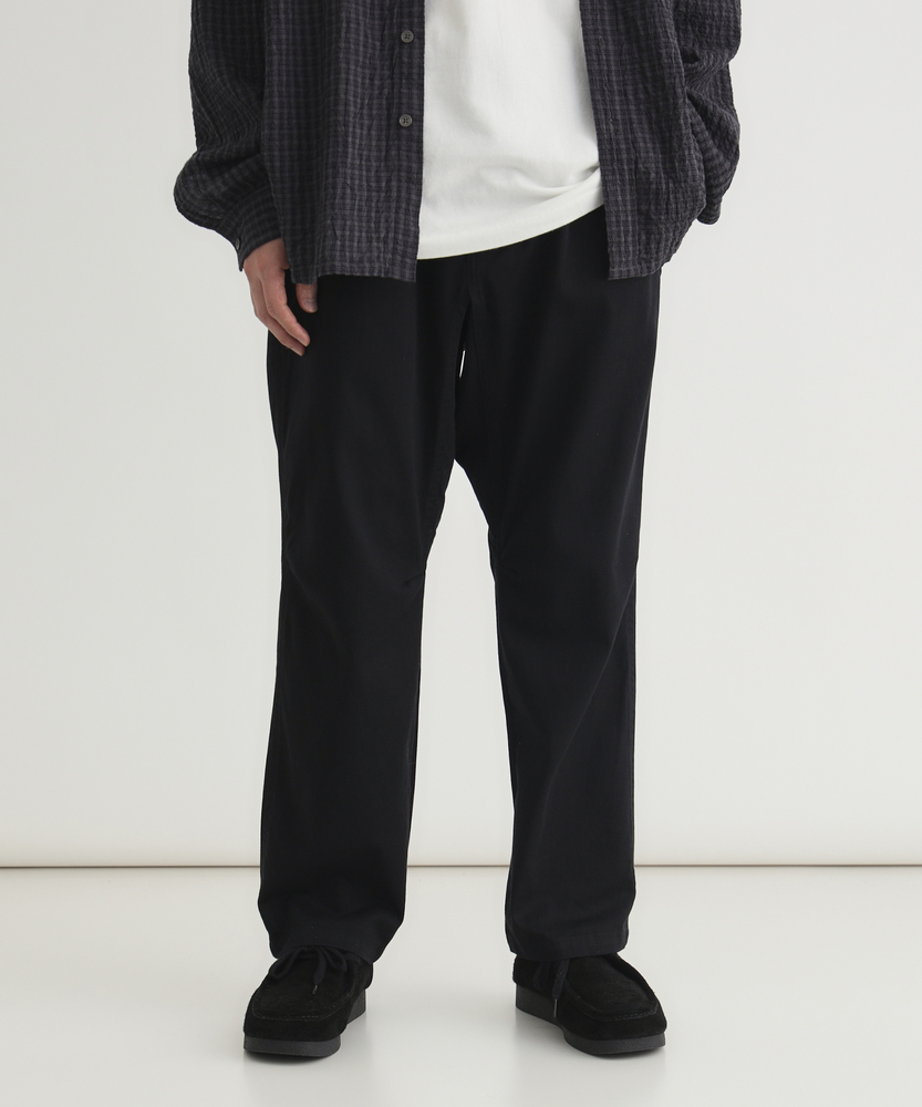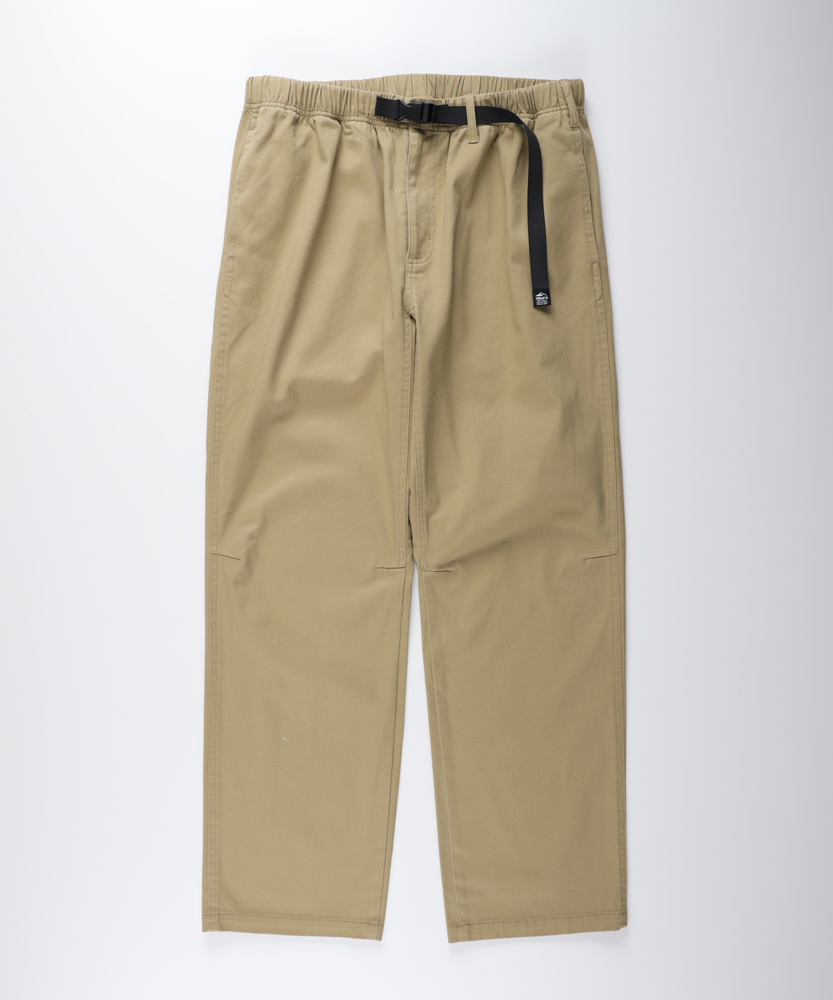 「動きやすさ」を追求した機能美。大人の休日を格上げする本格派パンツ。■Point・動きを妨げない「立体的な膝周り」膝部分にタックを入れた立体縫製を採用。屈伸運動やアクティブな動きもスムーズに。窮屈感を感じさせない快適な穿き心地です。・ストレスフリーな「ウエストゴム仕様」締め付け感のないリラックスしたフィット感。長時間の着用やドライブシーンでも快適。食後やリラックスタイムも楽に過ごせます。・脚のラインを拾いすぎないシルエット太すぎず細すぎない絶妙なバランス感。体型をカバーしつつ、すっきり見えを実現。野暮ったさを排除した都会的なラインです。・季節を問わず使える「タフな素材感」しっかりとしたハリのある生地を採用。デイリーからアウトドアまでガシガシ使える。長く愛用することで馴染む風合いも魅力。【仕様】本格的なクライミングパンツのディテールを踏襲しつつ、現代的なシルエットにアップデートしました。ベルト付きで、ウエストの微調整を容易にし、デザインのアクセントとしても機能します。膝部分には立体的なカッティングを施すことで、足の可動域を確保。機能性を追求した設計が、無駄のない美しいフォルムを生み出しています。【素材】程よい厚みとハリのある、しっかりとした生地を使用しています。コットンのようなナチュラルでマットな風合いは、どんなトップスとも好相性。肌あたりも良く、タフな質感ながらもゴワつきを抑えた仕上がりです。季節を問わずオールシーズン活躍する、頼れる素材感です。【スタイリング】パーカーやスウェットと合わせた王道のアウトドアカジュアルはもちろん、きれいめなシャツやジャケットの外しアイテムとしても優秀です。足元はスニーカーで軽快にまとめるのが定番ですが、レザーシューズを合わせて大人っぽく引き締めるのもおすすめ。裾を少しロールアップして、ソックスをチラ見せするこなれたアレンジも様になります。【CAMP7】CAMP7は、1971年アメリカ合衆国コロラド州ボルダーにて設立されたブランド。ロッキー山脈に集まる世界中のクライマーたちの要望に応え、常にハイクオリティな商品を開発・提供してきました。流行に左右されず、機能を追い求める姿勢が、古き良き時代のアメリカ製品として、愛好家たちの間で支持を受けています。