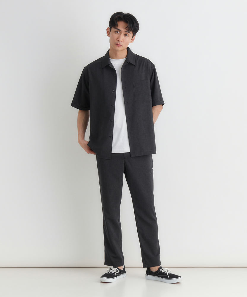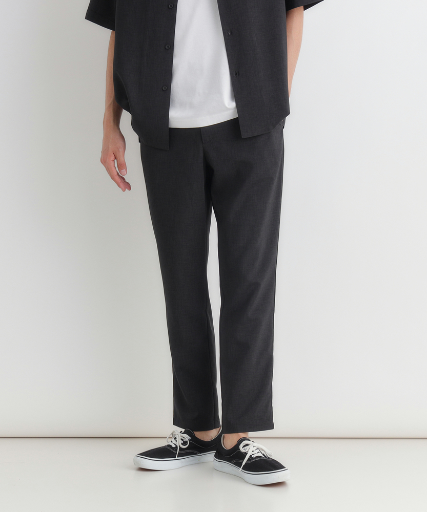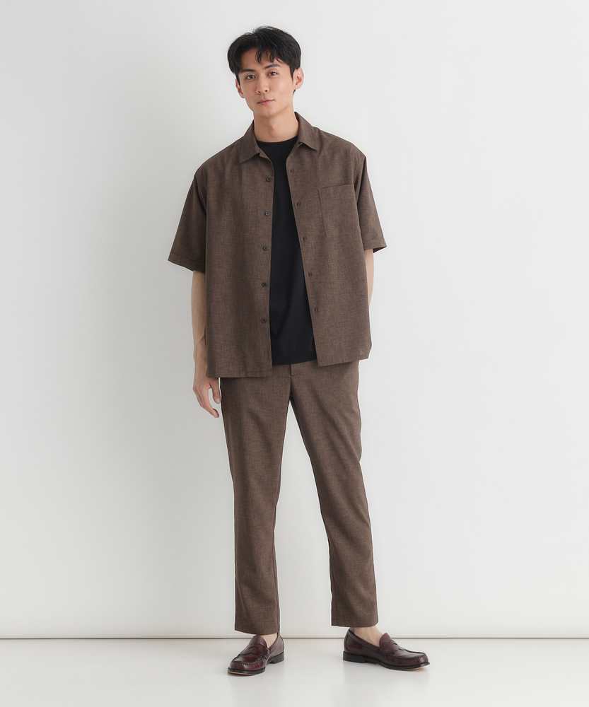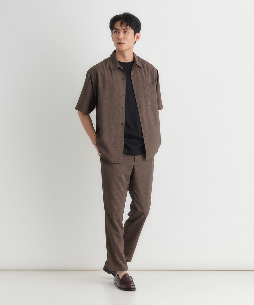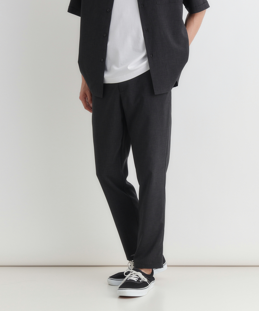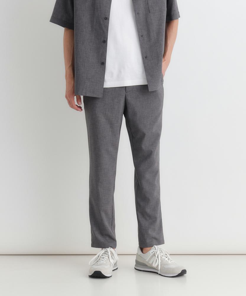 品格とリラックスを両立する、大人の新定番。軽やかに穿きこなすイージー仕様。オンオフ問わず活躍する、洗練されたテーパードシルエット。■Point・涼しげなリネンライク素材ナチュラルな風合いを再現。ドライなタッチで清涼感アップ。暑い季節も軽やかな穿き心地。・スラックス見えする上品さベルトループ付きの本格仕様。フロントボタンできちんと感を。ラフになりすぎない大人の一本。・快適なウエストデザインウエスト周りの窮屈感を軽減。動きやすくストレスフリーに。長時間の着用でも快適さをキープ。・スマートなテーパードライン裾に向かって細くなるシルエット。脚のラインをすっきりと美しく。だらしなく見えない絶妙なバランス。・着回し力の高いベーシックカラー落ち着きのあるモダンな色展開。どんなトップスとも好相性。日常のスタイリングに自然と馴染む。・オンオフ兼用できる汎用性休日のカジュアルスタイルにも。ビジネスカジュアルにも対応可能。ワードローブの頼れる存在に。【仕様】装飾を抑えたミニマルなデザインで、大人の日常に寄り添うイージーパンツです。フロントはボタンとジップ仕様でスラックスのような上品さを持ちながら、ウエスト周りはリラックスできる作りになっています。裾に向かって緩やかに細くなるテーパードシルエットが、脚のラインをすっきりと見せ、スマートな印象を与えます。【素材】生地表面の繊細な織り目とメランジ調の色合いが、奥行きのある豊かな表情を演出。見た目にも涼しげで、さらりとした肌触りが心地よく、軽やかな穿き心地を実現します。日常使いからちょっとしたお出かけまで気兼ねなく着用いただけます。【スタイリング】無地のカットソーやポロシャツを合わせた、クリーンなカジュアルスタイルに最適です。足元はスニーカーで抜け感を出すのはもちろん、ローファーやレザーシューズと合わせれば、品格漂うきれいめなスタイルとしても活躍します。シャツをタックインする着こなしもサマになる、着回し力の高い万能なアイテムです。【BACK NUMBER】ワーク・ミリタリーといったアメリカンカジュアルを根幹に、古き良きヴィンテージウェアの魅力を受け継ぎながらも、現代のライフスタイルや着こなしに合わせた素材・シルエットで再構築した、【Re-Vintage】をコンセプトに掲げるブランド。 【セットアップで着用可能なアイテムはこちら】BN26101300049 リネンライク半袖シャツ/セットアップ対応