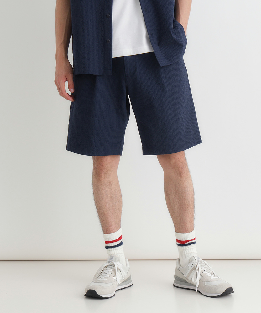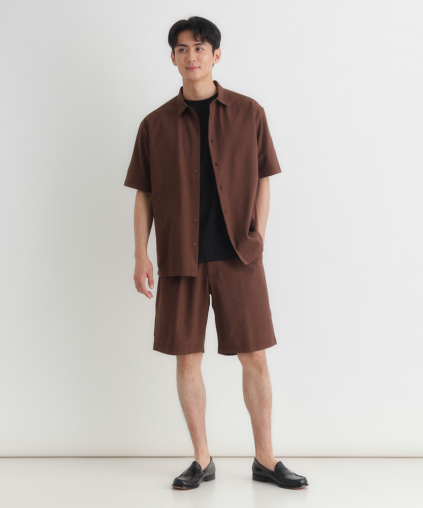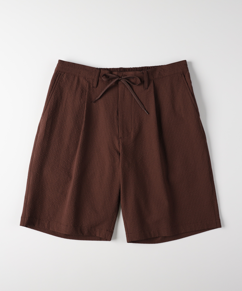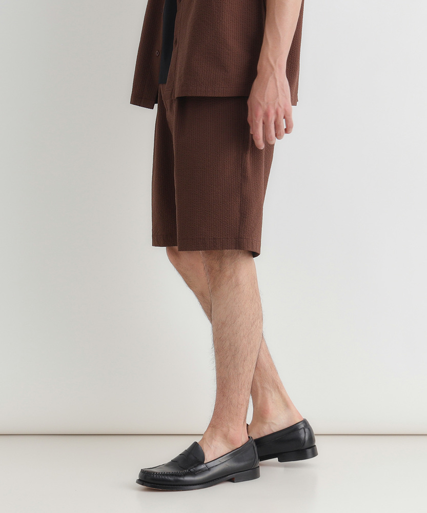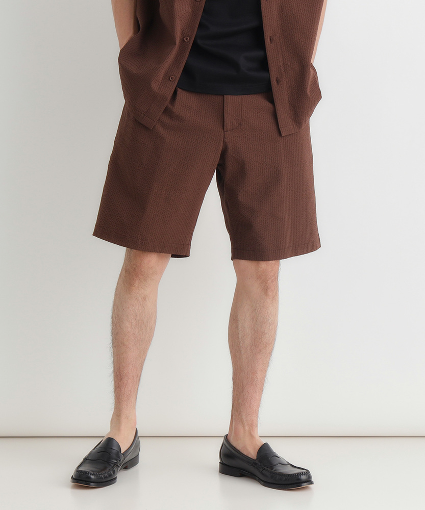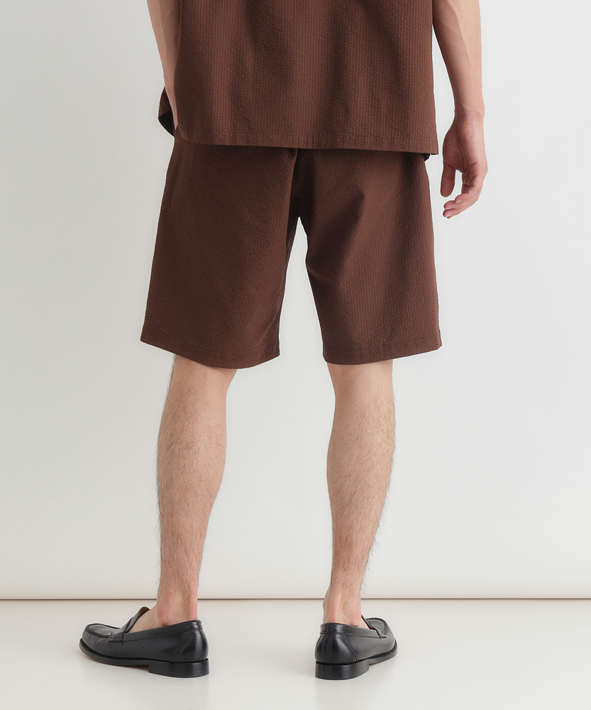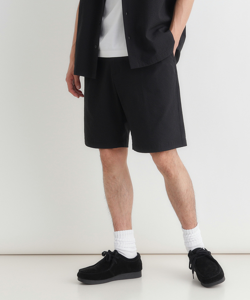 汗ばむ季節も涼しく快適に。大人の休日に寄り添う一本。肌離れの良いサッカー生地が、心地よい着用感をキープ。リラックスと品格を両立する、洗練されたショートパンツ。■Point・涼感あふれるサッカー素材肌にまとわりつきにくい。凹凸のある表面感が特徴。通気性に優れたメッシュ仕様。・動きやすいナチュラルストレッチ窮屈感のない穿き心地。日常の動作をサポート。アクティブな休日にも最適。・品よく決まるシルエット程よくゆとりのあるサイズ感。大人に似合うレギュラーフィット。だらしなく見えない絶妙なバランス。・快適なウエストデザイン着脱が簡単なイージー仕様。ウエストゴムで締め付けを軽減。ドローコードでサイズ調整が可能。・フロントのタックがアクセント腰回りに適度なゆとりをプラス。立体感のある美しいライン。カジュアルすぎない上品な印象へ。・使い勝手の良いカラー展開落ち着きのあるダークトーン。着回し力が高く万能に活躍。手持ちのアイテムと好相性。【仕様】大人の休日にふさわしい、洗練された印象のショートパンツです。フロントのタックが腰回りに程よいゆとりをもたらし、立体感のある美しいシルエットを描きます。ウエストはゴムとドローコードを備えたイージー仕様で、締め付け感のない快適な穿き心地を実現。気負わず穿けて品よく決まる、日常使いに最適な一本です。【素材】表面に凹凸感のあるメッシュサッカー素材を使用しています。肌への接地面が少なく、汗ばむ日もまとわりつきにくいのが特徴。優れた通気性でドライな状態を保ちます。また、ナチュラルストレッチが効いているため、動きやすくストレスフリーな着用感を実現。落ち着きのあるカラートーンで、大人の着こなしに馴染みます。【スタイリング】無地のTシャツやポロシャツと合わせるだけで、清潔感漂う大人のカジュアルスタイルが完成します。シャツを羽織れば、程よい抜け感のあるリラックスしたコーディネートに。足元はスニーカーで軽快にまとめるのはもちろん、レザーサンダルを合わせて品良く引き締めると、より洗練された印象を与えることができます。 【セットアップで着用可能なアイテムはこちら】PL26101300071 サッカー半袖シャツ/セットアップ対応