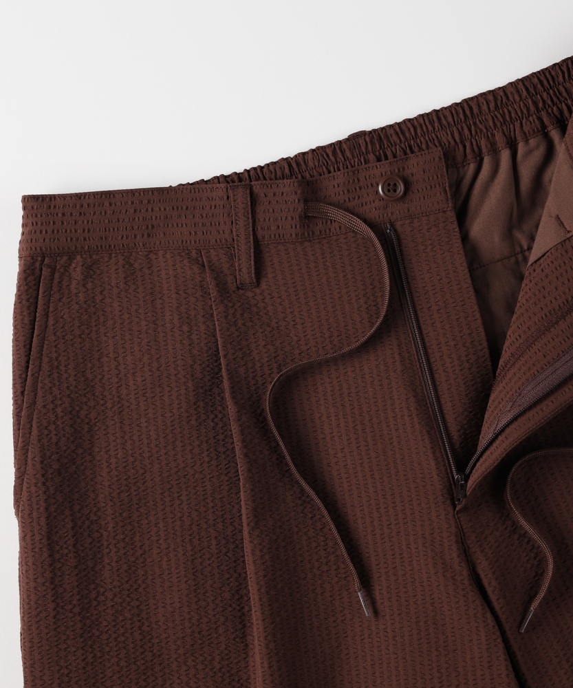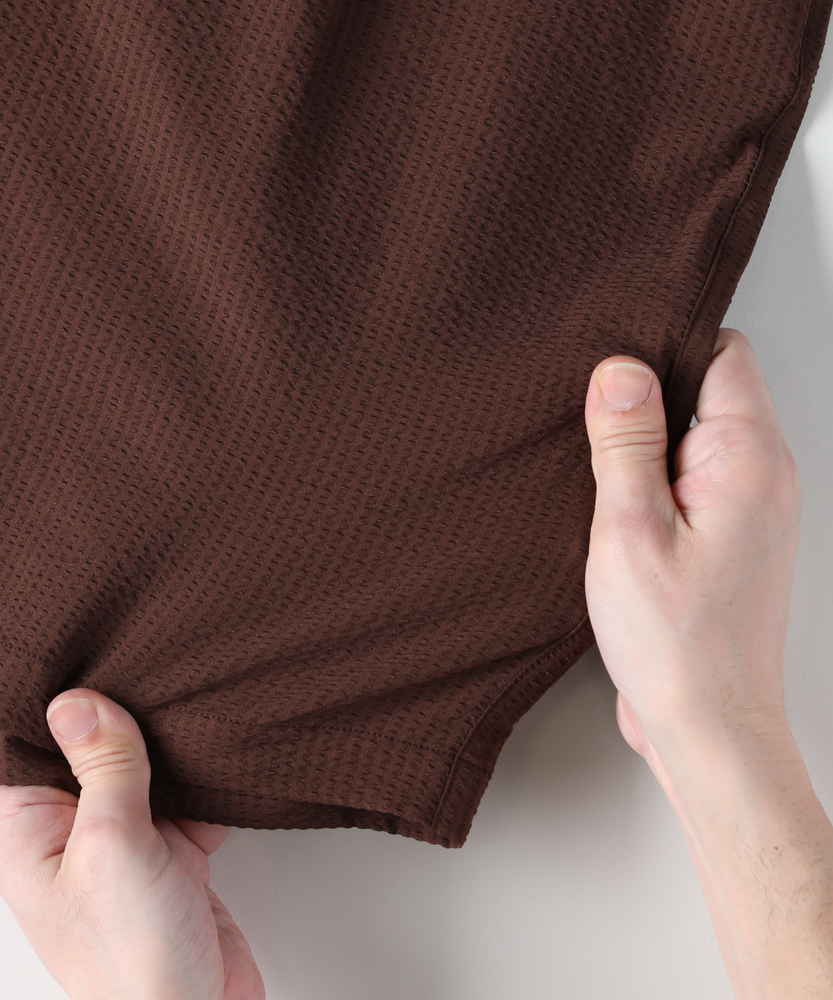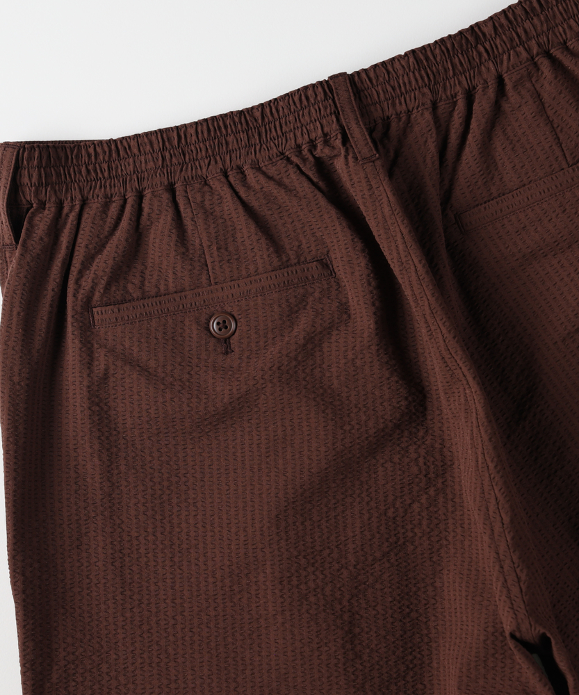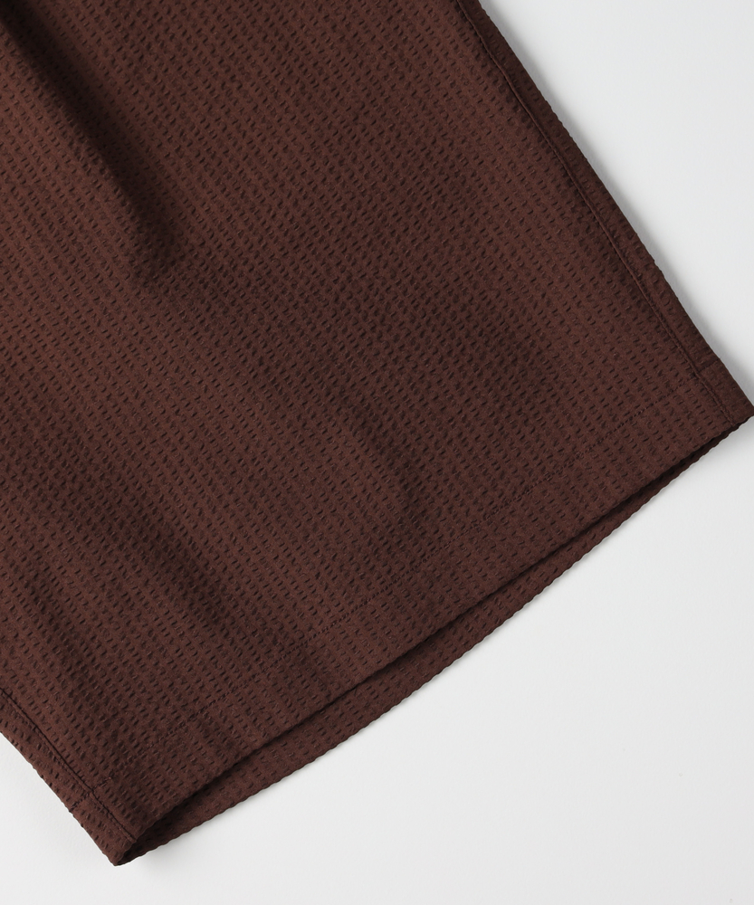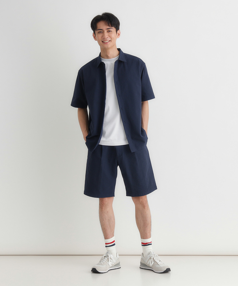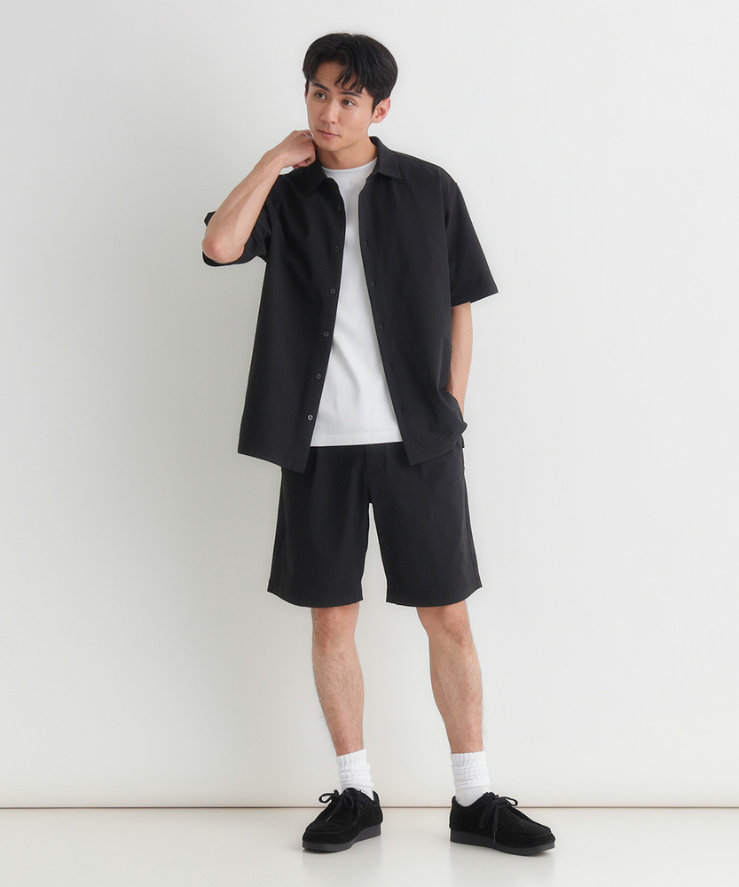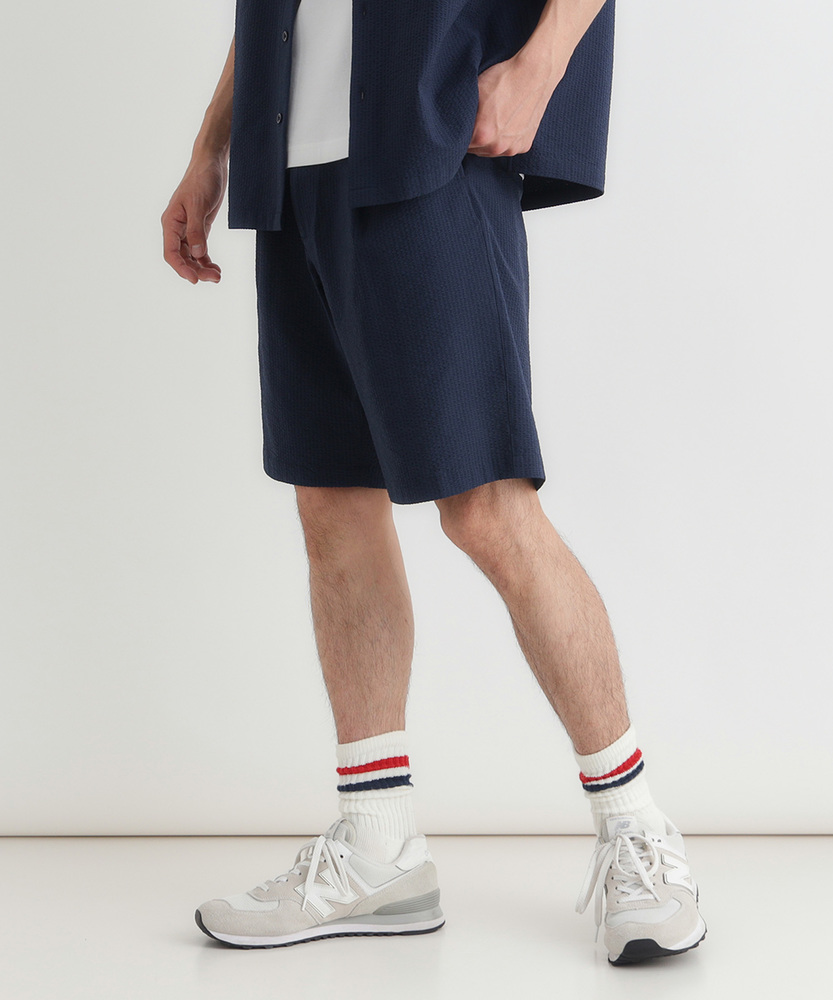 汗ばむ季節も涼しく快適に。大人の休日に寄り添う一本。肌離れの良いサッカー生地が、心地よい着用感をキープ。リラックスと品格を両立する、洗練されたショートパンツ。■Point・涼感あふれるサッカー素材肌にまとわりつきにくい。凹凸のある表面感が特徴。通気性に優れたメッシュ仕様。・動きやすいナチュラルストレッチ窮屈感のない穿き心地。日常の動作をサポート。アクティブな休日にも最適。・品よく決まるシルエット程よくゆとりのあるサイズ感。大人に似合うレギュラーフィット。だらしなく見えない絶妙なバランス。・快適なウエストデザイン着脱が簡単なイージー仕様。ウエストゴムで締め付けを軽減。ドローコードでサイズ調整が可能。・フロントのタックがアクセント腰回りに適度なゆとりをプラス。立体感のある美しいライン。カジュアルすぎない上品な印象へ。・使い勝手の良いカラー展開落ち着きのあるダークトーン。着回し力が高く万能に活躍。手持ちのアイテムと好相性。【仕様】大人の休日にふさわしい、洗練された印象のショートパンツです。フロントのタックが腰回りに程よいゆとりをもたらし、立体感のある美しいシルエットを描きます。ウエストはゴムとドローコードを備えたイージー仕様で、締め付け感のない快適な穿き心地を実現。気負わず穿けて品よく決まる、日常使いに最適な一本です。【素材】表面に凹凸感のあるメッシュサッカー素材を使用しています。肌への接地面が少なく、汗ばむ日もまとわりつきにくいのが特徴。優れた通気性でドライな状態を保ちます。また、ナチュラルストレッチが効いているため、動きやすくストレスフリーな着用感を実現。落ち着きのあるカラートーンで、大人の着こなしに馴染みます。【スタイリング】無地のTシャツやポロシャツと合わせるだけで、清潔感漂う大人のカジュアルスタイルが完成します。シャツを羽織れば、程よい抜け感のあるリラックスしたコーディネートに。足元はスニーカーで軽快にまとめるのはもちろん、レザーサンダルを合わせて品良く引き締めると、より洗練された印象を与えることができます。 【セットアップで着用可能なアイテムはこちら】PL26101300071 サッカー半袖シャツ/セットアップ対応