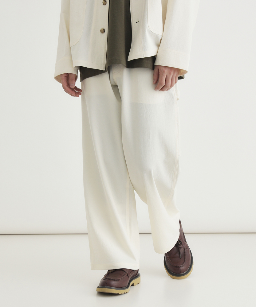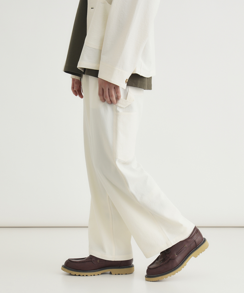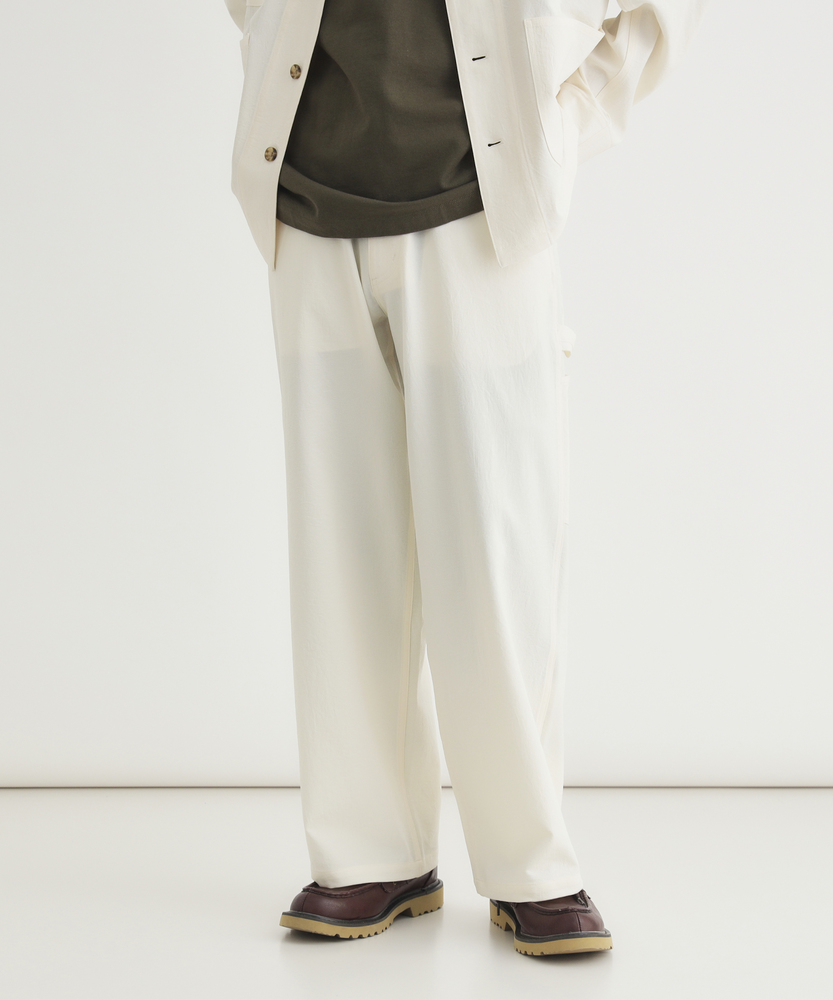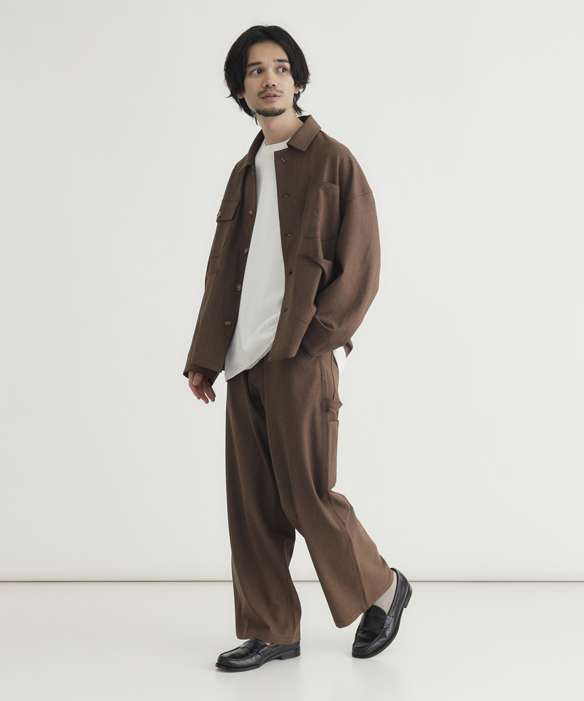 武骨さと洗練が交差する、大人のワークスタイル。重厚な見た目に反する、軽やかな穿き心地のダック風生地。ゆったりワイドシルエットで、毎日のカジュアルを格上げ。■Point・大人の余裕漂うワイドシルエット脚のラインを拾わない設計リラックス感のある穿き心地トレンド感も自然にプラス・タフな表情のダックライク素材本格ワークウェアのような生地感を再現デイリーユースに最適な軽さ・着回しやすいベーシックカラーブラックやブラウンなどの手持ちの服にスッと馴染む落ち着いたトーンが魅力・スッキリ見えするフロントタックインも綺麗に決まるだらしなく見えない仕上がり大人の休日にぴったりの一本・長く愛用できるミニマルな仕様無駄を省いたシンプルなデザインステッチも同系色で統一品のあるワークパンツに昇華【仕様】本格的なワークウェアのディテールを踏襲しつつ、大人の日常着として洗練された印象に仕上げたダックライクパンツです。ゆったりとしたワイドストレートシルエットが、リラックス感のあるこなれた雰囲気を演出。実用的な大きめのポケットがアクセントになり、着こなしに程よいスパイスを加えます。【素材】タフで重厚なダック生地の表情を再現しつつ、日常使いしやすい軽やかさを備えたダックライク素材を使用しています。適度なハリ感が美しいワイドシルエットをキープし、デイリーに気兼ねなく着用できる風合いが魅力。硬すぎずごわつきにくいため、長時間の着用でもストレスを感じにくい仕上がりです。【スタイリング】リラックス感のあるシルエットを活かし、シンプルなシャツやニットと合わせた都会的なスタイリングがおすすめです。休日のカジュアルダウンには、スウェットやスニーカーを合わせてラフな雰囲気に。ベーシックなカラー展開なので、季節を問わず様々なトップスと相性が良く、大人のワードローブで活躍します。【BACK NUMBER】ワーク・ミリタリーといったアメリカンカジュアルを根幹に、古き良きヴィンテージウェアの魅力を受け継ぎながらも、現代のライフスタイルや着こなしに合わせた素材・シルエットで再構築した、【Re-Vintage】をコンセプトに掲げるブランド。 【セットアップで着用可能なアイテムはこちら】BN26101600042 ダックライクシャツジャケット/セットアップ対応