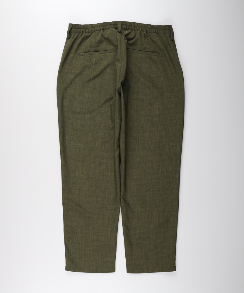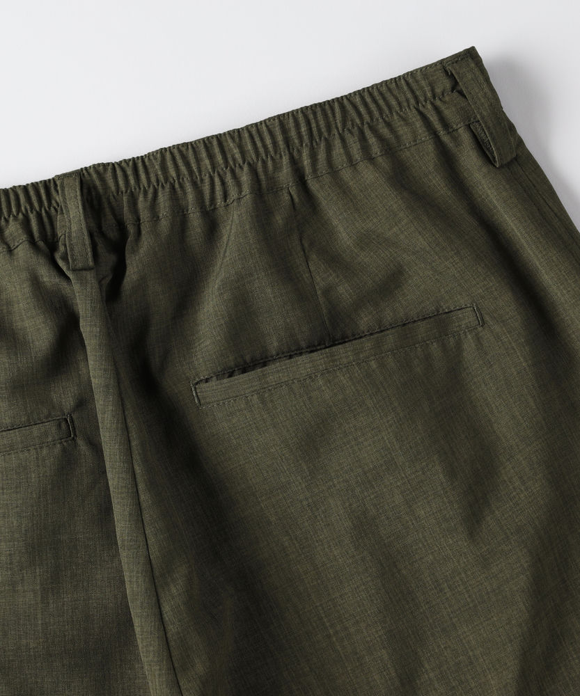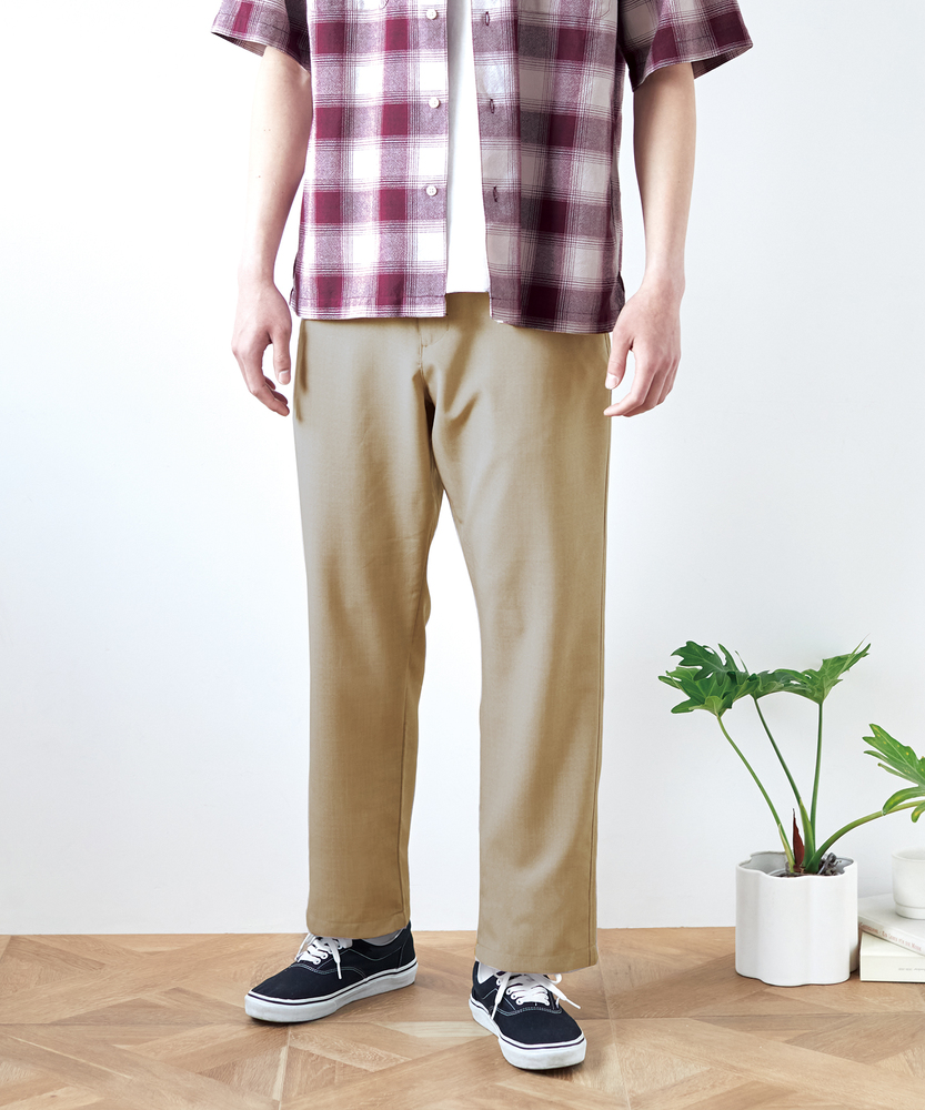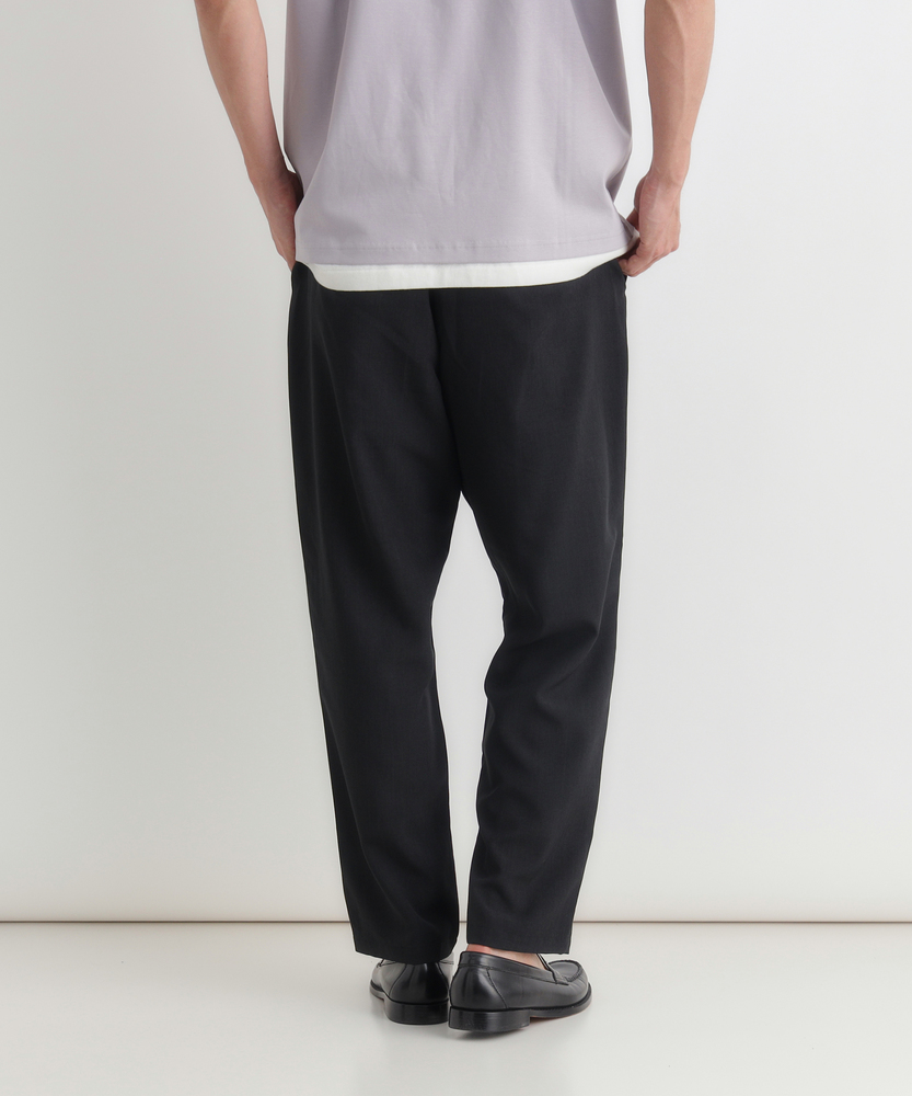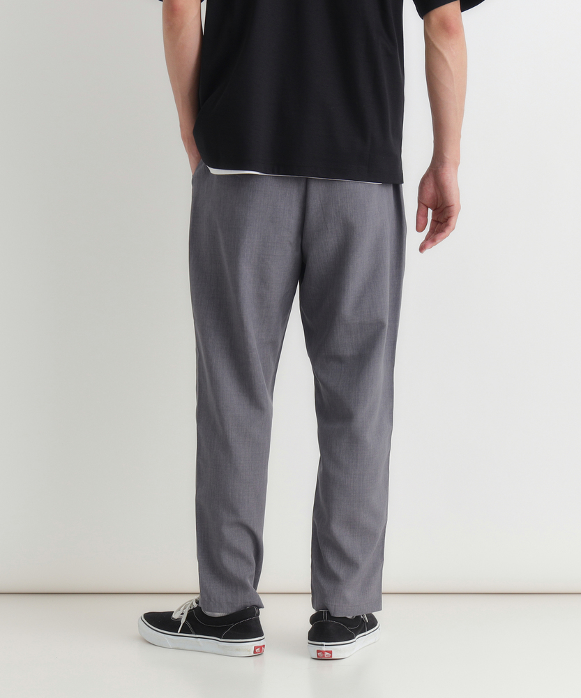 涼しく、軽く、そして品良く決まる。夏の装いを格上げする大人の快適ボトムス。楽な穿き心地と美しいシルエットを両立。■Point・夏を乗り切る「接触冷感」機能穿いた瞬間に感じるひんやり感。汗ばむ季節も快適な肌触り。涼しさが持続しストレスフリー。・日差しから肌を守る「UVカット」強い日差しをしっかりブロック。長時間の外出でも安心。夏のレジャーや通勤の味方に。・手間いらずの「イージーケア」シワになりにくい優秀素材。ご自宅でのお手入れも簡単。お洗濯後の手間を大幅に軽減。・見た目と機能を両立した「麻調素材」天然の麻のような上品な風合い。合繊ならではの軽さと扱いやすさ。清涼感漂う大人のこなれ感を演出。・ストレスフリーな「ウエストイージー」ウエスト部分は楽ちんな仕様。お腹周りの窮屈感をしっかり解消。快適な穿き心地で日常使いに最適。・品格を保つ「レギュラーフィット」太すぎず細すぎない絶妙なライン。大人の余裕を感じさせるシルエット。カジュアルからキレイめまで万能。【仕様】ウエストイージー仕様を採用し、リラックスした穿き心地ながらも、スラックスのような上品なルックスを実現した一本。程よいゆとりのレギュラーフィットで、脚のラインを拾いすぎずスマートなシルエットを描きます。無駄を省いたミニマルなデザインは、大人の日常着として重宝するアイテムです。【素材】見た目は清涼感のあるリネンのような風合いでありながら、合繊を使用することで、軽やかさと機能性を両立。穿いた瞬間に涼しい接触冷感、日差しを防ぐUVカット、シワになりにくくお手入れが簡単なイージーケアと、夏に嬉しい機能を網羅した頼れる素材感です。【スタイリング】きれいめな印象を活かし、シンプルなカットソーやサマーニットと合わせるだけで、清潔感のある大人の休日スタイルが完成します。足元はスニーカーで抜け感を出したり、ローファーで引き締めたりと自在にアレンジ可能。オンオフ問わず、夏のワードローブの主役として着回せる汎用性の高さが魅力です。【BACK NUMBER】ワーク・ミリタリーといったアメリカンカジュアルを根幹に、古き良きヴィンテージウェアの魅力を受け継ぎながらも、現代のライフスタイルや着こなしに合わせた素材・シルエットで再構築した、【Re-Vintage】をコンセプトに掲げるブランド。