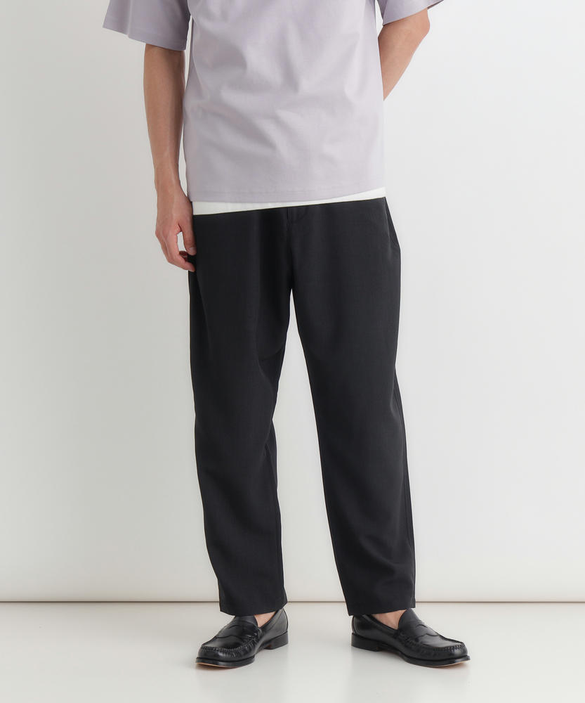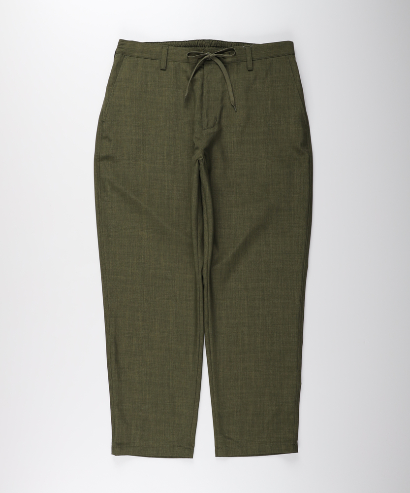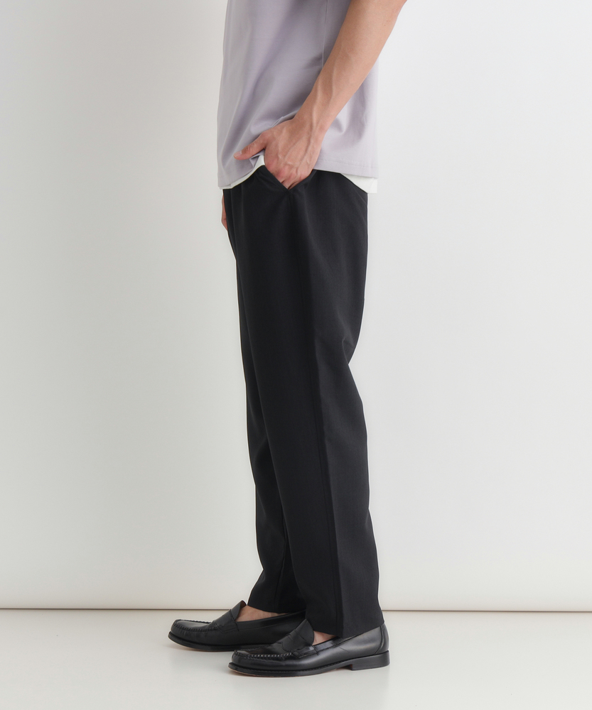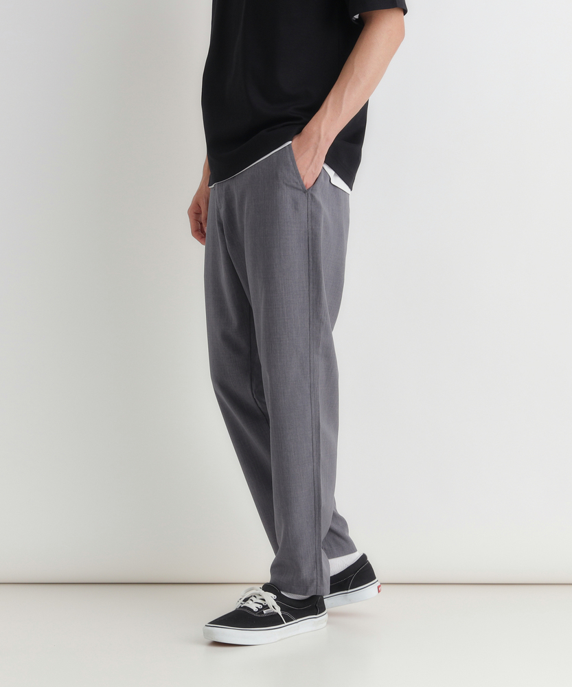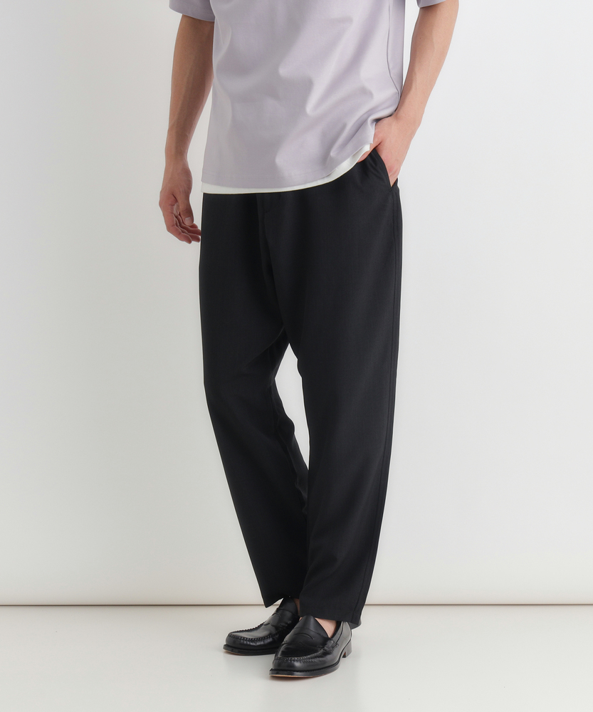 涼しく、軽く、そして品良く決まる。夏の装いを格上げする大人の快適ボトムス。楽な穿き心地と美しいシルエットを両立。■Point・夏を乗り切る「接触冷感」機能穿いた瞬間に感じるひんやり感。汗ばむ季節も快適な肌触り。涼しさが持続しストレスフリー。・日差しから肌を守る「UVカット」強い日差しをしっかりブロック。長時間の外出でも安心。夏のレジャーや通勤の味方に。・手間いらずの「イージーケア」シワになりにくい優秀素材。ご自宅でのお手入れも簡単。お洗濯後の手間を大幅に軽減。・見た目と機能を両立した「麻調素材」天然の麻のような上品な風合い。合繊ならではの軽さと扱いやすさ。清涼感漂う大人のこなれ感を演出。・ストレスフリーな「ウエストイージー」ウエスト部分は楽ちんな仕様。お腹周りの窮屈感をしっかり解消。快適な穿き心地で日常使いに最適。・品格を保つ「レギュラーフィット」太すぎず細すぎない絶妙なライン。大人の余裕を感じさせるシルエット。カジュアルからキレイめまで万能。【仕様】ウエストイージー仕様を採用し、リラックスした穿き心地ながらも、スラックスのような上品なルックスを実現した一本。程よいゆとりのレギュラーフィットで、脚のラインを拾いすぎずスマートなシルエットを描きます。無駄を省いたミニマルなデザインは、大人の日常着として重宝するアイテムです。【素材】見た目は清涼感のあるリネンのような風合いでありながら、合繊を使用することで、軽やかさと機能性を両立。穿いた瞬間に涼しい接触冷感、日差しを防ぐUVカット、シワになりにくくお手入れが簡単なイージーケアと、夏に嬉しい機能を網羅した頼れる素材感です。【スタイリング】きれいめな印象を活かし、シンプルなカットソーやサマーニットと合わせるだけで、清潔感のある大人の休日スタイルが完成します。足元はスニーカーで抜け感を出したり、ローファーで引き締めたりと自在にアレンジ可能。オンオフ問わず、夏のワードローブの主役として着回せる汎用性の高さが魅力です。【BACK NUMBER】ワーク・ミリタリーといったアメリカンカジュアルを根幹に、古き良きヴィンテージウェアの魅力を受け継ぎながらも、現代のライフスタイルや着こなしに合わせた素材・シルエットで再構築した、【Re-Vintage】をコンセプトに掲げるブランド。