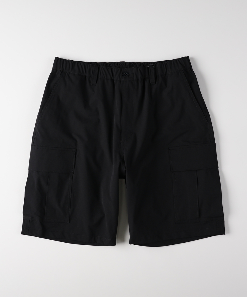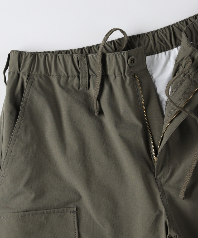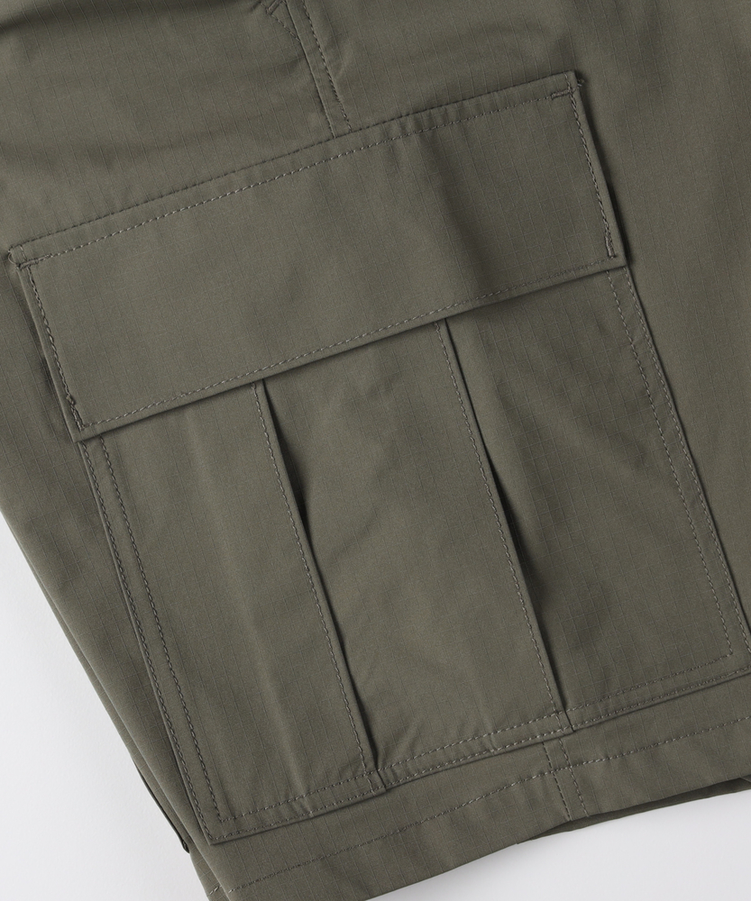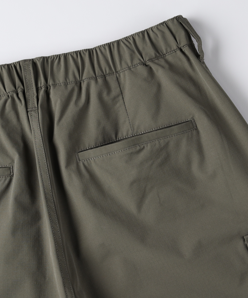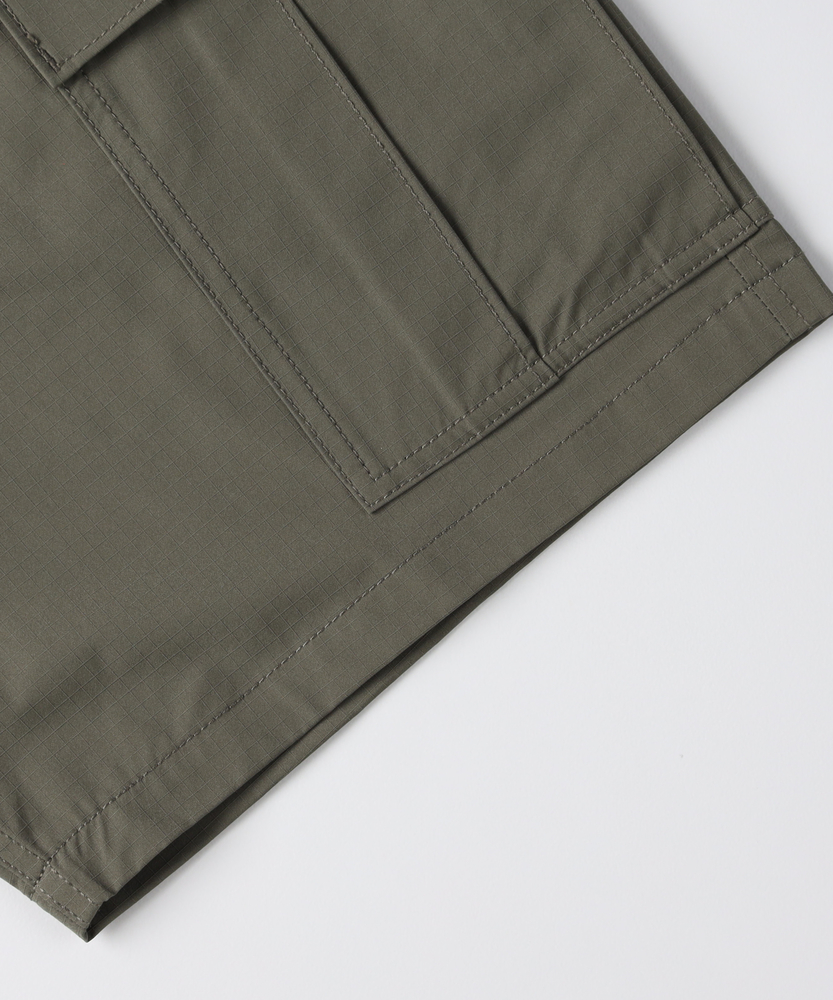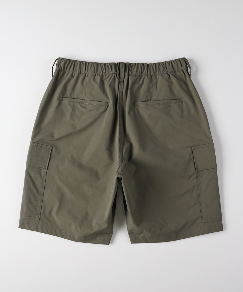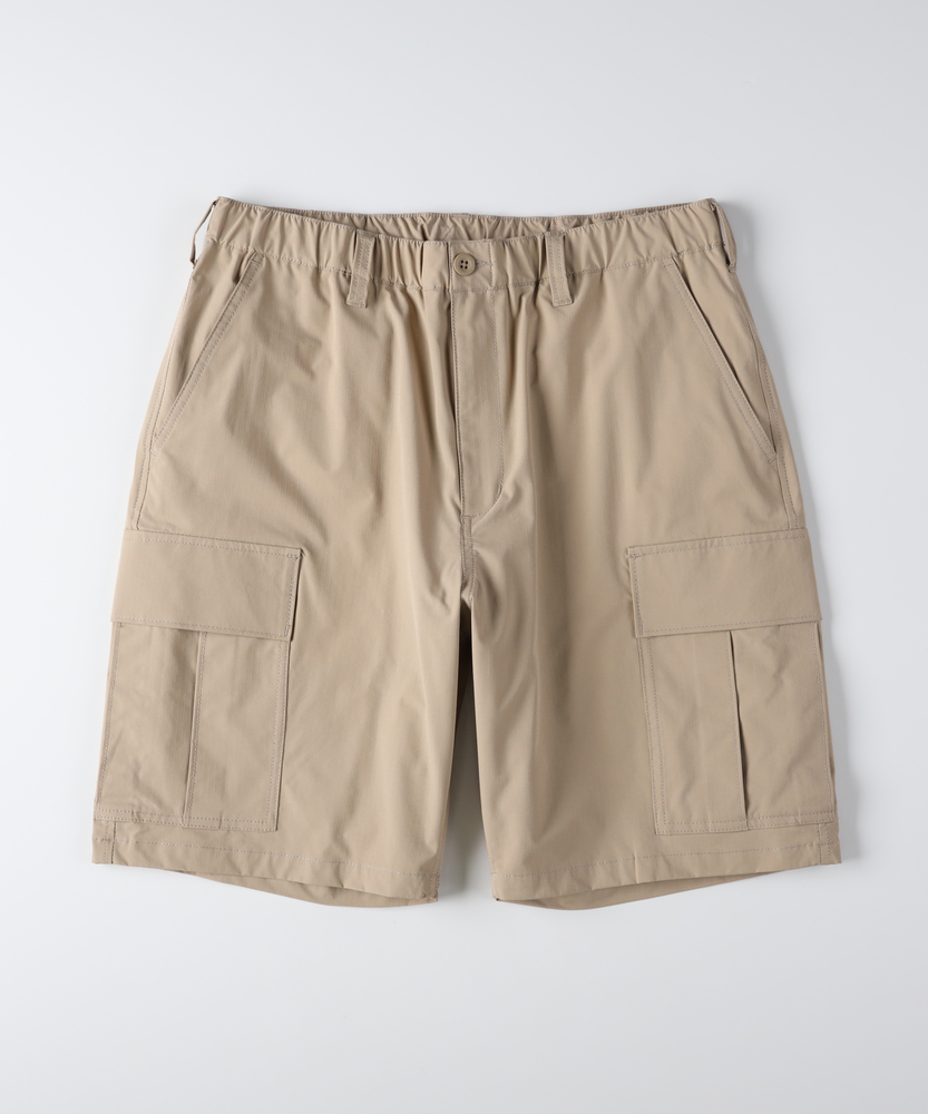 大人の休日に寄り添う、都会派ミリタリー。手ぶらで身軽に。収納力抜群のカーゴポケット。楽なのに手抜きに見えない、洗練ショートパンツ。■Point・男心をくすぐるファティーグデザイン。ミリタリーの無骨なディテール。洗練された都会的なシルエット。大人のカジュアルを格上げします。・手ぶら外出を叶えるカーゴポケット。両サイドに大きなフラップポケット。スマホや小物をサッと収納できます。身軽なお出かけをしっかりサポート。・リラックスできるウエストゴム仕様。お腹周りを締め付けない総ゴム設計。長時間の着用でもストレスフリーに。休日を快適に過ごすための工夫です。・ベルトも使える実用的なループ付き。ベルトループ付きでアレンジが可能。タックインスタイルにも綺麗に対応。ラフすぎない、きちんとした印象へ。・すっきり見えするバックシルエット。背面ポケットはスマートなスリット型。野暮ったさを払拭したスマートな形。後ろ姿も洗練された大人の印象に。・大人が穿きやすい絶妙なレングス。膝周りがすっきり見える絶妙な丈感。短すぎず、落ち着きのあるバランス。年齢を問わず、品良く穿きこなせます。【仕様】ミリタリー由来のファティーグデザインを、大人の日常に馴染むよう洗練させたショートパンツです。存在感のあるサイドポケットが、シンプルな着こなしに程よいアクセントをプラス。ウエストはイージーなゴム仕様ながら、ベルトループを備えることでルーズに見えすぎず、都会的でクリーンな印象に仕上げています。【素材】表面にさりげない格子状の織り目を持つ、タフな風合いの生地を採用しました。アクティブに動く日も気兼ねなく着用できる、デイリーユースに頼れる丈夫さが魅力です。適度なハリ感が美しいシルエットをキープ。落ち着いたトーンのカラー展開で、どんなトップスとも馴染みやすく、長く愛用できるアイテムです。【スタイリング】シンプルな白Tシャツと合わせるだけで、男らしさと清潔感を両立したサマースタイルが完成します。足元はスニーカーでスポーティにまとめるのはもちろん、レザーサンダルを合わせて品良く仕上げるのもおすすめ。キャンプなどのアウトドアシーンから休日の街歩きまで、幅広いシチュエーションで活躍する万能ボトムスです。
