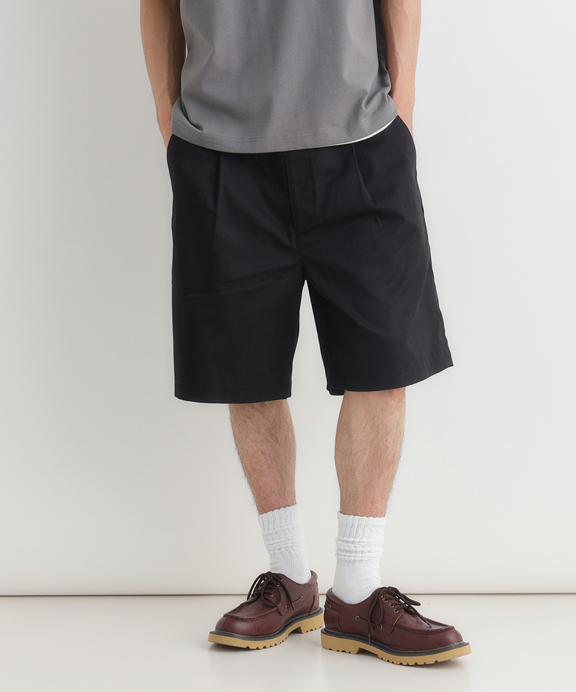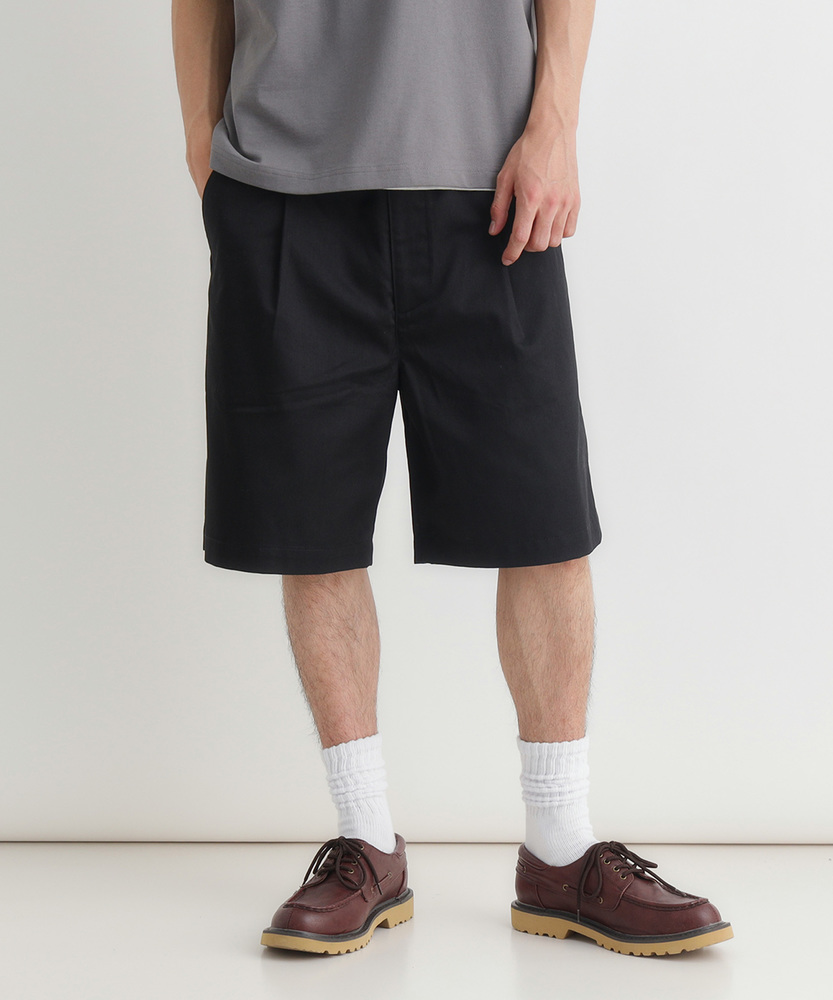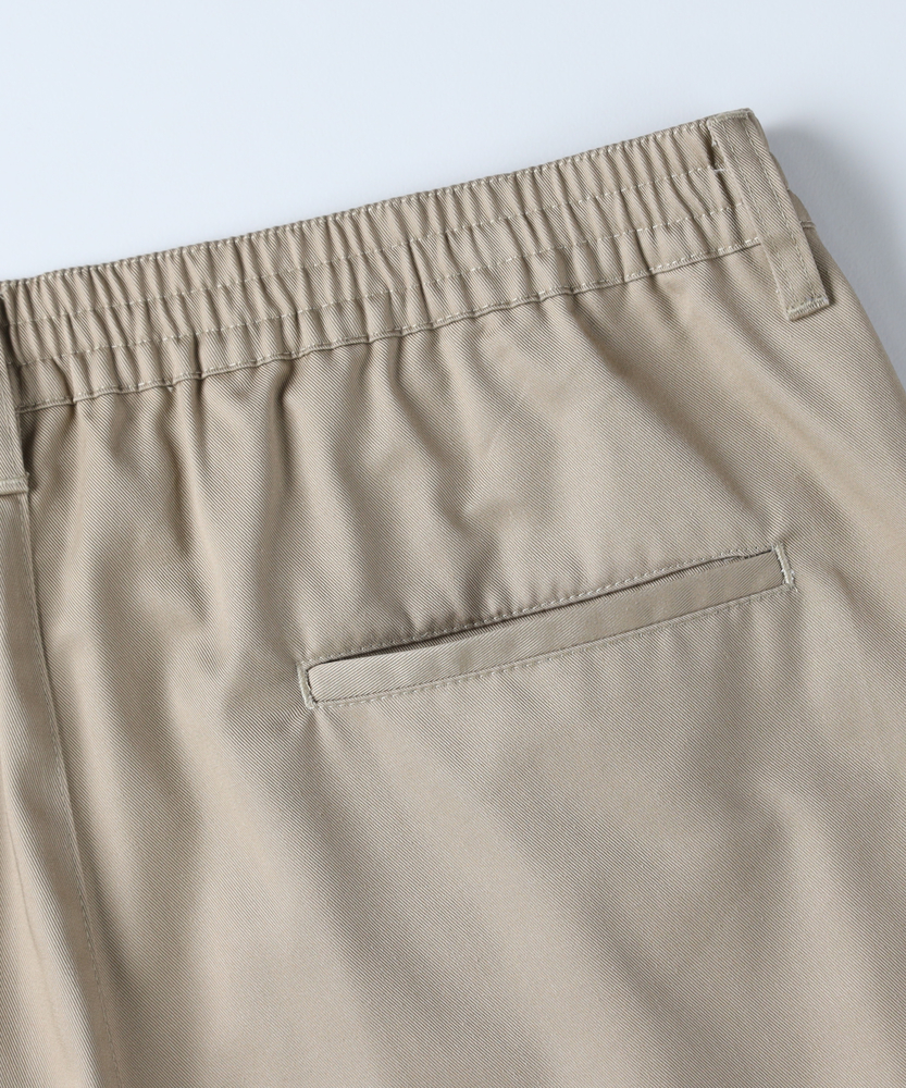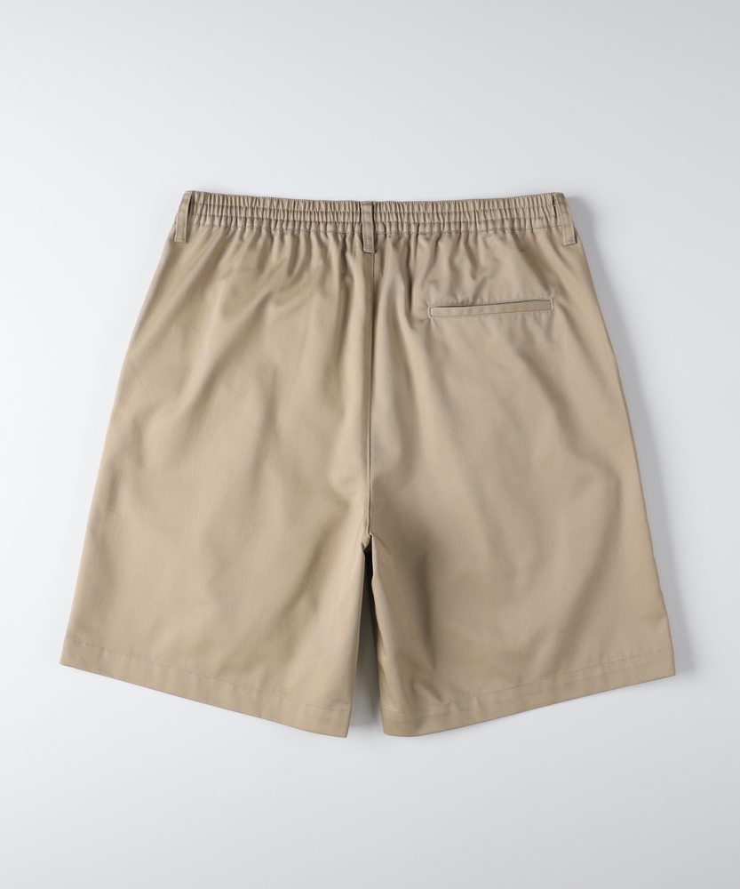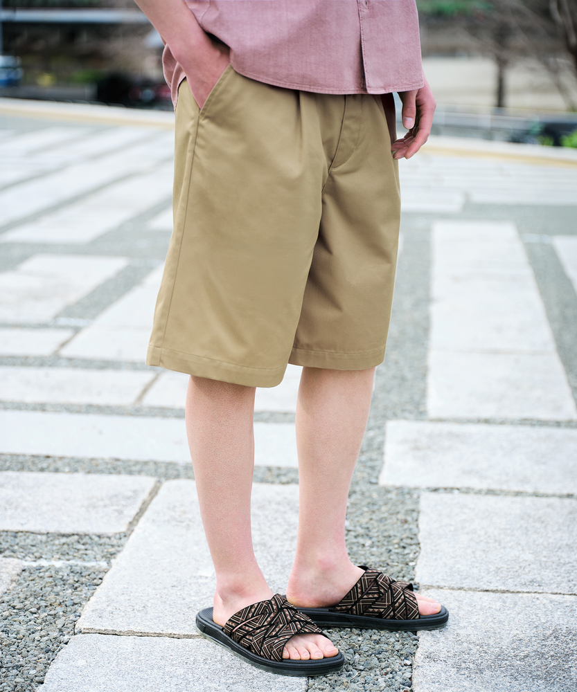 タフさと上品さを兼ね備えた大人の相棒。ワークテイスト薫る、洗練チノショーツ。イージーな穿き心地で、日常にエッセンスを。■Point・タフに使えるTCツイル素材ワークテイストを感じさせるハリとコシのある生地を採用。デイリーに気兼ねなく使えます。・リラックス感漂うイージー仕様ウエストは楽ちんなイージー仕様。着脱がスムーズでストレスフリー。休日のリラックスタイムに最適です。・大人に似合うレギュラーシルエットゆとりを持たせたサイジング。脚のラインを拾いすぎず、スマートな印象を与えてくれます。・立体感を生むフロントタック腰回りに程よいゆとりをプラス。動きやすさを確保しつつ、上品なルックスへと導きます。・長く愛用できるミニマルデザイン装飾を省いたシンプルな仕上がり。トレンドに左右されることなく、定番として長く着回せます。・幅広いシーンで活躍する汎用性カジュアルからキレイめまでマッチ。合わせるトップスを選ばず、毎日のコーディネートを支えます。【仕様】ゆったりとしたサイジングが特徴のレギュラーチノショーツ。フロントにタックを施すことで、腰回りに適度なゆとりを持たせつつ、立体感のある美しいシルエットを実現しています。ウエストは着脱がスムーズなイージー仕様を採用。日常使いしやすく、大人のカジュアルスタイルに自然と馴染むミニマルなデザインです。【素材】ワークテイストを感じさせる、丈夫でハリのある20×16TCツイル生地を使用しています。程よい厚みとタフな質感が魅力で、アクティブなシーンでも気兼ねなく着用可能。日常的なケアがしやすく、扱いやすい生地感が特徴です。長く愛用できる、クローゼットの頼れる定番アイテムとして活躍します。【スタイリング】シンプルな無地Tシャツを合わせるだけで、大人の洗練されたリラックススタイルが完成します。足元にはレザーシューズやモカシンを合わせると、カジュアルすぎない都会的な印象に。長袖のシャツを羽織ったメリハリのあるコーディネートもおすすめです。落ち着いた色合いを活かし、幅広いスタイリングをお楽しみください。