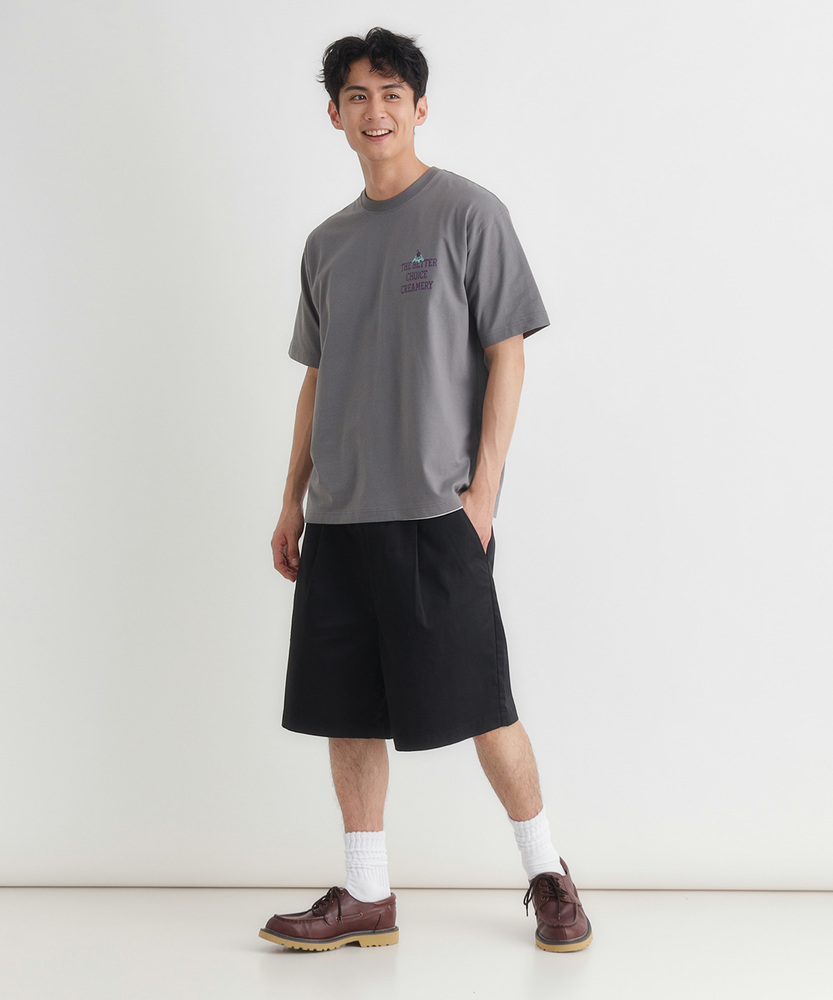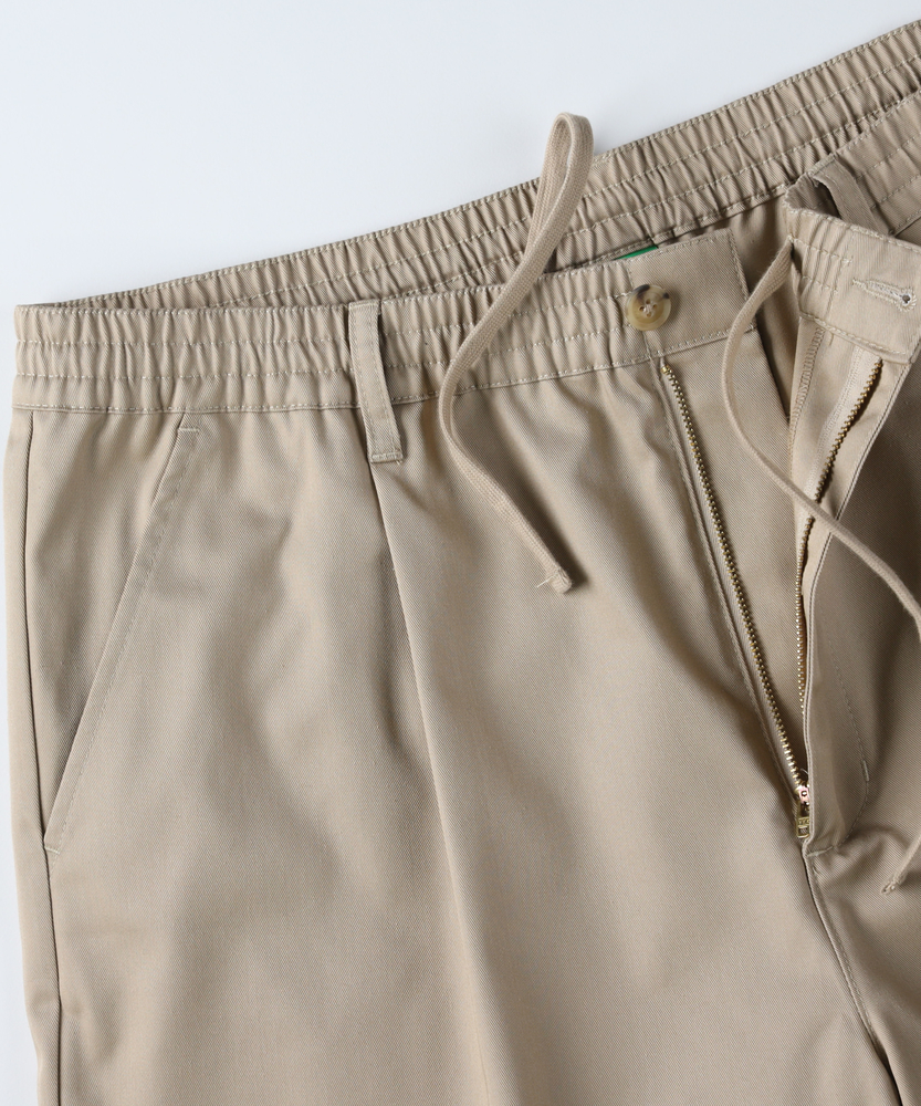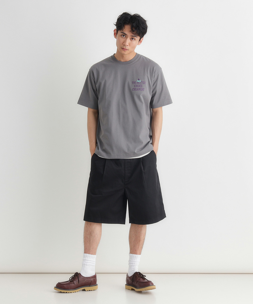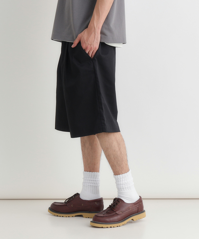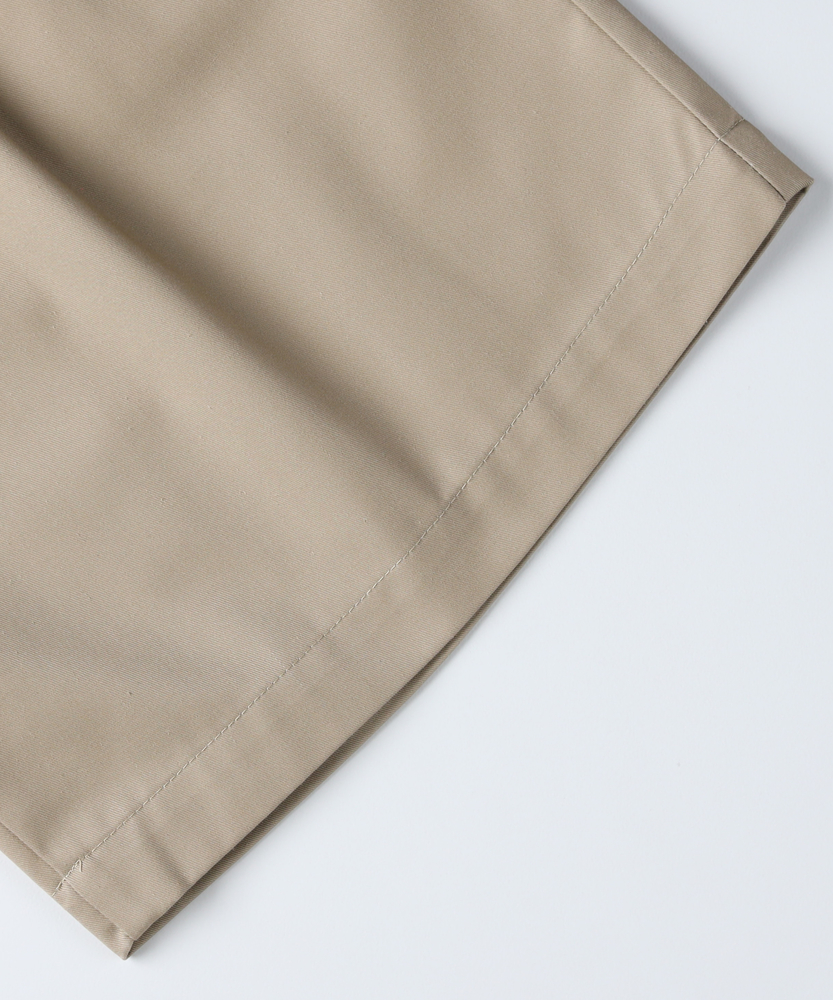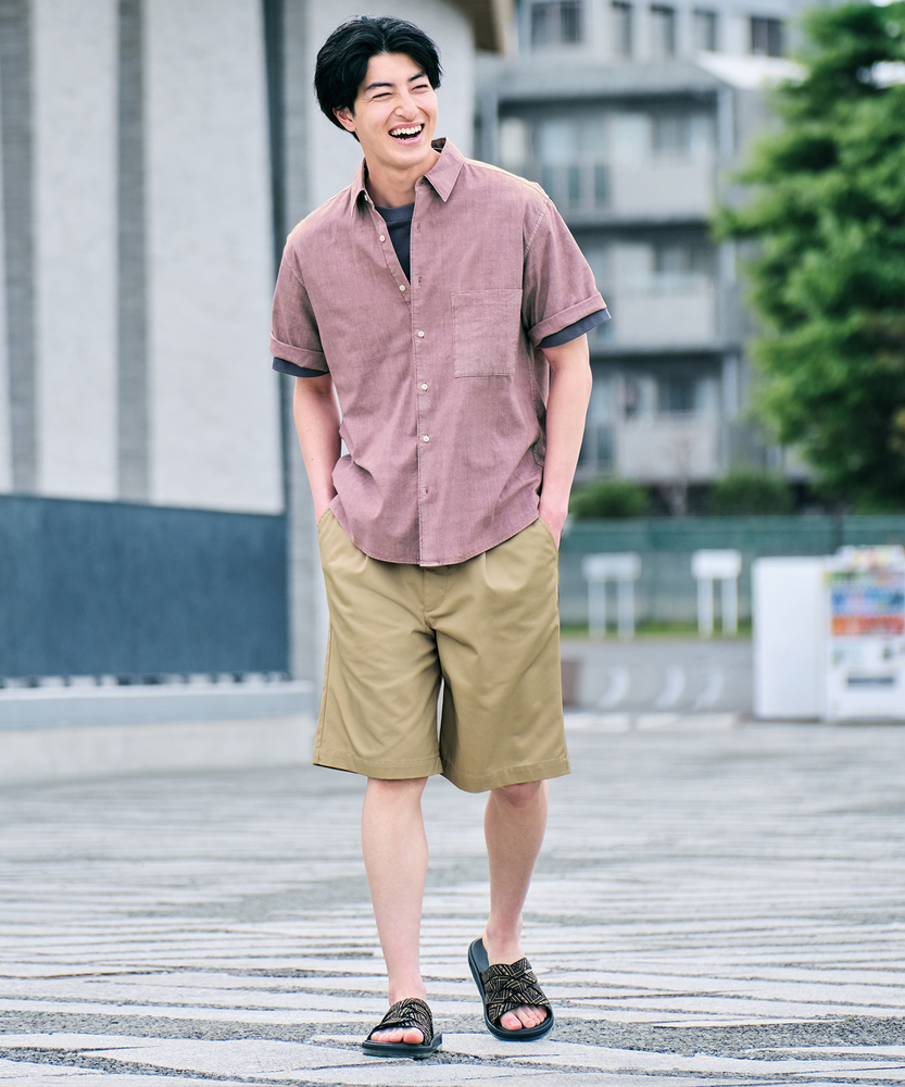 タフさと上品さを兼ね備えた大人の相棒。ワークテイスト薫る、洗練チノショーツ。イージーな穿き心地で、日常にエッセンスを。■Point・タフに使えるTCツイル素材ワークテイストを感じさせるハリとコシのある生地を採用。デイリーに気兼ねなく使えます。・リラックス感漂うイージー仕様ウエストは楽ちんなイージー仕様。着脱がスムーズでストレスフリー。休日のリラックスタイムに最適です。・大人に似合うレギュラーシルエットゆとりを持たせたサイジング。脚のラインを拾いすぎず、スマートな印象を与えてくれます。・立体感を生むフロントタック腰回りに程よいゆとりをプラス。動きやすさを確保しつつ、上品なルックスへと導きます。・長く愛用できるミニマルデザイン装飾を省いたシンプルな仕上がり。トレンドに左右されることなく、定番として長く着回せます。・幅広いシーンで活躍する汎用性カジュアルからキレイめまでマッチ。合わせるトップスを選ばず、毎日のコーディネートを支えます。【仕様】ゆったりとしたサイジングが特徴のレギュラーチノショーツ。フロントにタックを施すことで、腰回りに適度なゆとりを持たせつつ、立体感のある美しいシルエットを実現しています。ウエストは着脱がスムーズなイージー仕様を採用。日常使いしやすく、大人のカジュアルスタイルに自然と馴染むミニマルなデザインです。【素材】ワークテイストを感じさせる、丈夫でハリのある20×16TCツイル生地を使用しています。程よい厚みとタフな質感が魅力で、アクティブなシーンでも気兼ねなく着用可能。日常的なケアがしやすく、扱いやすい生地感が特徴です。長く愛用できる、クローゼットの頼れる定番アイテムとして活躍します。【スタイリング】シンプルな無地Tシャツを合わせるだけで、大人の洗練されたリラックススタイルが完成します。足元にはレザーシューズやモカシンを合わせると、カジュアルすぎない都会的な印象に。長袖のシャツを羽織ったメリハリのあるコーディネートもおすすめです。落ち着いた色合いを活かし、幅広いスタイリングをお楽しみください。