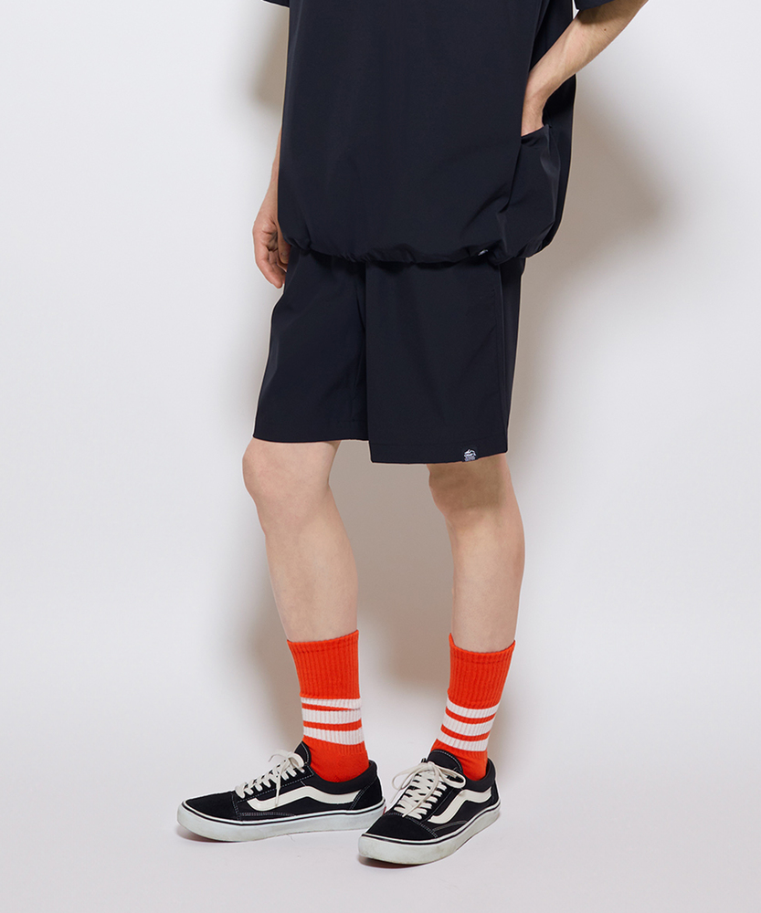 機能美と快適さ。大人のアクティブショートパンツ。接触冷感×高機能ストレッチ。猛暑を涼しく乗り切る至高の相棒。街でも山でも、この快適さ。大人の休日はこれ一本で決まる。■Point・夏に嬉しい「多機能」素材。接触冷感でひんやり涼しく。耐久撥水で急な雨でも安心。タフに使える耐摩耗性も完備。・「ストレスフリー」な穿き心地。縦横に伸びるストレッチ性。動きを邪魔しないゆったり設計。アクティブな一日も快適に。・大人の「ワッシャー」加工。ナイロン特有の自然なシワ感。ドライタッチで肌離れが良い。スポーティ過ぎない上品な表情。・手ぶら派に「多収納」ギミック。便利なファスナー付きポケット。鍵や小銭に、ポケットINポケット。機能的なのに見た目はスマート。・楽ちん「イージー」仕様。ウエストゴムで締め付け感なし。コードでフィット感を自在に調整。脱ぎ穿きもスムーズでノンストレス。・オンオフ使える「汎用性」。アウトドアから街着まで対応。シンプルだからコーデを選ばない。夏のワードローブの主役級。【仕様】装飾を削ぎ落としたミニマルなルックスの中に、大人の遊び心をくすぐる機能的なディテールを凝縮しました。程よいゆとりを持たせたシルエットと膝丈のバランスが、リラックス感と清潔感を両立。一見シンプルですが、ポケット内部にさらに収納を設けるなど、実用性を追求したギミックが光ります。【素材】ナイロンとポリウレタンを混紡した高機能素材を採用しています。肌に触れた瞬間にひんやりとする「接触冷感」、水を弾く「耐久撥水」、動きやすい「ストレッチ」、そして摩擦に強い「耐摩耗性」を兼備。表面にはソフトなワッシャー加工を施し、汗ばむ季節でもベタつきにくいドライな風合いに仕上げました。【スタイリング】同素材のトップスと合わせたセットアップスタイルなら、簡単に都会的なスポーツミックスコーデが完成します。足元にはラインソックスとスニーカーを合わせ、少しレトロなアクセントを加えるのが今の気分。もちろん、シンプルな白Tシャツやリネンシャツと合わせて、大人の休日リラックススタイルを楽しむのもおすすめです。【CAMP7】CAMP7は、1971年アメリカ合衆国コロラド州ボルダーにて設立されたブランド。ロッキー山脈に集まる世界中のクライマーたちの要望に応え、常にハイクオリティな商品を開発・提供してきました。流行に左右されず、機能を追い求める姿勢が、古き良き時代のアメリカ製品として、愛好家たちの間で支持を受けています。 【セットアップで着用可能なアイテムはこちら】CP26101300066 【PLAY PROOF】アクティブ半袖シャツ/セットアップ対応CP26101400067 【PLAY PROOF】アクティブTシャツ/セットアップ対応
