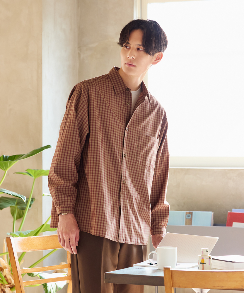 羽織るだけでお洒落に決まる!さりげないオーバーサイズ&チェック柄で大人の方も取り入れやすいアイテム。■Point・身幅はゆったり、着丈は長すぎない。トレンドのBOXシルエット。・さらっとした厚すぎない生地で秋はアウター、冬はインナーとしてお使いいただけます。・幼くならないチェック柄で大人カジュアルコーデのマストアイテム。【仕様】リラックスシルエットの長袖レギュラーカラーシャツは、ややゆったりとしたシルエットが特徴。シンプルながらも洗練されたチェック柄が、日常のコーディネートにさりげないアクセントを加えます。どんなスタイルにも合わせやすく、デイリー使いに最適です。【素材】柔らかなブロード素材を使用しており、肌触りが良く、快適な着心地を実現。通気性にも優れているため、季節を問わず活躍します。洗練された微光沢感が、カジュアルな中にも上品さを演出し、さまざまなシーンでの着用が可能です。【スタイリング】ジーンズやチノなどのカジュアルなパンツはもちろん、トラウザーと合わせるのもおすすめ。