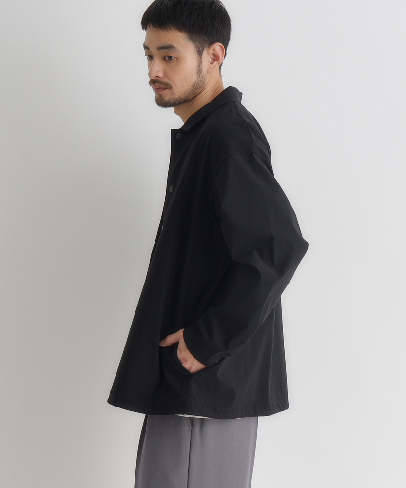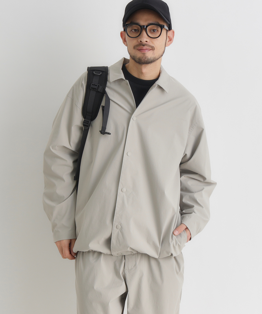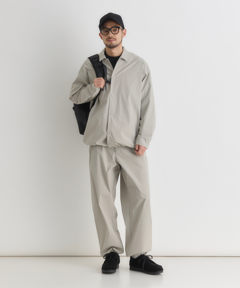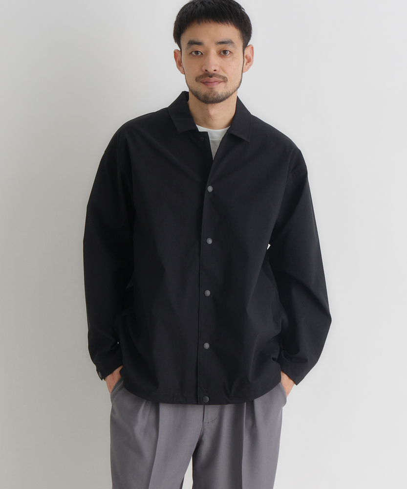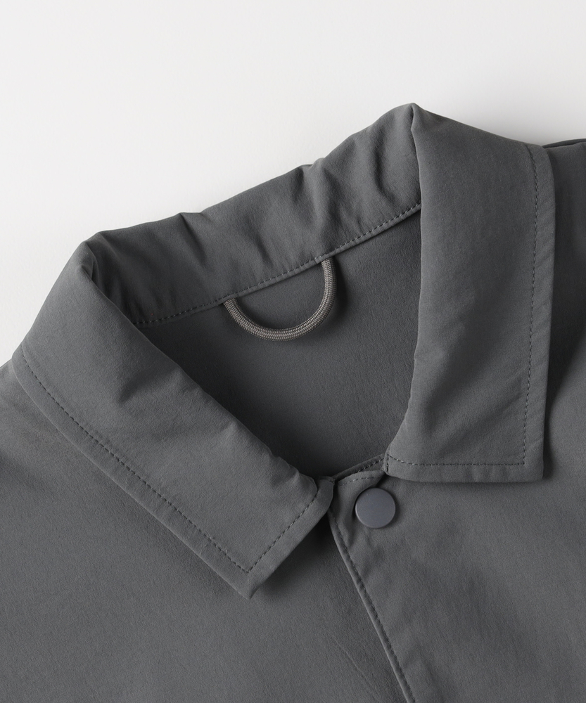 「シャツ以上、アウター未満」の万能感。都会に馴染む、大人のアクティブウェア。機能美を纏う、CAMP7のニュースタンダード。■Point・季節を繋ぐ「万能な一着」シャツの軽やかさと、ジャケットのような安心感を両立。季節の変わり目の羽織りとして、クローゼットの一軍で活躍します。・着脱スムーズな「スナップボタン」フロントはスナップボタン仕様で、スポーティな印象をプラス。片手で簡単に開閉でき、体温調節もストレスフリーに行えます。・大人に似合う「マットな質感」スポーティながらも光沢を抑えた、落ち着きのある風合い。カジュアルになりすぎず、30代・40代の男性に相応しい品格を漂わせます。・リラックスできる「絶妙シルエット」程よいゆとりを持たせたサイジングで、窮屈感のない着心地。インナーにスウェットやニットを着込んでも、スマートなラインを崩しません。・メリハリを生む「裾デザイン」裾部分に変化を持たせたデザインが、丸みのある立体的なフォルムを構築。ただ着るだけで、こなれた雰囲気に見せてくれます。・迷わず決まる「セットアップ対応」同素材のボトムスと合わせれば、統一感のある旬なスタイルが即完成。忙しい朝もコーディネートに迷うことなく、洗練された印象に。【仕様】ベーシックなレギュラーカラーシャツをベースに、コーチジャケットのようなスポーティなディテールをミックス。シンプルを追求しつつも、スナップボタンや裾の仕様で現代的なアクセントを加えました。左脇のブランドピスネームが、主張しすぎない大人のこだわりを感じさせます。【素材】アクティブなシーンにも対応する、軽量で動きやすい素材を採用しました。適度なハリ感があり、体のラインを拾いすぎないため体型カバー効果も期待できます。さらりとした肌触りで、ロングシーズン快適に着用いただける機能的なファブリックです。【スタイリング】カットソーの上に軽く羽織るだけで、清潔感のある休日スタイルに。キャップやスニーカーと合わせたスポーティな装いはもちろん、スラックスと合わせて都会的なミックススタイルを楽しむのもおすすめ。同系色のパンツと合わせたワントーンコーデなら、よりモダンな雰囲気に仕上がります。