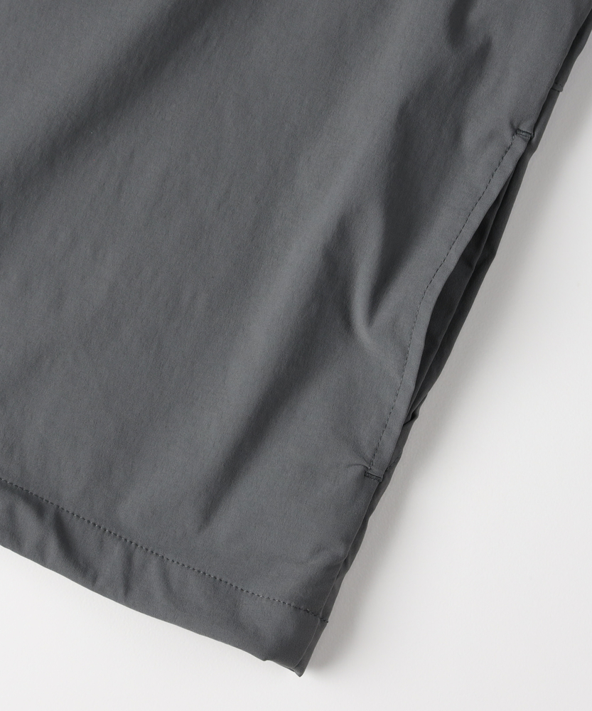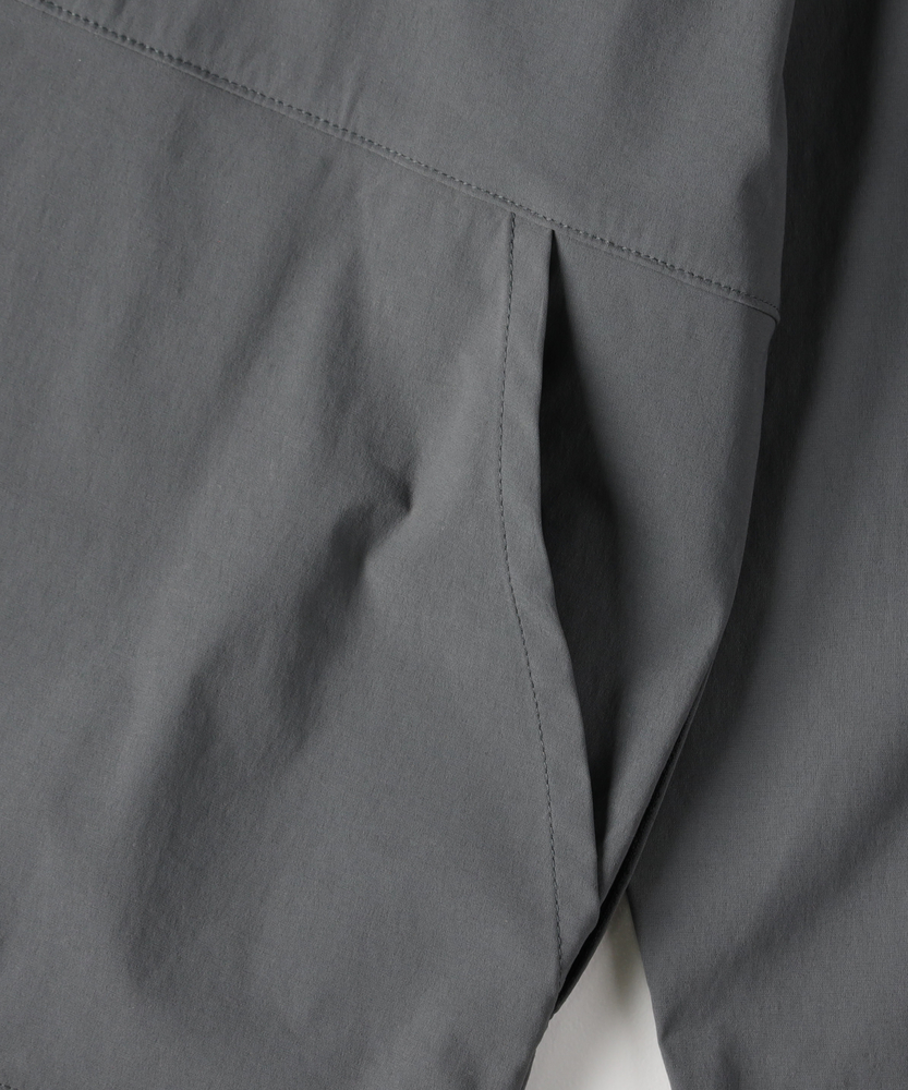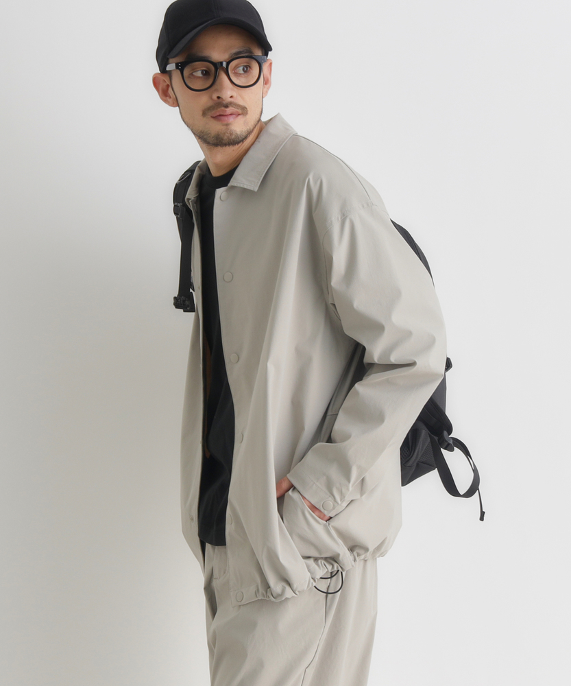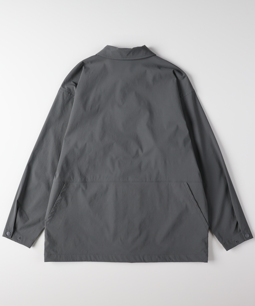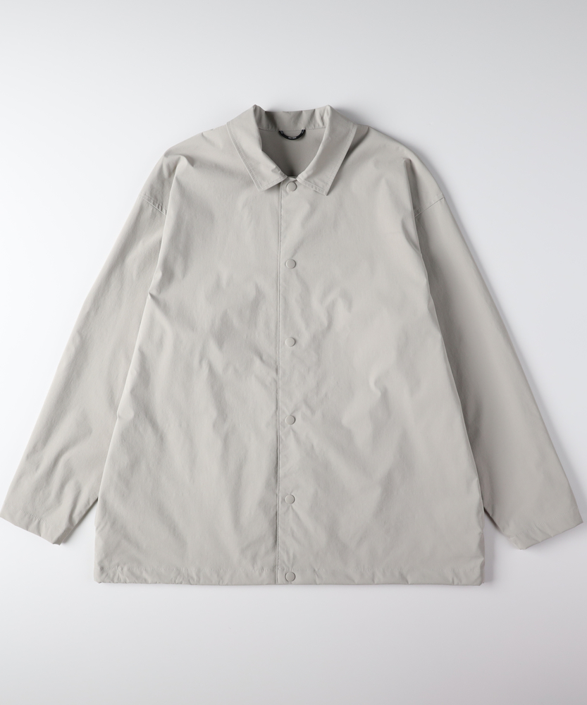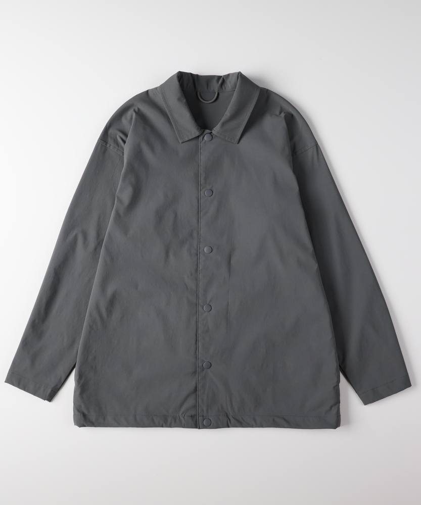 「シャツ以上、アウター未満」の万能感。都会に馴染む、大人のアクティブウェア。機能美を纏う、CAMP7のニュースタンダード。■Point・季節を繋ぐ「万能な一着」シャツの軽やかさと、ジャケットのような安心感を両立。季節の変わり目の羽織りとして、クローゼットの一軍で活躍します。・着脱スムーズな「スナップボタン」フロントはスナップボタン仕様で、スポーティな印象をプラス。片手で簡単に開閉でき、体温調節もストレスフリーに行えます。・大人に似合う「マットな質感」スポーティながらも光沢を抑えた、落ち着きのある風合い。カジュアルになりすぎず、30代・40代の男性に相応しい品格を漂わせます。・リラックスできる「絶妙シルエット」程よいゆとりを持たせたサイジングで、窮屈感のない着心地。インナーにスウェットやニットを着込んでも、スマートなラインを崩しません。・メリハリを生む「裾デザイン」裾部分に変化を持たせたデザインが、丸みのある立体的なフォルムを構築。ただ着るだけで、こなれた雰囲気に見せてくれます。・迷わず決まる「セットアップ対応」同素材のボトムスと合わせれば、統一感のある旬なスタイルが即完成。忙しい朝もコーディネートに迷うことなく、洗練された印象に。【仕様】ベーシックなレギュラーカラーシャツをベースに、コーチジャケットのようなスポーティなディテールをミックス。シンプルを追求しつつも、スナップボタンや裾の仕様で現代的なアクセントを加えました。左脇のブランドピスネームが、主張しすぎない大人のこだわりを感じさせます。【素材】アクティブなシーンにも対応する、軽量で動きやすい素材を採用しました。適度なハリ感があり、体のラインを拾いすぎないため体型カバー効果も期待できます。さらりとした肌触りで、ロングシーズン快適に着用いただける機能的なファブリックです。【スタイリング】カットソーの上に軽く羽織るだけで、清潔感のある休日スタイルに。キャップやスニーカーと合わせたスポーティな装いはもちろん、スラックスと合わせて都会的なミックススタイルを楽しむのもおすすめ。同系色のパンツと合わせたワントーンコーデなら、よりモダンな雰囲気に仕上がります。