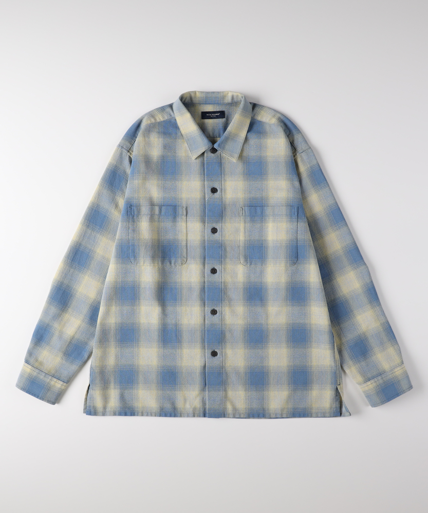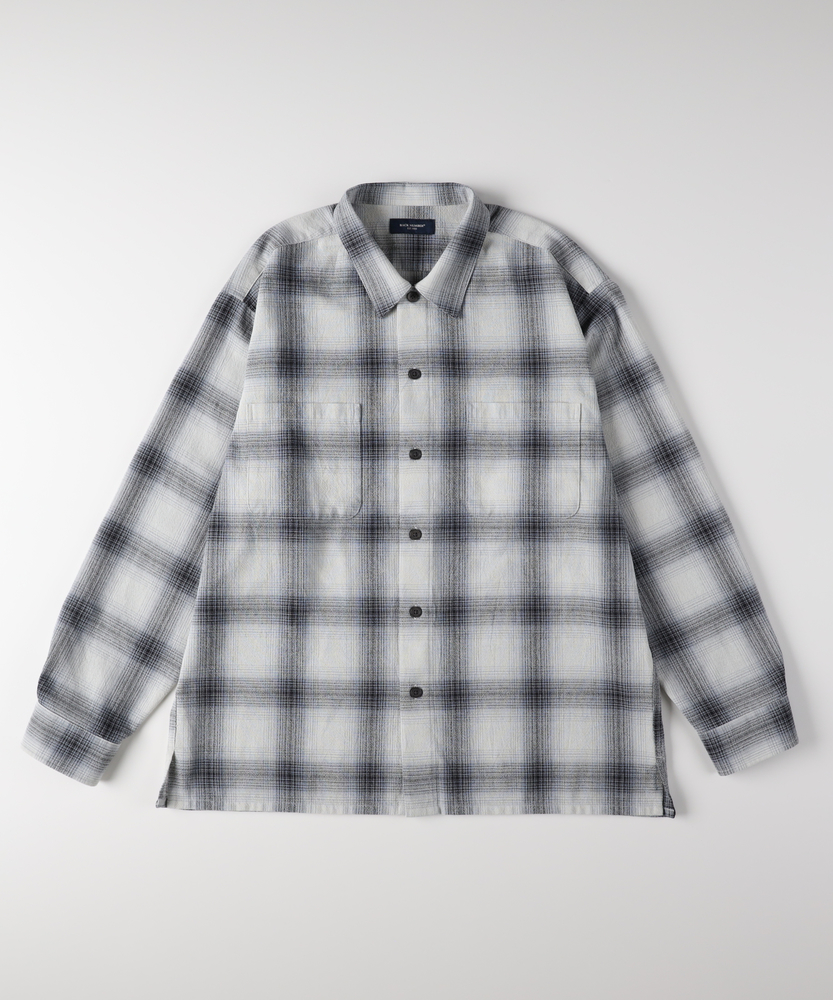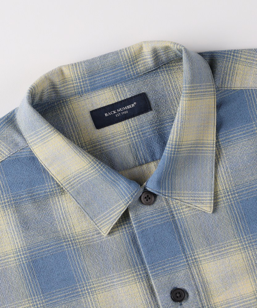 【仕様】古き良きアメカジの定番、オンブレチェックを現代的な解釈で再構築した一着です。色の濃淡が織りなすグラデーションは、カジュアルながらもどこか知的で、大人の色気を感じさせる仕上がり。両胸のダブルポケットなどワークシャツのディテールを継承しつつ、身幅に程よいゆとりを持たせたシルエットが、リラックス感とモダンな雰囲気を演出します。【素材】袖を通した瞬間から肌に馴染む、柔らかく風合い豊かな生地を採用しています。しっかりとした質感がありながらもゴワつかず、動きやすさと快適な着心地を両立しました。季節の変わり目には羽織りとして、冬場にはアウターのインナーとしてアクセントになる、ロングシーズン活躍する頼れる素材感です。【スタイリング】デニムやチノパンと合わせた王道のアメカジスタイルが最も映えます。インナーにシンプルな白Tシャツを合わせ、フロントボタンを開けてラフに羽織るだけで、大人の余裕を感じさせる休日コーデが完成。清潔感のある配色のため、スラックスなどきれいめなボトムスと合わせて、少し上品にまとめるのもおすすめです。