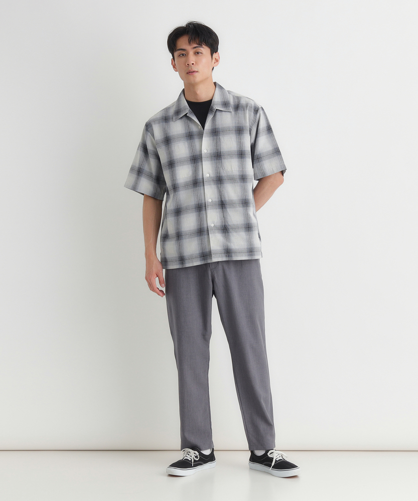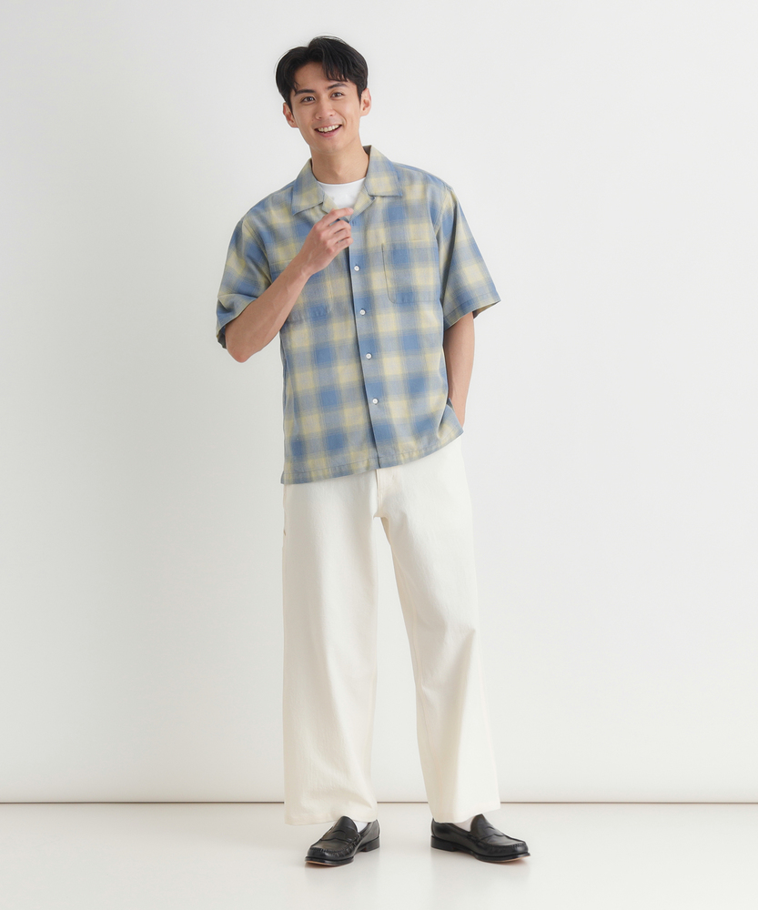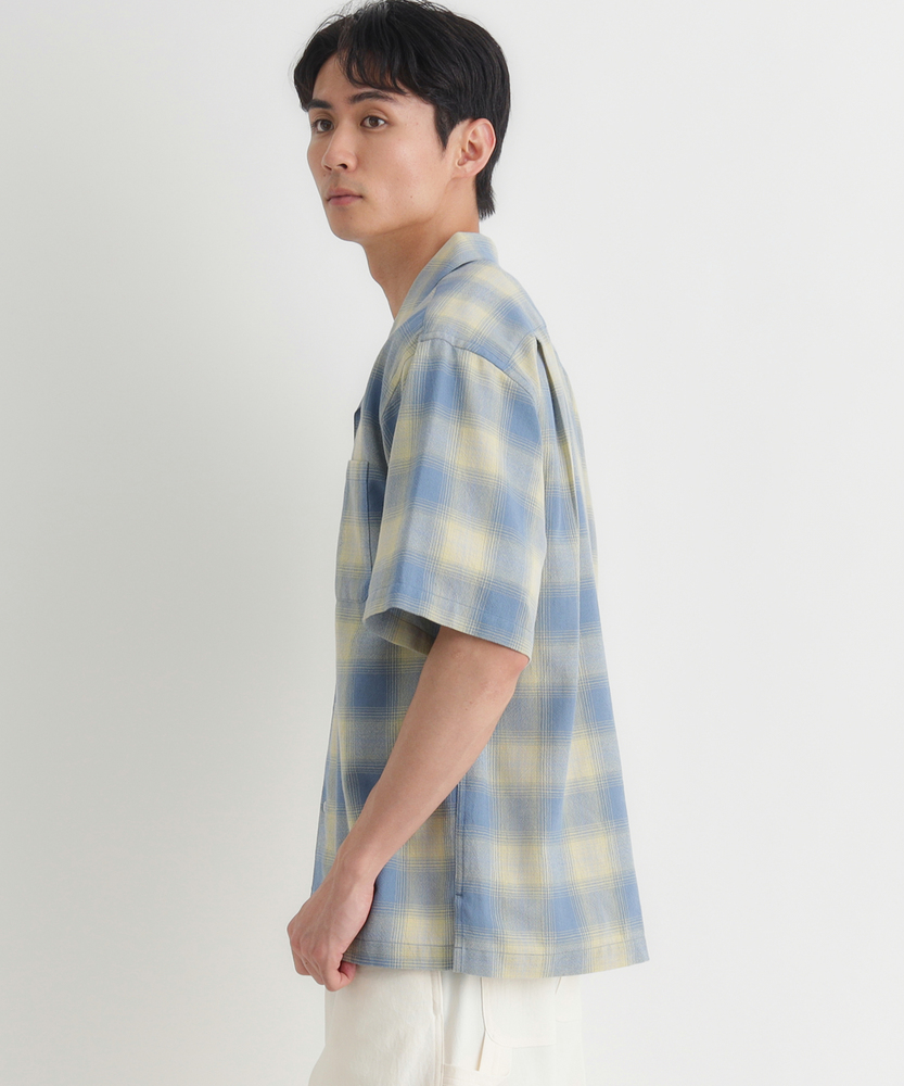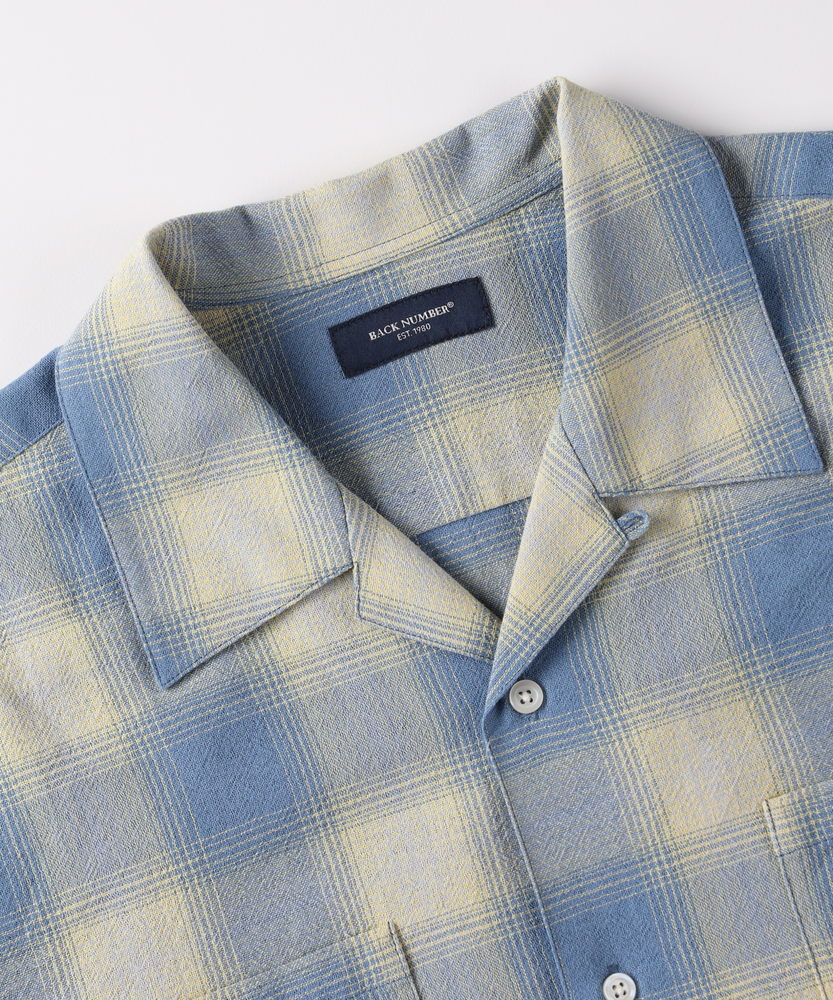 着るだけでサマになる、大人のチェック柄。涼しくて、カッコいい。「ラフ」に着流す開襟シャツ。■Point・味わい深い「オンブレチェック柄」色が徐々に変化するグラデーションが特徴。子供っぽくならず、落ち着いた印象を演出。一枚で着ても様になる、奥行きのある表情です。・首元すっきり「オープンカラー」程よい開き具合が、涼しげな抜け感をプラス。リラックスした雰囲気が大人の休日にマッチ。Tシャツとのレイヤードも綺麗に決まります。・羽織りやすい「ボックスシルエット」裾がフラットなスクエアカットを採用。身幅に適度なゆとりを持たせた設計。体のラインを拾わず、風通しも良好です。・ワーク感を添える「ダブルポケット」両胸に配したポケットがデザインのアクセント。シンプルになりがちな夏コーデに存在感を。・動きを生む「サイドスリット」裾の両サイドにスリットを入れることで、腰回りのもたつきを解消。ポケットへのアクセスもスムーズに。動くたびに軽やかな表情を見せます。【仕様】クラシカルなデザインの開襟シャツ。最大の特徴であるオンブレチェックは、境界線がぼやけたような柄で、男らしい雰囲気を醸し出します。全体的にゆとりを持たせたリラックスフィットながら、だらしなく見えない絶妙なバランスに仕上がっています。【素材】柔らかく、肌離れの良い軽やかな素材を使用しています。さらりとした質感で通気性も良く、汗ばむ季節でも快適に過ごせます。適度な落ち感があり、動くたびにドレープが生まれるため、カジュアルな中にも上品なニュアンスを感じさせます。【スタイリング】インナーに白のタンクトップやTシャツを合わせ、フロントボタンを開けて羽織るスタイルが鉄板です。色落ちしたデニムやチノパンと合わせれば王道のアメカジスタイルに。スラックスや黒のパンツで引き締めれば、都会的でモダンなコーディネートも楽しめます。足元はサンダルでラフに抜くのもおすすめです。【BACK NUMBER】ワーク・ミリタリーといったアメリカンカジュアルを根幹に、古き良きヴィンテージウェアの魅力を受け継ぎながらも、現代のライフスタイルや着こなしに合わせた素材・シルエットで再構築した、【Re-Vintage】をコンセプトに掲げるブランド。