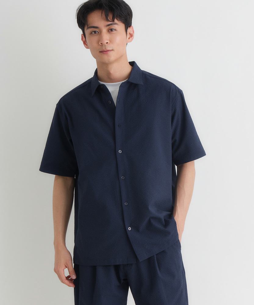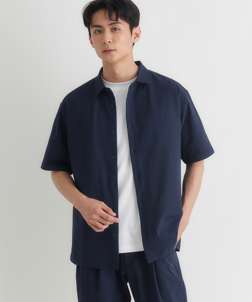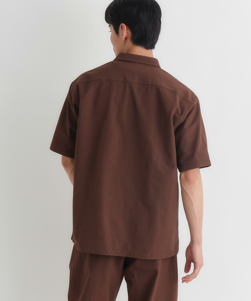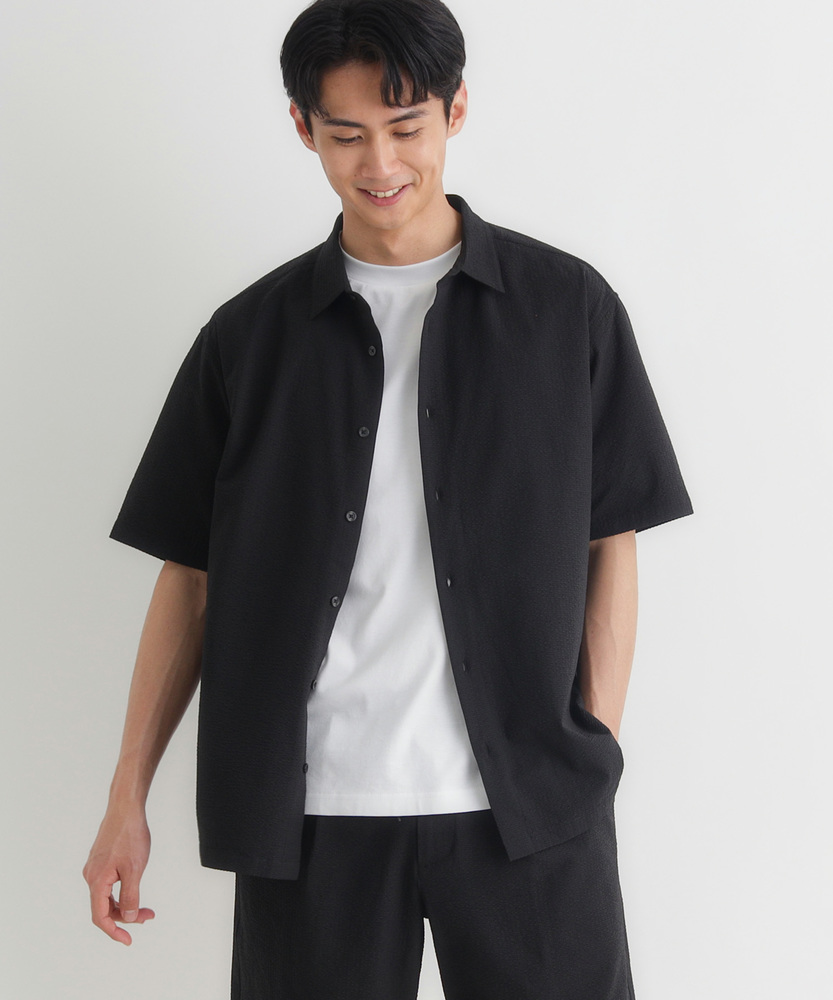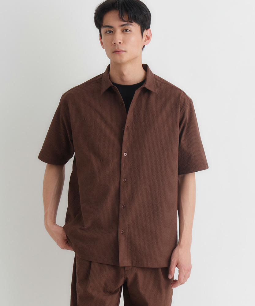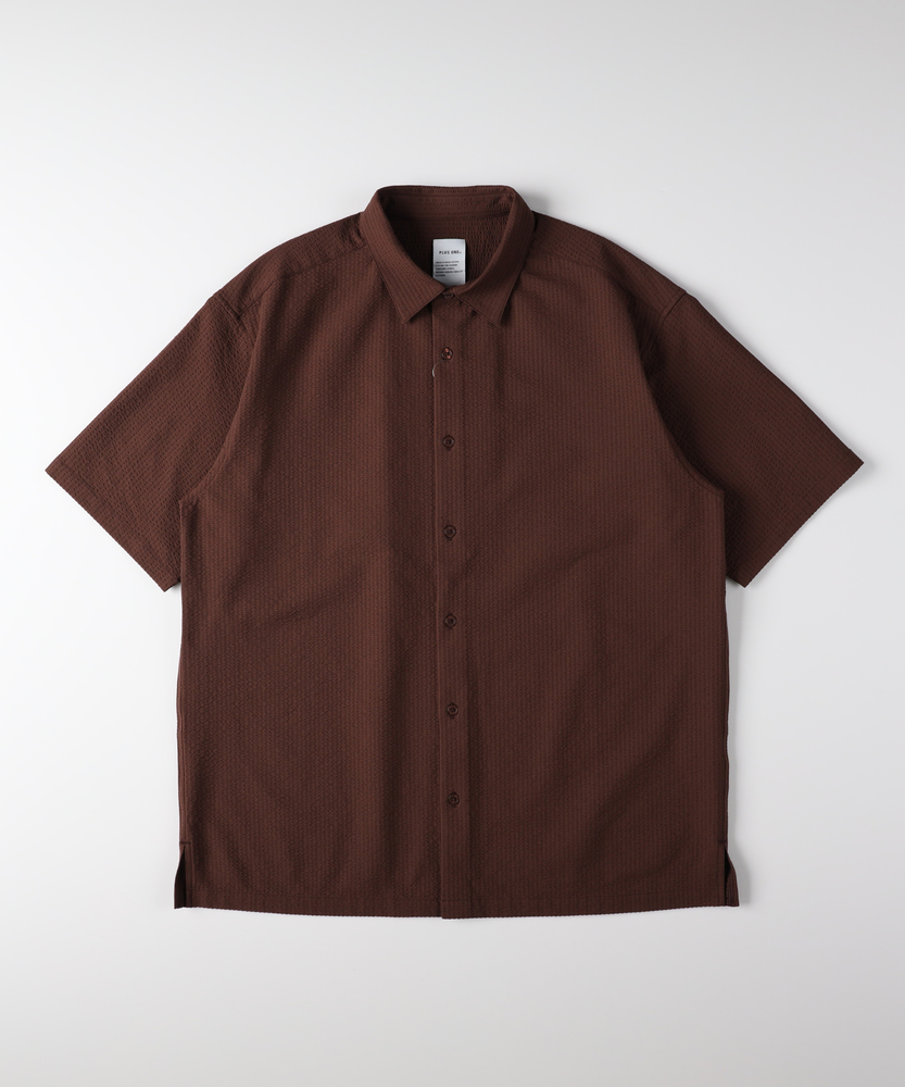 清涼感と大人の余裕を纏う。夏の定番、サッカーシャツ。肌離れの良いドライタッチで、汗ばむ季節も快適に。リラックス感ときちんと感を両立する万能な一枚。■Point・涼やかなサッカー生地。肌に触れる面積が少なく、さらりと快適な着心地。夏場の不快感を軽減します。・大人のリラックスシルエット。程よくゆとりを持たせ、風通し良く体型もカバー。抜け感のある着こなしに。・こなれ感を生む裾スリット。動くたびに軽やかさを演出。ボトムスを選ばない、絶妙な着丈バランスを実現。・ミニマルなワントーンデザイン。ボタンも同系色で統一し、すっきりと洗練された印象に。着回し力も抜群です。・嬉しいイージーケア仕様。生地特有の凹凸感により、シワが目立ちにくいのが特徴。日常使いに頼れる一枚です。・落ち着きのあるカラー展開。大人の渋みと清潔感を引き立てる、深みのある色合いをご用意。秋口まで長く活躍します。【仕様】ベーシックなレギュラーカラーをベースに、身幅や肩周りに程よいゆとりを持たせたリラックスシルエットの半袖シャツです。裾の両サイドにはスリットを施し、一枚で着ても動きのある軽やかな印象を与えます。フロントボタンは生地と同系色でまとめることで、主張を抑えたミニマルで洗練されたルックスに仕上げました。【素材】表面に波のようなシボ(凹凸)があるサッカー生地を使用しています。生地が肌に張り付きにくく、通気性に優れているため、汗ばむ季節でもさらりとしたドライなタッチを保ちます。また、生地特有の風合いにより着用ジワが目立ちにくく、お手入れが簡単でデイリーユースに気兼ねなく取り入れられるのも大きな魅力です。【スタイリング】細身のスラックスやテーパードパンツと合わせれば、清潔感のある大人のきれいめスタイルに。休日はショートパンツやワイドなデニムと合わせて、リラックスしたサマーコーデを楽しむのがおすすめです。フロントボタンを開けて、無地のTシャツやタンクトップの上にサラッと羽織るレイヤードスタイルも様になります。 【セットアップで着用可能なアイテムはこちら】PL26101200070 サッカーショートパンツ/セットアップ対応PL26101200069 サッカーイージーパンツ/セットアップ対応