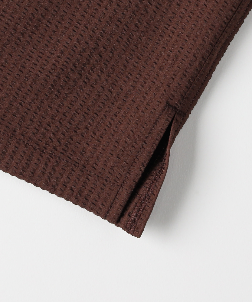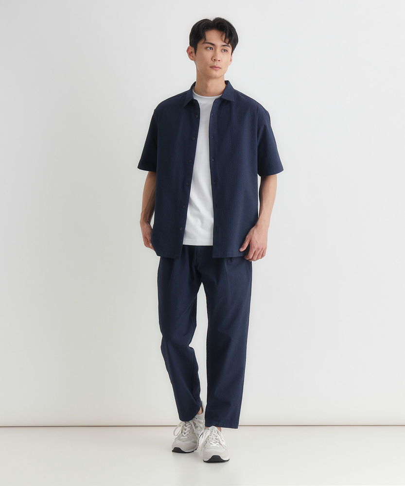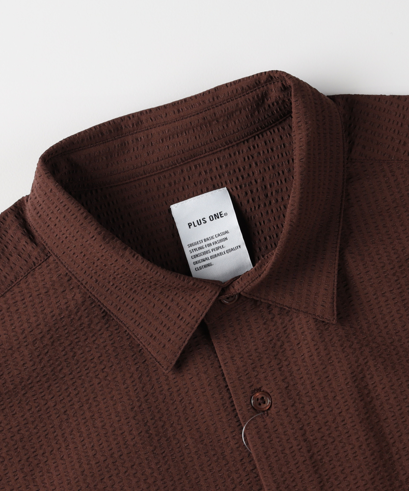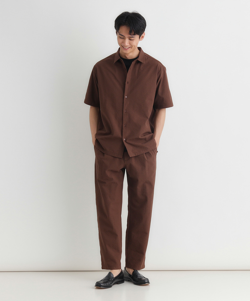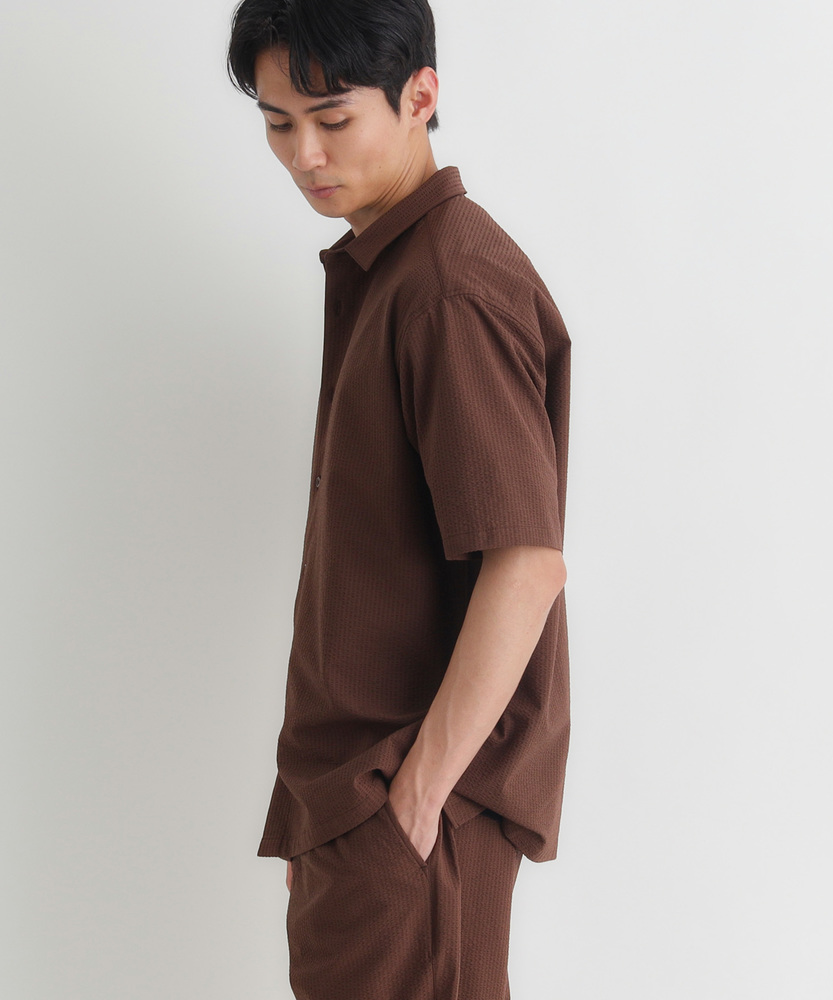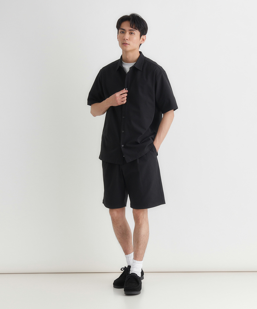 清涼感と大人の余裕を纏う。夏の定番、サッカーシャツ。肌離れの良いドライタッチで、汗ばむ季節も快適に。リラックス感ときちんと感を両立する万能な一枚。■Point・涼やかなサッカー生地。肌に触れる面積が少なく、さらりと快適な着心地。夏場の不快感を軽減します。・大人のリラックスシルエット。程よくゆとりを持たせ、風通し良く体型もカバー。抜け感のある着こなしに。・こなれ感を生む裾スリット。動くたびに軽やかさを演出。ボトムスを選ばない、絶妙な着丈バランスを実現。・ミニマルなワントーンデザイン。ボタンも同系色で統一し、すっきりと洗練された印象に。着回し力も抜群です。・嬉しいイージーケア仕様。生地特有の凹凸感により、シワが目立ちにくいのが特徴。日常使いに頼れる一枚です。・落ち着きのあるカラー展開。大人の渋みと清潔感を引き立てる、深みのある色合いをご用意。秋口まで長く活躍します。【仕様】ベーシックなレギュラーカラーをベースに、身幅や肩周りに程よいゆとりを持たせたリラックスシルエットの半袖シャツです。裾の両サイドにはスリットを施し、一枚で着ても動きのある軽やかな印象を与えます。フロントボタンは生地と同系色でまとめることで、主張を抑えたミニマルで洗練されたルックスに仕上げました。【素材】表面に波のようなシボ(凹凸)があるサッカー生地を使用しています。生地が肌に張り付きにくく、通気性に優れているため、汗ばむ季節でもさらりとしたドライなタッチを保ちます。また、生地特有の風合いにより着用ジワが目立ちにくく、お手入れが簡単でデイリーユースに気兼ねなく取り入れられるのも大きな魅力です。【スタイリング】細身のスラックスやテーパードパンツと合わせれば、清潔感のある大人のきれいめスタイルに。休日はショートパンツやワイドなデニムと合わせて、リラックスしたサマーコーデを楽しむのがおすすめです。フロントボタンを開けて、無地のTシャツやタンクトップの上にサラッと羽織るレイヤードスタイルも様になります。 【セットアップで着用可能なアイテムはこちら】PL26101200070 サッカーショートパンツ/セットアップ対応PL26101200069 サッカーイージーパンツ/セットアップ対応