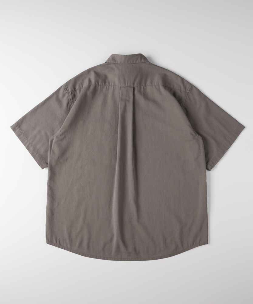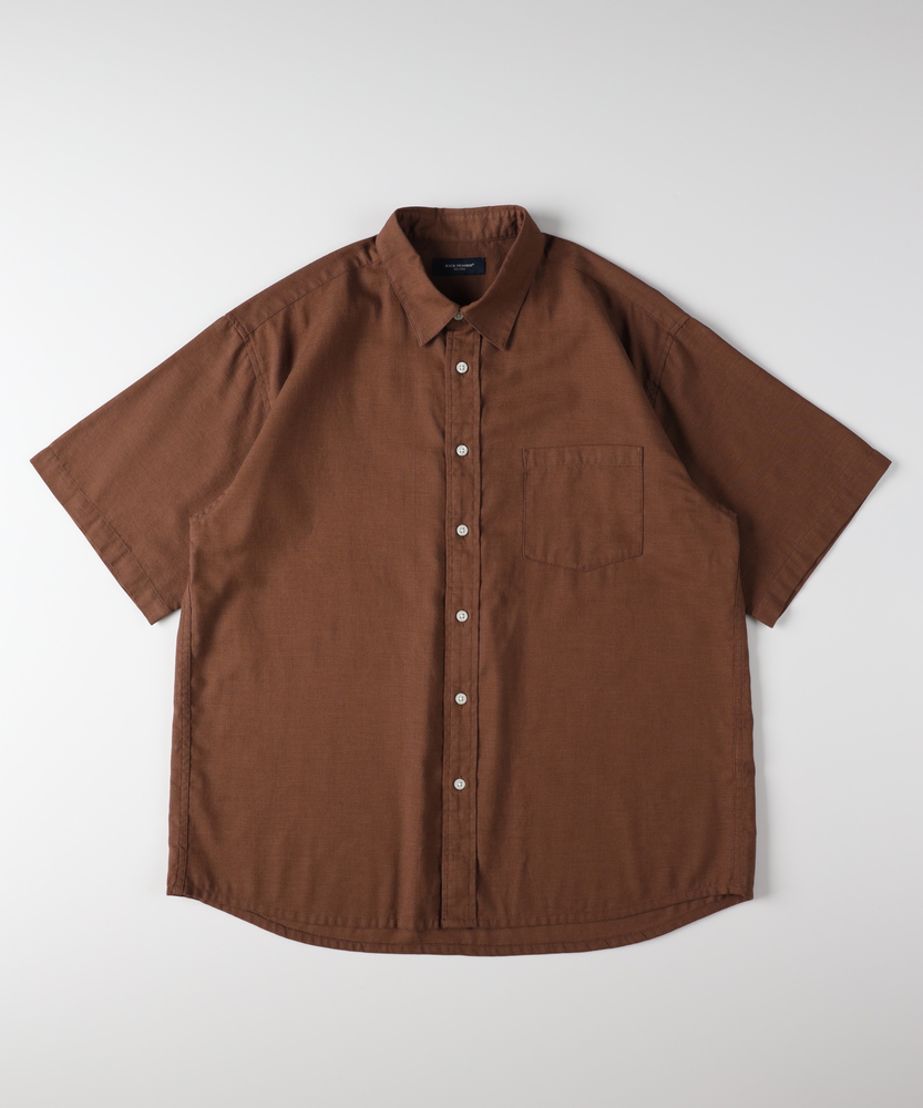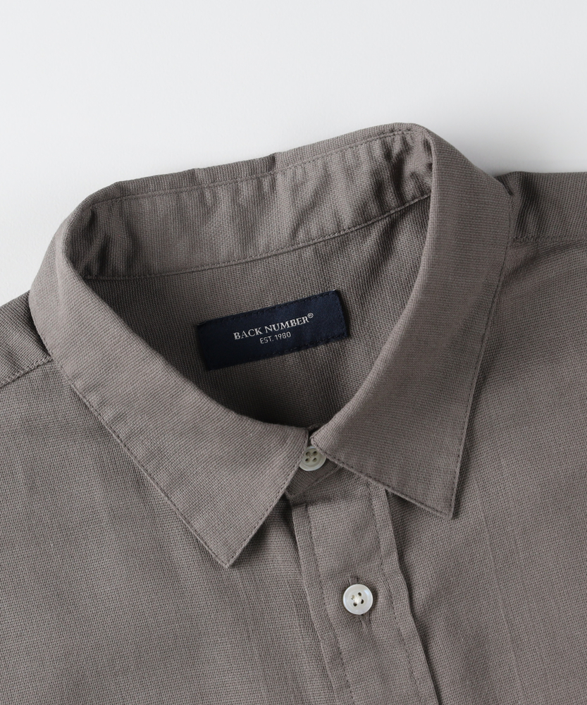 涼風を纏う「カラミ織り」の心地よさ。アメカジの系譜を受け継ぐ、大人のベーシック。夏の日常をスマートに彩る半袖シャツ。■Point・風が抜ける「カラミ織り」生地。糸を絡ませて織り上げる伝統的な技法。細かな網目が風を通し、涼しさをキープ。汗ばむ季節も爽やかな着心地です。・肌離れの良いドライなタッチ。生地表面の細やかな凹凸感が特徴。肌に張り付きにくく、ベタつきを軽減。いつでもさらりとした肌触りを楽しめます。・王道をいくレギュラーカラー。襟元はベーシックで誠実な印象。ラフになりすぎず、きちんと感を演出。大人のカジュアルスタイルに最適です。・現代的なリラックスシルエット。身幅に程よいゆとりを持たせた設計。大人の体型を優しくカバーします。一枚で着てもサマになるバランス感。・動きやすさを生む背面のプリーツ。背中にはセンターボックスプリーツを配置。肩回りの可動域を広げ、窮屈感を解消。日常のあらゆる動作を快適にサポートします。・着回し力抜群の落ち着いたカラー。深みのあるトーンが都会的な雰囲気に。お手持ちのボトムスともすんなり馴染む。着る人の年代を問わない洗練された色合い。【仕様】ヴィンテージウェアの魅力を現代の着こなしに合わせて再構築した、ベーシックな半袖シャツです。端正なレギュラーカラーが、大人の男性にふさわしい清潔感を演出します。裾は緩やかなラウンドカットで、タックアウトしても野暮ったく見えません。左胸のシンプルなポケットが、実用性と程よいアクセントを添えています。【素材】糸同士を絡ませて隙間を作る「カラミ織り」を採用しています。メッシュのような構造が優れた通気性を発揮し、衣服内に熱がこもりにくいのが魅力です。生地表面の細かな凹凸が肌への接触面積を減らし、汗をかいてもベタつきにくく、ドライな状態をキープ。夏の不快感を和らげる頼もしい素材感です。【スタイリング】フロントのボタンを開けて白Tシャツの上に羽織れば、爽やかな大人のレイヤードスタイルが完成します。ボトムスはテーパードの効いたチノパンやきれいめなスラックスを合わせ、品良くまとめるのがおすすめ。足元はレザーサンダルやローファーで引き締めると、都会的で洗練された印象に。休日のお出かけに幅広く活躍します。【BACK NUMBER】ワーク・ミリタリーといったアメリカンカジュアルを根幹に、古き良きヴィンテージウェアの魅力を受け継ぎながらも、現代のライフスタイルや着こなしに合わせた素材・シルエットで再構築した、【Re-Vintage】をコンセプトに掲げるブランド。