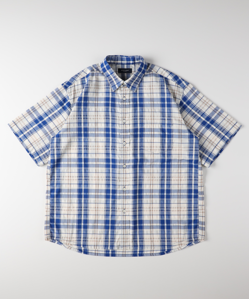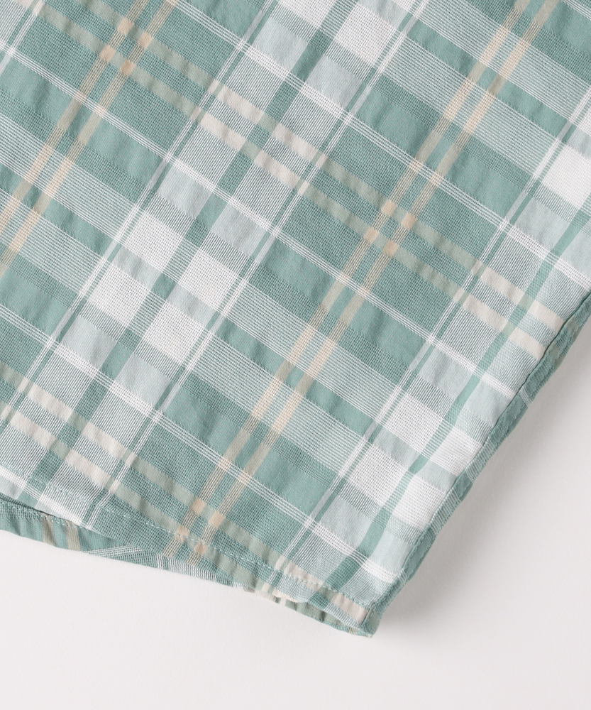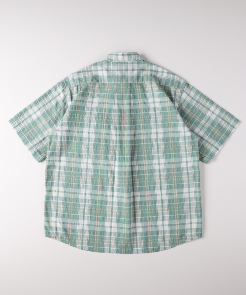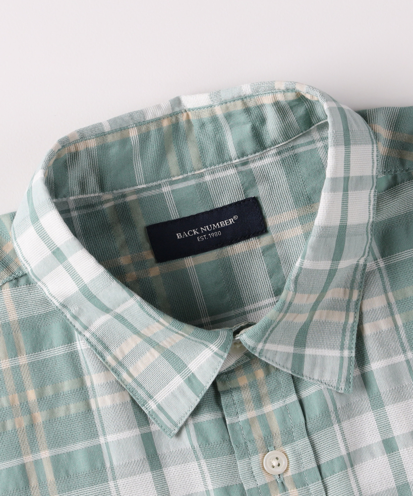 アメカジの定番を、涼快な「カラミ織り」でアップデート。風が通り抜ける、真夏の爽やかチェックシャツ。大人の休日に似合う、リラックス感と清潔感の好バランス。■Point・風が抜ける涼やかな「カラミ織り」。糸を絡ませて隙間を作る伝統的な織り方。優れた通気性で、衣服内に風を通します。汗ばむ季節もさらりとした着心地です。・1枚で主役になる爽やかチェック柄。アメカジの王道を感じさせるチェック柄。多色使いでありながら落ち着いたトーン。大人のカジュアルスタイルに馴染みます。・現代的なゆとりのあるシルエット。身幅に程よいゆとりを持たせた設計。肌にまとわりつかず、リラクシーな印象。大人の体型をスマートにカバーします。・端正な印象を与えるレギュラーカラー。ベーシックで誠実な印象の襟型を採用。カジュアルな柄に、きちんと感をプラス。シーンを問わず使いやすいデザインです。・動きやすさを高めるボックスプリーツ。背面にセンターボックスプリーツを配置。肩や背中回りの窮屈感を和らげます。アクティブな休日も快適にサポート。・抜け感を作るラウンドカットの裾。裾は緩やかなカーブを描くラウンドヘム。タックアウトで着ても野暮ったくなりません。自然なこなれ感を演出するディティールです。【仕様】古き良きアメカジテイストを感じさせるチェック柄を、現代的なリラックスシルエットで再構築した半袖シャツ。端正なレギュラーカラーと左胸のポケットが、オーセンティックな魅力を引き立てます。背面のボックスプリーツやラウンドカットの裾など、動きやすさと着こなしやすさを計算したディテールが光る一枚です。【素材】糸同士を絡み合わせて織り上げる「カラミ織り」を採用しています。メッシュのような細かな網目が優れた通気性を発揮し、熱がこもりにくいのが最大の特徴です。生地表面に微細な凹凸があるため、汗をかいても肌に張り付きにくく、常にドライで軽快なタッチを保ちます。真夏の不快感を軽減する、頼もしい素材感です。【スタイリング】白の無地Tシャツの上にサラッと羽織るだけで、チェック柄が映える爽やかなレイヤードスタイルが完成します。ボトムスは王道のデニムやチノパンを合わせて、王道のアメカジスタイルを楽しむのがおすすめ。ショートパンツやサンダルと組み合わせれば、夏らしい軽快なリゾートスタイルとしても活躍します。【BACK NUMBER】ワーク・ミリタリーといったアメリカンカジュアルを根幹に、古き良きヴィンテージウェアの魅力を受け継ぎながらも、現代のライフスタイルや着こなしに合わせた素材・シルエットで再構築した、【Re-Vintage】をコンセプトに掲げるブランド。
