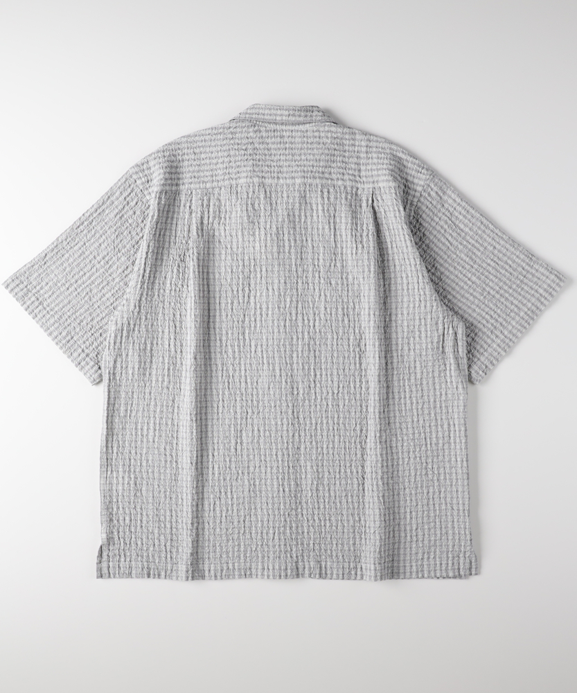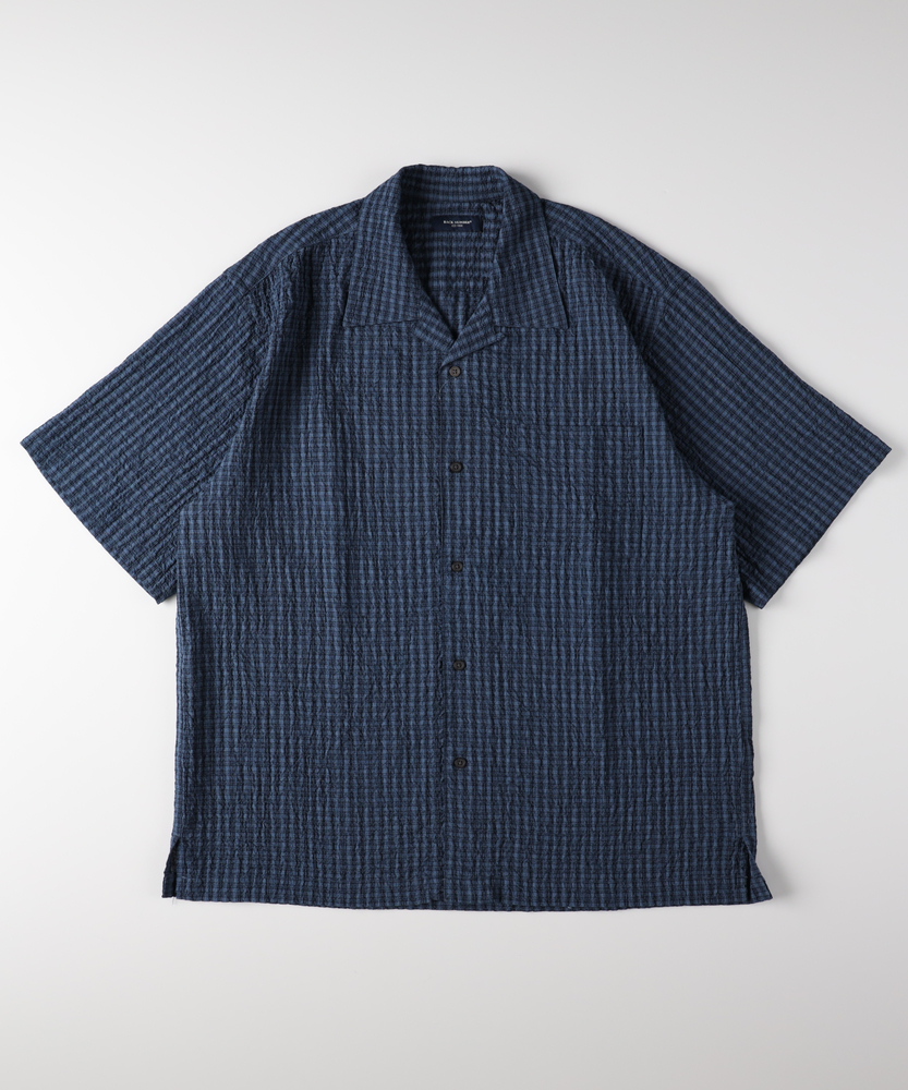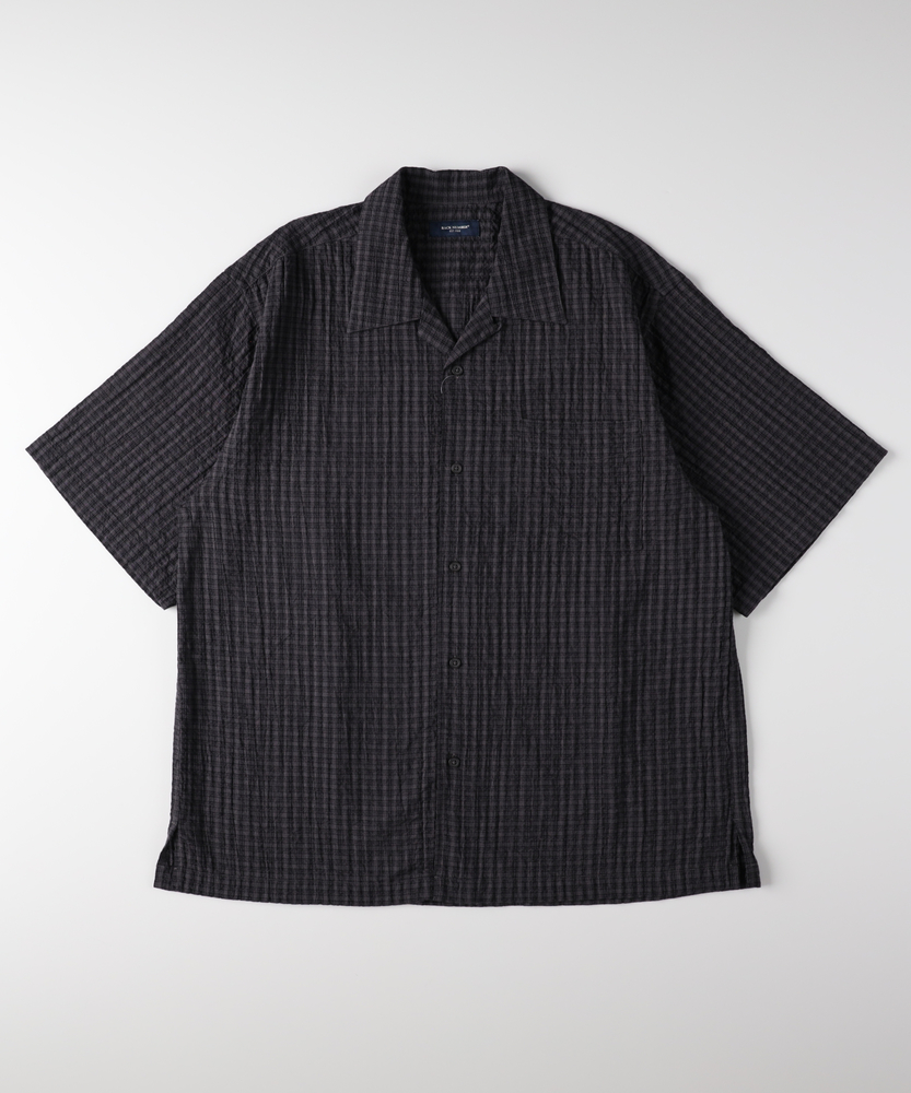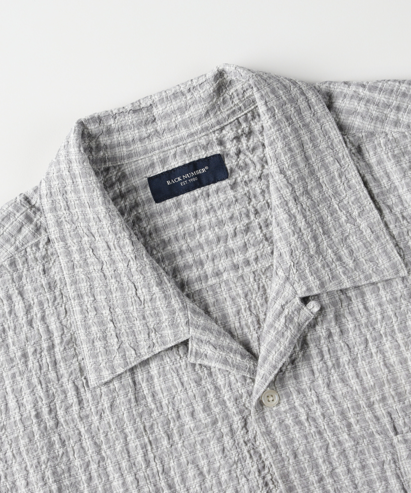 汗ばむ季節も、さらりと涼しげな大人の余裕。表情豊かなサッカー生地が織りなす、クリーンで洗練されたチェック柄シャツ。■Point・肌離れの良いサッカー生地表面の微細な凹凸が特徴。汗をかいてもベタつきにくく、さらりとした快適な着心地をキープ。・抜け感を作るオープンカラー首元がすっきり開いたデザイン。リラックスした大人の余裕を演出します。・主張しすぎない細かなチェック柄無地ライクに着回せる絶妙な柄使い。コーディネートに奥行きを与えます。・風が抜けるリラックスシルエット程よいゆとりを持たせたサイズ感。体のラインを拾わず、ストレスフリー。・動きやすさを生むサイドスリット裾にスリットを入れることで、ボトムスアウトでもすっきり決まります。・実用的な胸ポケット左胸に配したシンプルなポケット。ちょっとした小物を入れるのに便利。【仕様】ヴィンテージのオープンカラーシャツをベースに、現代のライフスタイルに合わせてクリーンに再構築した一枚。首回りの抜け感が、大人の色気とリラックスした雰囲気を醸し出します。身幅に程よいゆとりを持たせたシルエットと裾のサイドスリットにより、一枚でさらりと着てもサマになるバランスの良いデザインです。【素材】生地表面に波打つような凹凸があるサッカー生地を採用しています。この凹凸により肌に触れる面積が少なくなるため、汗ばむ季節でもベタつきにくく、さらりとした爽やかな風合いを楽しめます。細やかなチェック柄が織り込まれており、シンプルながらも表情豊かな見栄えが特徴です。【スタイリング】細身のチノパンやスラックスと合わせて、清潔感のあるキレイめカジュアルにまとめるのが大人の正解。フロントのボタンを開けて、無地のTシャツやタンクトップの上に羽織るスタイルも、こなれ感が出て素敵です。落ち着いたトーンのカラー展開なので、どんなボトムスとも相性良く着回せます。【BACK NUMBER】ワーク・ミリタリーといったアメリカンカジュアルを根幹に、古き良きヴィンテージウェアの魅力を受け継ぎながらも、現代のライフスタイルや着こなしに合わせた素材・シルエットで再構築した、【Re-Vintage】をコンセプトに掲げるブランド。 【セットアップで着用可能なアイテムはこちら】BN26101200077 サッカーミニチェックショートパンツ/セットアップ対応