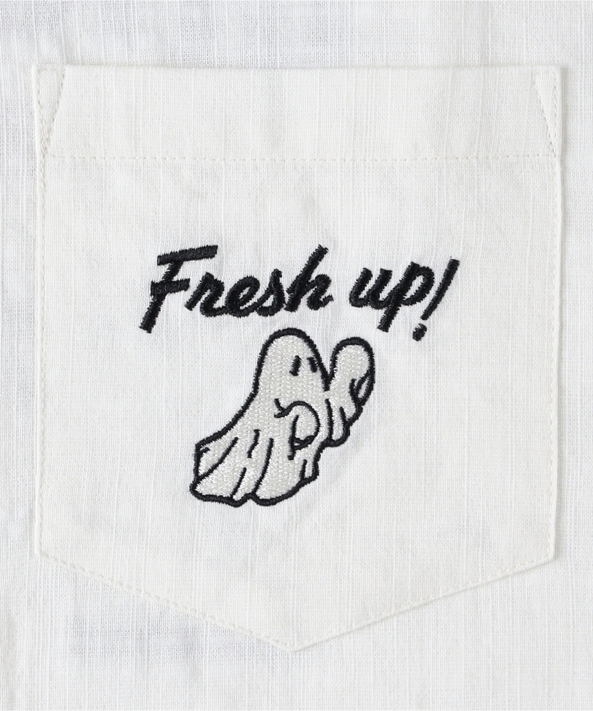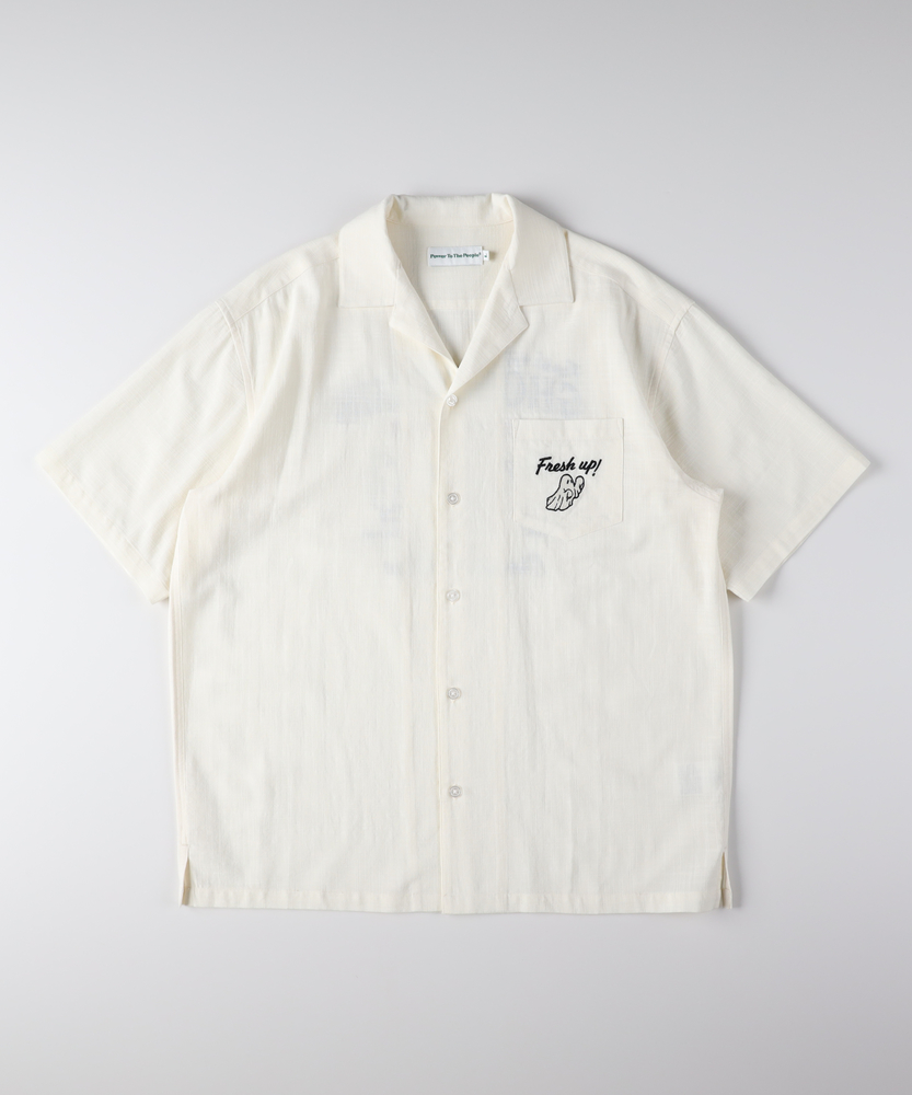大人の休日に、さりげない遊び心を。後ろ姿で魅せる、洗練されたバック刺繍。リラクシーなオープンカラーでこなれ感を演出。■Point・大人の余裕を感じさせるオープンカラー首元をすっきりと見せ、リラックスした雰囲気に。抜け感のある着こなしがスマートに叶います。前を開けてラフに羽織るスタイルもおすすめです。・遊び心をくすぐるバック刺繍後ろ姿にアクセントを加える印象的なデザイン。やりすぎない絶妙なバランスが大人の余裕を表現。振り返ったときにもセンスの良さを感じさせます。・胸元のワンポイントがアクセントフロントのポケットにもさりげない刺繍を配置。前から見たときのルックスも抜かりありません。シンプルな中にも個性が光る仕上がりです。・サラリと羽織れる軽やかな風合い肌離れが良く、汗ばむ季節も快適な着心地。清涼感のある風合いが涼しげな印象を与えます。見た目にも軽快で、重たさを感じさせません。・程よくゆとりのあるボックスシルエット身体のラインを拾わず、リラクシーな着用感。大人の体型にも自然にフィットしカバーします。インナーを着込んでも美しいラインを保ちます。・使い勝手の良いサイドスリット裾のサイドにスリットを施し、動きやすさを確保。ボトムスとのバランスも取りやすい仕様です。タックアウトでの着用時も綺麗に決まります。【仕様】リラックス感漂うオープンカラーに、印象的なバック刺繍を施した一枚です。フロントの胸ポケットにもワンポイントをあしらい、前後で異なる表情を楽しめます。ゆとりのあるボックスシルエットとサイドスリットが、大人のカジュアルスタイルに程よい抜け感を演出。カラーごとに異なる個性的なモチーフが魅力です。【素材】汗ばむ季節にもサラリと快適に羽織れる、清涼感のある風合いが特徴です。肌離れが良く、軽やかな生地感がリラクシーな着心地をサポート。見た目にも涼しげなテクスチャは、着こなしに程よい抜け感と上品さをプラスします。デイリーユースに気兼ねなく取り入れていただける、日常に寄り添う実用的なアイテムです。【スタイリング】細身のスラックスと合わせれば、大人の落ち着きを保ちつつ遊び心を効かせたモダンなスタイリングが完成します。休日はゆったりとしたワイドパンツやショーツと合わせて、リラックスした着こなしを楽しむのもおすすめ。インナーにシンプルなTシャツを忍ばせ、軽く羽織るスタイルもこなれ感が引き立ちます。