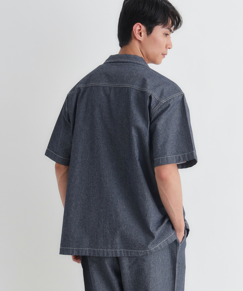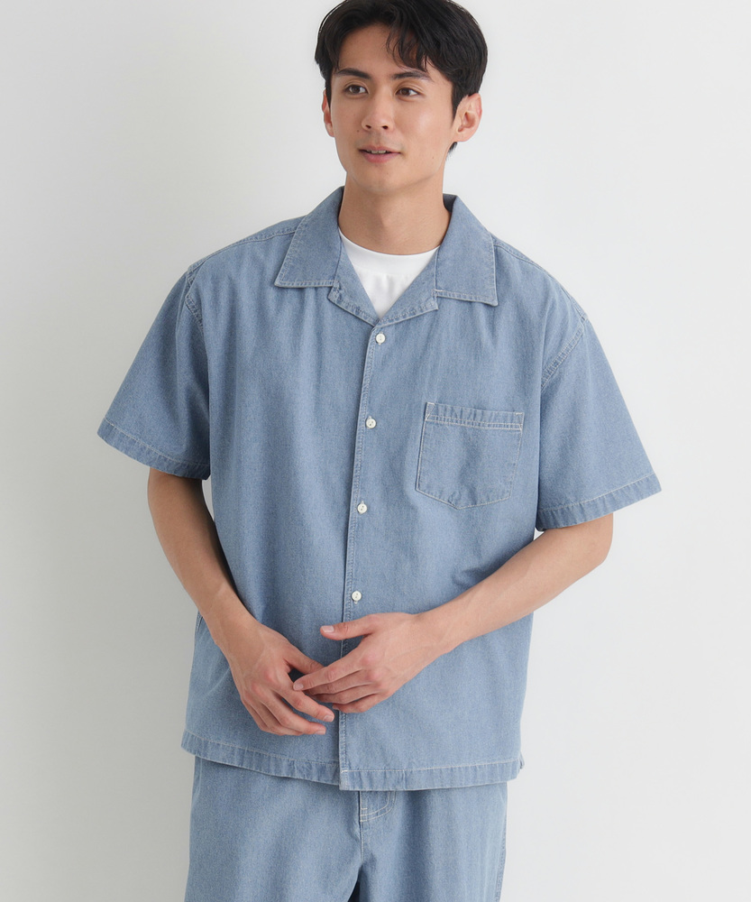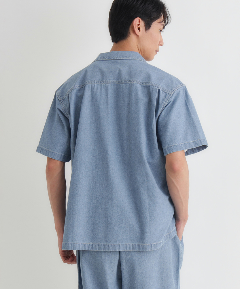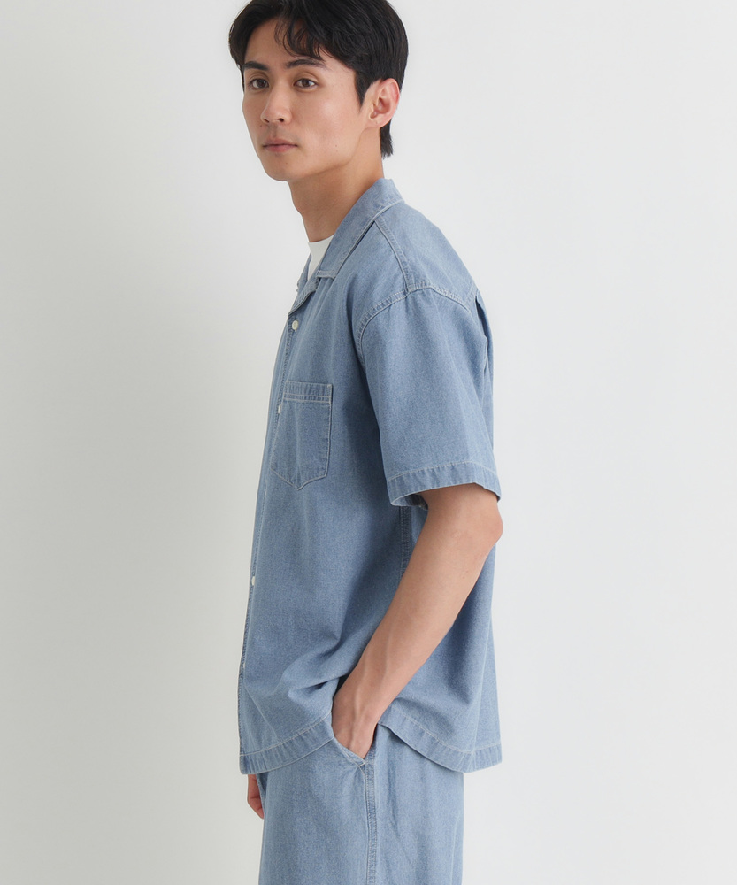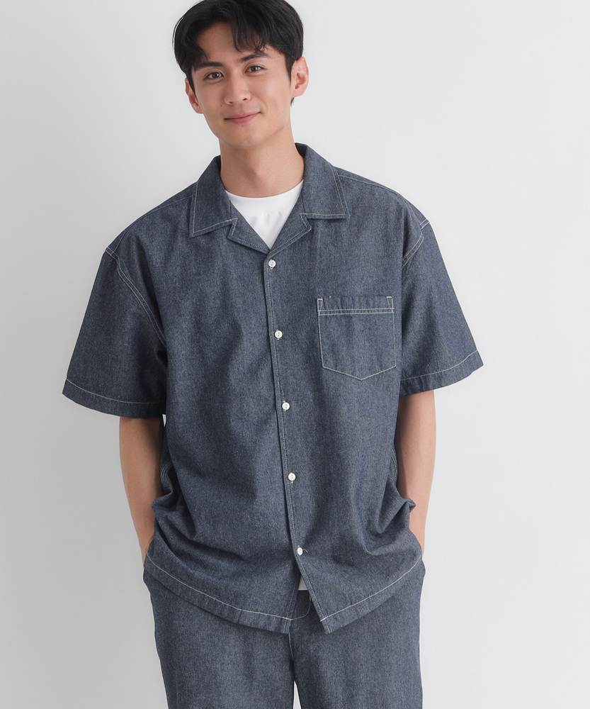 風合い豊かなシャンブレーが、大人の夏を彩る。羽織るだけでこなれ感。爽やかなオープンカラー。日常に溶け込む、洗練された大人のベーシック。■Point・奥行きのあるシャンブレー生地特有の霜降り状のムラ感。着るほどに肌に馴染みます。豊かな風合いがこなれた印象に。・肌に優しいコットン100%ナチュラルで柔らかな質感。通気性が良く快適な着心地。汗ばむ季節も爽やかに過ごせます。・首元すっきりのオープンカラー程よい抜け感を演出する襟元。顔周りを涼しげに見せます。リラックスした大人の雰囲気に。・絶妙なレギュラーシルエット程よくゆとりのあるサイズ感。だらしなく見えない美しい形。どんな体型にも自然にフィット。・アクセントのステッチワーク白糸のステッチが程よい抜け感。爽やかな白ボタンがポイント。さりげないワークテイストをプラス。・着回しやすいデニムライクな色合い爽やかな淡色と落ち着いた濃色。幅広いボトムスと好相性。大人のカジュアルスタイルに最適。【仕様】抜け感のあるオープンカラーが特徴的な半袖シャツです。胸元のパッチポケットや、全体に施された白糸のステッチがさりげないワークテイストをプラス。裾はフラットなスクエアヘムでサイドスリットが入っており、一枚着としても羽織りとしてもバランスよく決まる、大人の日常に寄り添うデザインに仕上がっています。【素材】肌触りの良い綿100%のシャンブレー生地を採用しています。特有の霜降り状のムラ感による、奥行きのある豊かな表情が最大の魅力。柔らかな質感で通気性にも優れ、暑い日も快適に着用いただけます。着るたびに肌に馴染み、風合いが増していく過程を楽しめる、ワードローブに長く置いておきたくなる一枚です。【スタイリング】フロントのボタンを開けて白Tシャツの上にサッと羽織れば、清潔感漂う大人のカジュアルスタイルが完成します。ボトムスはチノパンやスラックスを合わせてきれいめにまとめるのがおすすめ。同素材のボトムスと合わせたセットアップ風のスタイリングも、統一感が生まれ洗練された印象を与えてくれます。 【セットアップで着用可能なアイテムはこちら】PL26101200059 シャンブレーワイドパンツ/セットアップ対応PL26101200060 シャンブレーテーパードパンツ/セットアップ対応