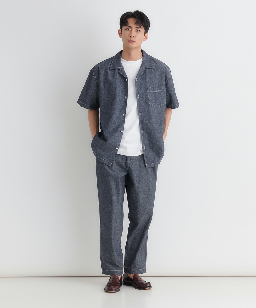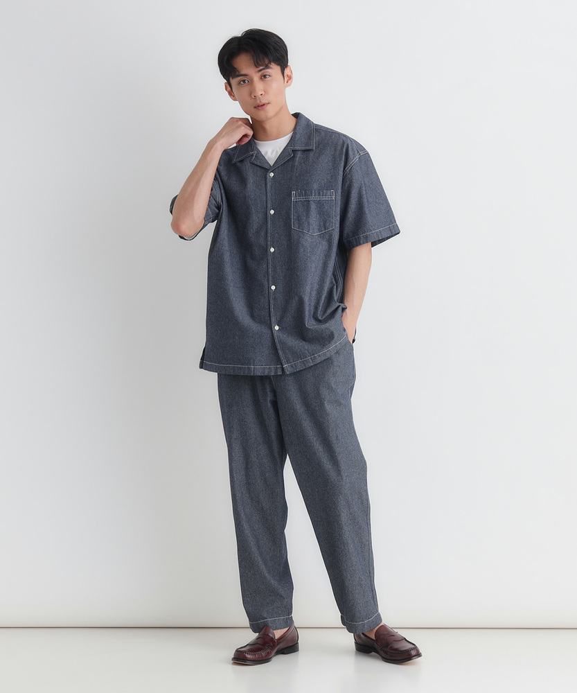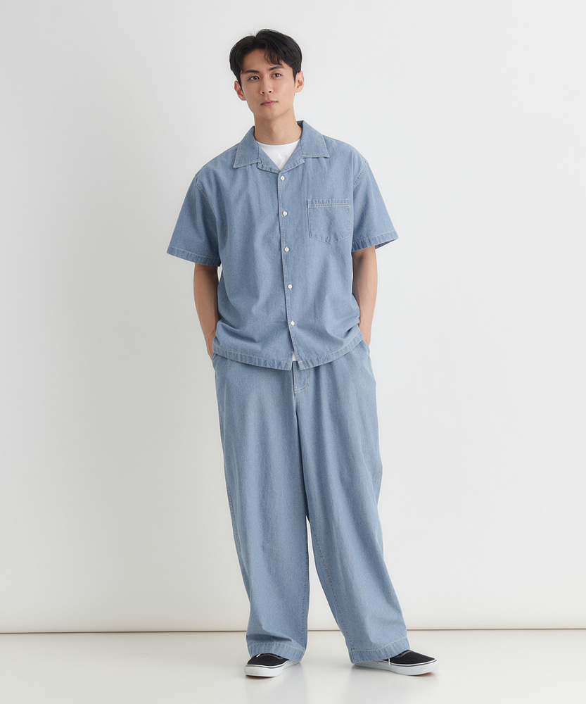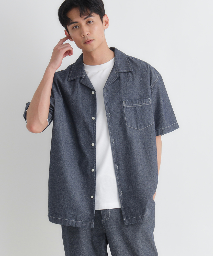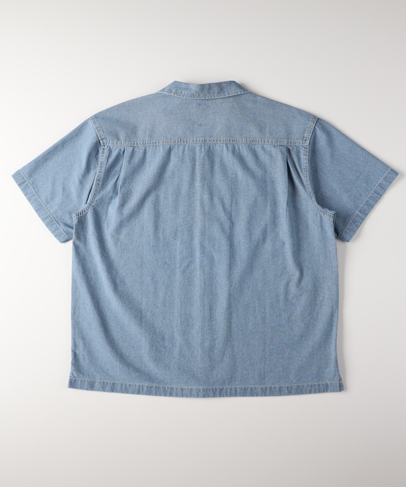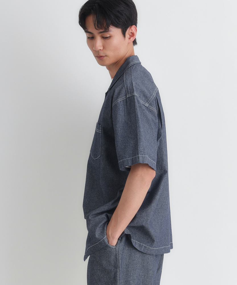 風合い豊かなシャンブレーが、大人の夏を彩る。羽織るだけでこなれ感。爽やかなオープンカラー。日常に溶け込む、洗練された大人のベーシック。■Point・奥行きのあるシャンブレー生地特有の霜降り状のムラ感。着るほどに肌に馴染みます。豊かな風合いがこなれた印象に。・肌に優しいコットン100%ナチュラルで柔らかな質感。通気性が良く快適な着心地。汗ばむ季節も爽やかに過ごせます。・首元すっきりのオープンカラー程よい抜け感を演出する襟元。顔周りを涼しげに見せます。リラックスした大人の雰囲気に。・絶妙なレギュラーシルエット程よくゆとりのあるサイズ感。だらしなく見えない美しい形。どんな体型にも自然にフィット。・アクセントのステッチワーク白糸のステッチが程よい抜け感。爽やかな白ボタンがポイント。さりげないワークテイストをプラス。・着回しやすいデニムライクな色合い爽やかな淡色と落ち着いた濃色。幅広いボトムスと好相性。大人のカジュアルスタイルに最適。【仕様】抜け感のあるオープンカラーが特徴的な半袖シャツです。胸元のパッチポケットや、全体に施された白糸のステッチがさりげないワークテイストをプラス。裾はフラットなスクエアヘムでサイドスリットが入っており、一枚着としても羽織りとしてもバランスよく決まる、大人の日常に寄り添うデザインに仕上がっています。【素材】肌触りの良い綿100%のシャンブレー生地を採用しています。特有の霜降り状のムラ感による、奥行きのある豊かな表情が最大の魅力。柔らかな質感で通気性にも優れ、暑い日も快適に着用いただけます。着るたびに肌に馴染み、風合いが増していく過程を楽しめる、ワードローブに長く置いておきたくなる一枚です。【スタイリング】フロントのボタンを開けて白Tシャツの上にサッと羽織れば、清潔感漂う大人のカジュアルスタイルが完成します。ボトムスはチノパンやスラックスを合わせてきれいめにまとめるのがおすすめ。同素材のボトムスと合わせたセットアップ風のスタイリングも、統一感が生まれ洗練された印象を与えてくれます。 【セットアップで着用可能なアイテムはこちら】PL26101200059 シャンブレーワイドパンツ/セットアップ対応PL26101200060 シャンブレーテーパードパンツ/セットアップ対応