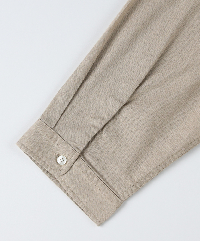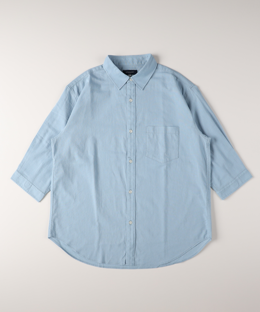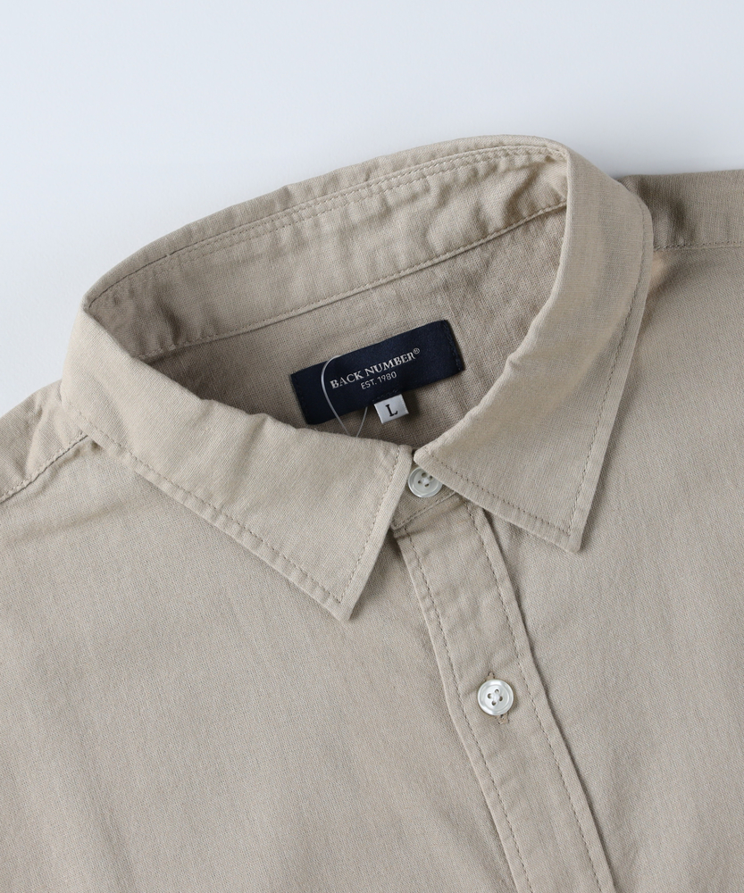 さらりと羽織って、大人の余裕を纏う。抜け感をつくる、絶妙バランスの七分袖。涼しげな綿麻素材で、季節を繋ぐ頼れる一枚。■Point・抜け感を生む七分袖手首を見せてすっきりと。時計やアクセも映えます。ロングシーズン活躍します。・清涼感あふれる綿麻素材さらりとした心地よい肌触り。ナチュラルな風合いが魅力。暑い日も快適に過ごせます。・現代的なリラックス感ゆったりとしたサイジング。さっと羽織るだけでこなれ感。大人の余裕を感じさせます。・実用的な胸ポケットワークテイストのアクセント。さりげないデザインポイント。ちょっとした小物を収納可能。・清潔感あるレギュラーカラーきちんと感もキープします。カジュアルすぎない印象に。どんなスタイルにもマッチ。・汎用性の高いカラー展開着回しやすい色味をご用意。日常使いにぴったりです。クローゼットの即戦力に。【仕様】ゆとりのある現代的なリラックスシルエットを採用した七分袖シャツです。古き良きワークテイストを感じさせる胸ポケットがさりげないアクセントに。裾は緩やかなラウンドカットで、一枚で着ても羽織りとして使ってもバランス良く決まります。大人の日常に寄り添う、計算されたベーシックな一枚です。【素材】ナチュラルな風合いが魅力の綿麻素材を使用しています。さらりとしたドライな肌触りで、汗ばむ季節でも快適な着心地をキープします。洗いをかけるごとに肌に馴染むような変化を楽しめるのもポイント。薄すぎず適度なハリ感があり、ラフになりすぎない清潔感のある上品な印象を与えてくれます。【スタイリング】ボタンを開けて無地のTシャツの上に羽織れば、リラックス感のある大人の休日スタイルが完成します。ボトムスはテーパードパンツやチノパンを合わせて、すっきりとまとめるのがおすすめです。足元にスリッポンやレザー系のサンダルを合わせると、より季節感のある都会的なコーディネートに仕上がります。【BACK NUMBER】ワーク・ミリタリーといったアメリカンカジュアルを根幹に、古き良きヴィンテージウェアの魅力を受け継ぎながらも、現代のライフスタイルや着こなしに合わせた素材・シルエットで再構築した、【Re-Vintage】をコンセプトに掲げるブランド。