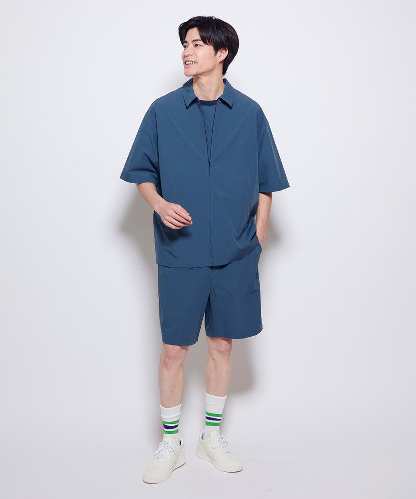 夏を快適にする「機能美」シャツ。涼しさも、タフさも、この一枚に凝縮。街着からアウトドアまで、大人の休日をアップデート。■Point・触れた瞬間「ひんやり」接触冷感袖を通した瞬間に感じる心地よい冷たさ。暑い日の外出も、涼しく快適にサポートします。汗ばむ季節の頼れるパートナーに。・急な雨も安心の「耐久撥水」水を弾く加工で、変わりやすい天気にも対応。汚れが付きにくいのも嬉しいポイント。アウトドアやレジャーシーンでも活躍します。・動きを妨げない「ストレッチ性」縦横に伸びる生地が、体の動きにフィット。アクティブに動く日もノーストレスな着心地。車の運転や子供との遊びにも最適です。・羽織るだけで決まる「フロントジップ」Tシャツの上にサッと羽織れるジップ仕様。スポーティながらもモダンな印象を演出します。ボタン留めのシャツとは違う、新鮮なスタイル。・風が抜ける「背中ベンチレーション」背面に通気口を設け、熱を効率的に逃がします。衣服内の蒸れを抑え、ドライな着心地を持続。機能的なディテールがデザインのアクセントにも。・タフに使える「耐摩耗&ワッシャー感」摩擦に強く、ラフに扱えるナイロン素材。ワッシャー加工がこなれた雰囲気に。アイロンいらずで、洗いざらしで着られます。【仕様】ややゆったりとしたリラックスシルエットに、スポーティなフロントジップを組み合わせたモダンな一着。シャツとしてのきちんと感を残しつつ、コーチジャケットのようなアウター感覚でも着用可能です。背面のベンチレーションなど、プロスペックのアウトドアウェアに見られる機能的なディテールを、都会的なデザインに落とし込みました。【素材】ナイロンとポリウレタンを混紡した高機能素材を使用しています。ドライタッチな肌触りと、ソフトなワッシャー感が特徴で、肌への張り付きを軽減。「耐久撥水」「耐摩耗」「接触冷感」というマルチな機能を備えながら、マットで落ち着いた風合いが大人の品格を保ちます。【スタイリング】インナーにシンプルな白Tシャツを合わせ、フロントを開けて羽織るだけで都会的なスポーツミックススタイルが完成します。同素材や同系色のショートパンツと合わせたセットアップ風の着こなしも、トレンド感がありおすすめです。足元はスニーカーやスポーツサンダルで軽快にまとめるのが、大人の休日スタイルの正解です。【CAMP7】CAMP7は、1971年アメリカ合衆国コロラド州ボルダーにて設立されたブランド。ロッキー山脈に集まる世界中のクライマーたちの要望に応え、常にハイクオリティな商品を開発・提供してきました。流行に左右されず、機能を追い求める姿勢が、古き良き時代のアメリカ製品として、愛好家たちの間で支持を受けています。 【セットアップで着用可能なアイテムはこちら】CP26101200065 【PLAY PROOF】アクティブショートパンツ/セットアップ対応
