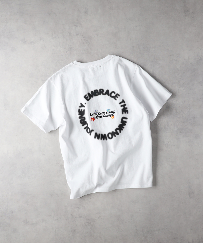 【仕様】ユニークなぼかしプリントとキャッチーな刺繍がポイントのTシャツ。背面には独特のメッセージがあしらわれ、スタイルに遊び心を加えます。シンプルながらも存在感を放つデザインで、デイリースタイルをより洗練された印象に仕上げます。【素材】柔らかく肌触りの良いコットン素材を使用し、快適な着心地を実現。通気性が良く、季節を問わず快適に着用できるため、デイリー使いにぴったりの一枚です。【スタイリング】デニムやチノパンと合わせてカジュアルスタイルを演出。さらに、スニーカーやローファーを添えることで、リラックス感とおしゃれ感を共存させたコーディネートに。シンプルなボトムスと合わせることで、Tシャツのデザインを引き立てることができます。