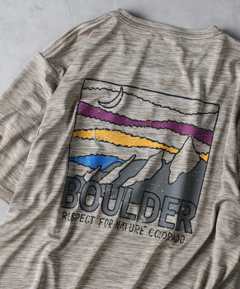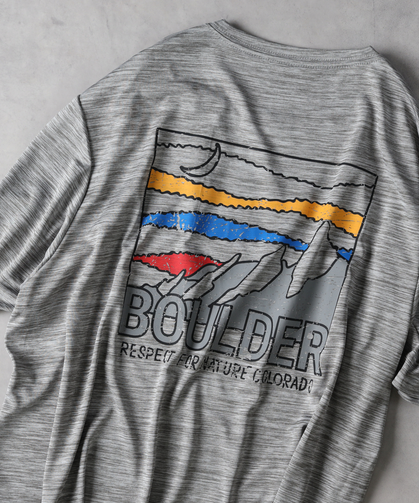 【仕様】バックに印象的なグラフィックロゴを配置したデザイン。アウトドア感を漂わせながら、カジュアルなスタイルにもピッタリ。軽やかな雰囲気の中に、遊び心が感じられる一枚です。【素材】 吸水速乾性と接触冷感を兼ね備えたポリエステル素材を使用し、夏場でも快適な着用感を提供します。汗をかいてもすぐに乾き、爽やかな着心地が続くため、アクティブなシーンに最適です。 【スタイリング】シンプルなショートパンツやカーゴパンツと合わせることで、アウトドアスタイルを楽しめます。スニーカーを合わせてアクティブ感を出すと、リラックスした雰囲気の中にも洗練された印象を与え、週末のお出かけにぴったりのコーディネートが完成します。