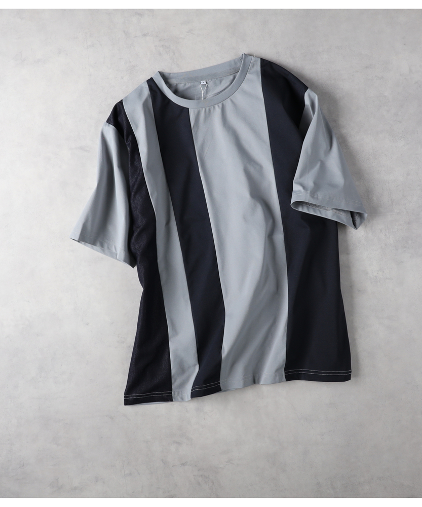【接触冷感】綿タッチ天竺パネル切替Tシャツ