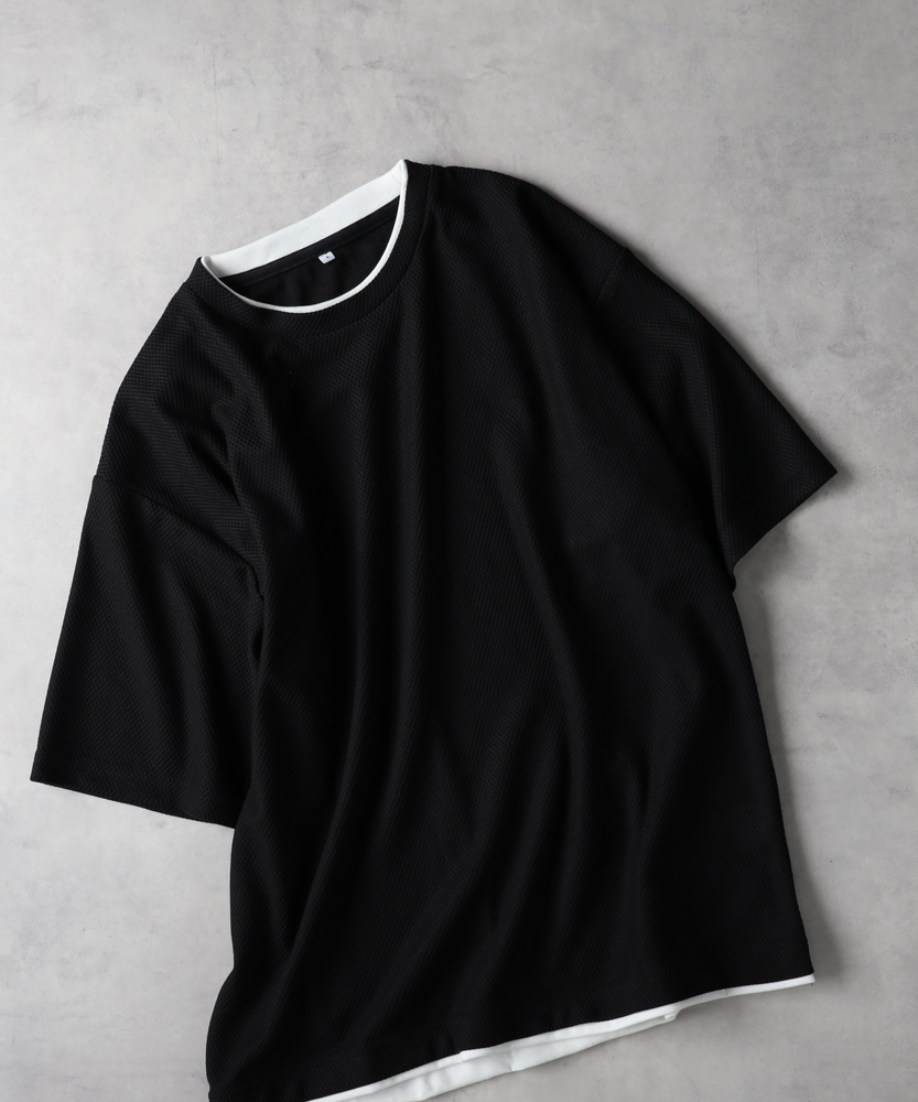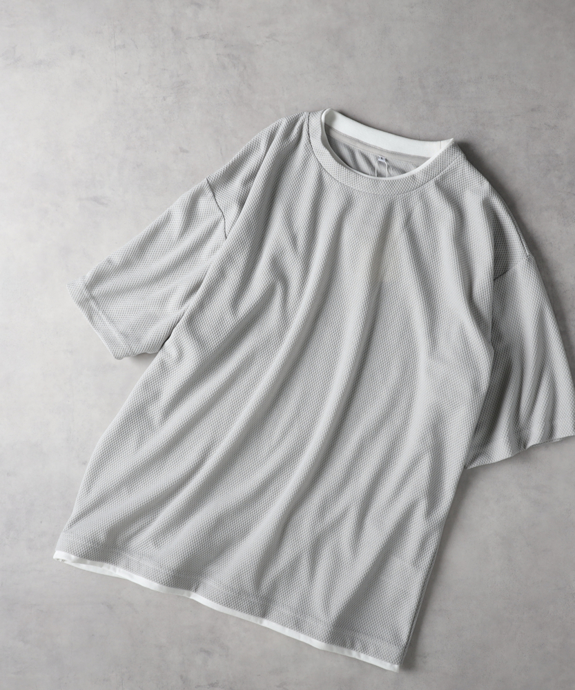 【仕様】ゆったりとしたシルエットにフェイクレイヤード仕様を取り入れた一着は、トレンドを意識した洗練された印象を与えます。デイリー使いにもぴったりで、様々なスタイリングにマッチするデザインです。【素材】 ポリエステル100%のドライタッチ素材を使用し、速乾性に優れています。軽やかで肌触りが良く、通気性も抜群。快適な着心地が持続し、アクティブなシーンにも最適です。 【スタイリング】 シンプルなタックパンツやデニムと合わせて、リラックスしたカジュアルスタイルに。レイヤード感を引き立てるために、シンプルなアクセサリーやスニーカーを加えて、洗練された印象に仕上げてください。