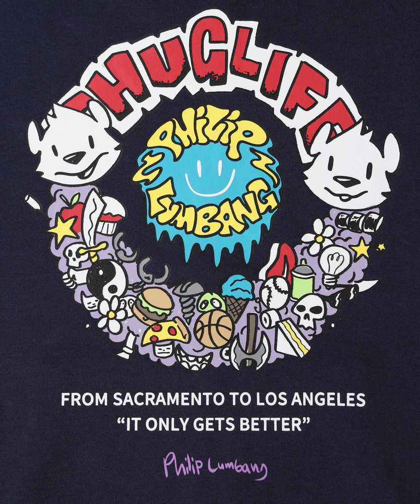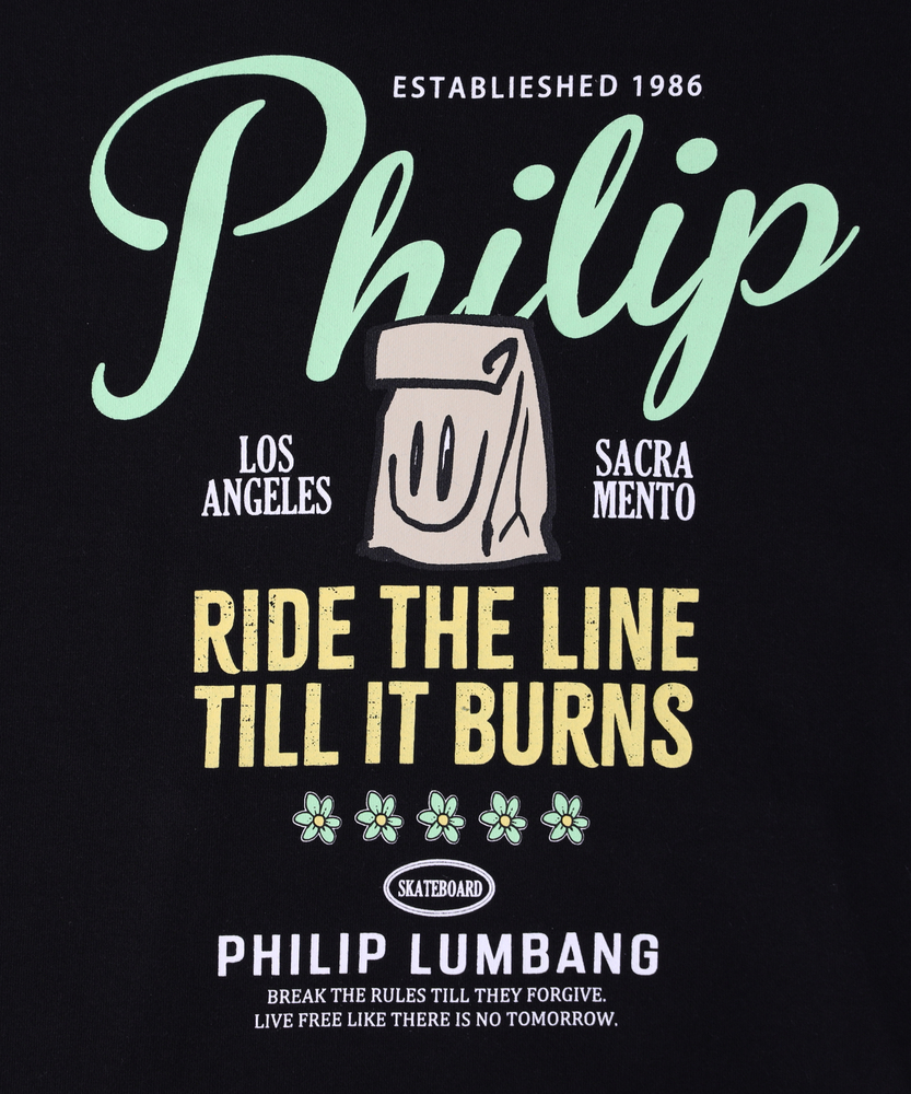 フィリップ・ランバン(Philip Lumbang)は、ロサンゼルスを拠点とするストリート系グラフィックアーティストで、イラストレーション、デザイン、壁画、ファインアートなど多岐にわたる作品を手掛けています。彼の作品は、ユーモアと社会的メッセージを融合させたスタイルで知られています。自身の名を冠したブランド『Philip Lumbang』は、彼のアートスタイルを軸に、スケート、音楽、グラフィティアート、ダンスといったストリートカルチャーのエネルギーを具現化し、それぞれの要素を大胆に融合させたストリートブランドです。【仕様】旬の手書きアートワークが魅力的なこのスウェットパーカーは、ストリートスタイルに最適な大きめシルエット。バックとフロントに異なるアートプリントが施され、個性的で遊び心あふれるデザインが特徴です。全3カラー展開で、コーディネートの幅も広がります。【素材】 CVC裏毛を使用したこのパーカーは、柔らかさと耐久性を兼ね備えています。ややゆったりとしたシルエットが、リラックスした着心地を提供し、デイリーユースにもぴったり。カジュアルなシーンでも、センス良く着こなせる一着です。 【スタイリング】 デニムやジョガーパンツと合わせて、リラックスしたストリートスタイルを楽しむのがおすすめ。スニーカーやブーツと組み合わせれば、アクティブな印象に。シンプルなキャップやトートバッグを加えることで、より洗練されたコーディネートに仕上がります。