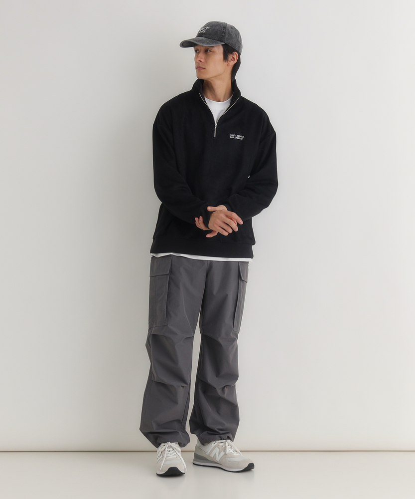 【仕様】ゆったりとしたシルエットが特徴のハーフZIPトレーナーは、カジュアルながらも上品さを保つ一着。着丈は通常のスウェットよりも長めに設計され、さりげないスタイルアップを実現します。スムーズなファスニングが施されたネックラインは、さまざまな着こなしに対応可能です。【素材】 贅沢なフェイクスエード素材を使用しており、肌触りが滑らかで、日常使いにぴったり。軽やかな着心地ながら、適度な暖かさを提供し、シーズンを通じて活躍するアイテムです。この素材の特性により、カジュアルさの中にもカジュアルすぎない洗練された印象を与えます。 【スタイリング】 さまざまなコーディネートに取り入れやすく、特にストレートパンツや tapered シルエットのパンツと相性抜群。シンプルな白のTシャツと合わせて、オフィスカジュアルとしても、休日のお出かけにも映えるスタイルを演出。足元にはスニーカーやローファーを選び、リラックスした雰囲気を楽しんで。 【着用コメント】つるんとした光沢感のあるフェイクスエード素材は大人っぽく上品な雰囲気になります。167センチMサイズでゆったりと着用できるサイズ感で、ポリエステルなので見た目より軽く着られますよ◎デニムなど素材感のあるボトムと相性抜群です。