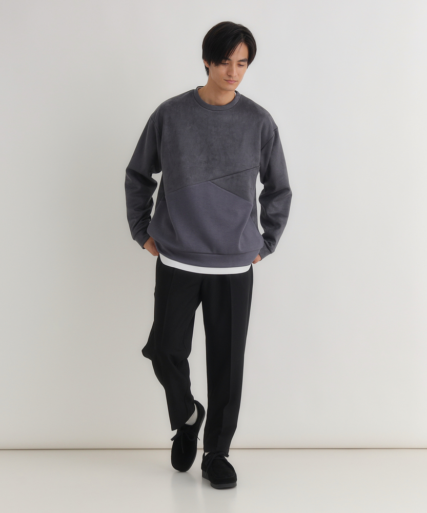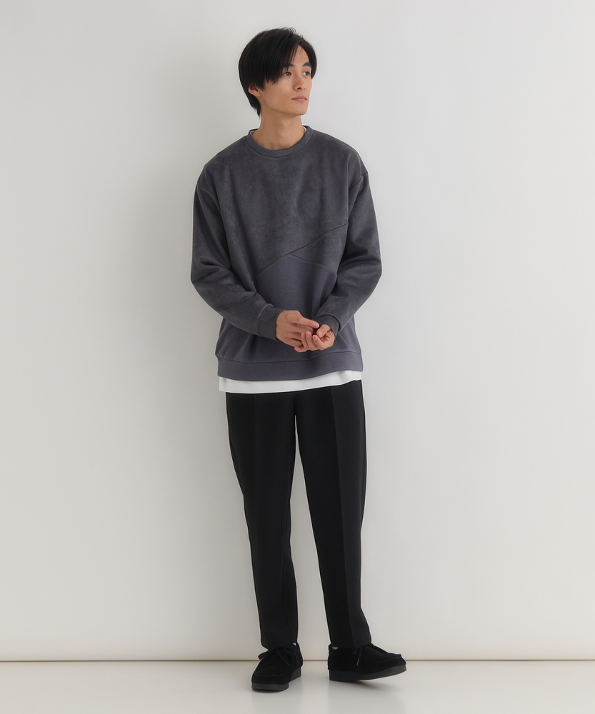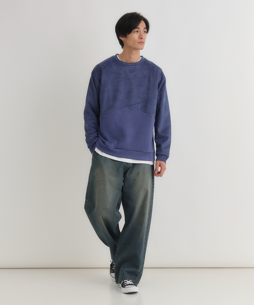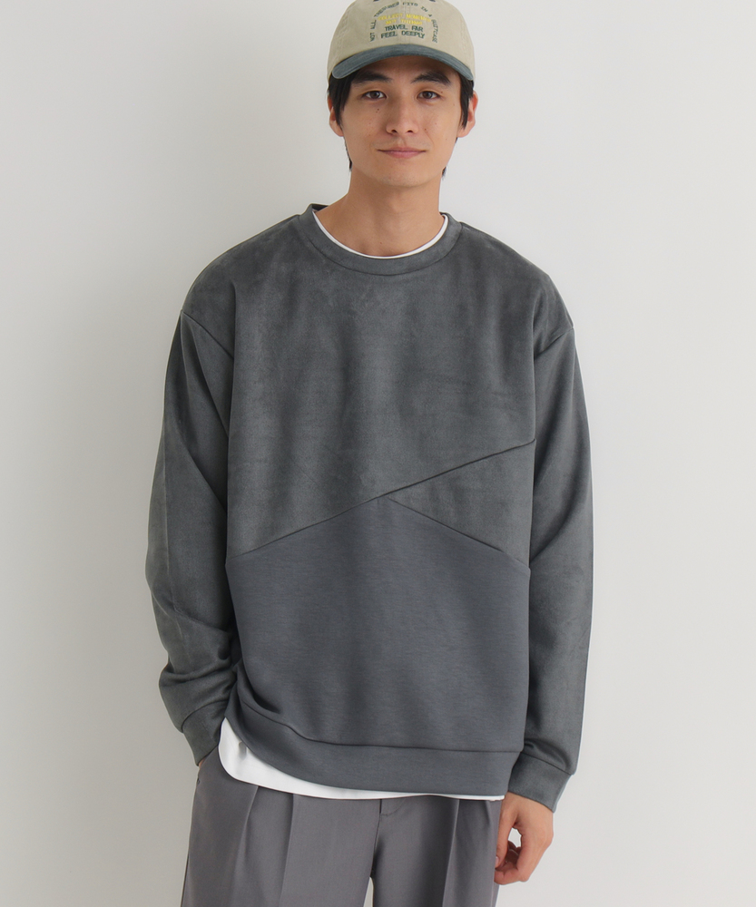 【仕様】ゆったりとしたシルエットが特徴の切り替えデザインプルオーバー。このトレーナーは、二つの素材が独自の美しさを引き立てており、シンプルながら目を引くスタイルを演出します。洗練された印象を与えるデザインが、日常のコーディネートに差をつけます。【素材】 ダンボールとフェイクスエード素材を組み合わせたこのトレーナーは、特有のタッチ感が魅力。ダンボール素材は軽量で快適な着心地を提供し、フェイクスエードは上品な質感を加え、暖かさも兼ね備えています。リラックス感とスタイルを両立させています。 【スタイリング】 カジュアルなパンツとの相性が良く、シンプルなコーディネートに取り入れるだけで、洗練のある印象に仕上がります。さらっと羽織るだけで、サマになる一着。レイヤードスタイルにも活用できる万能アイテムです。