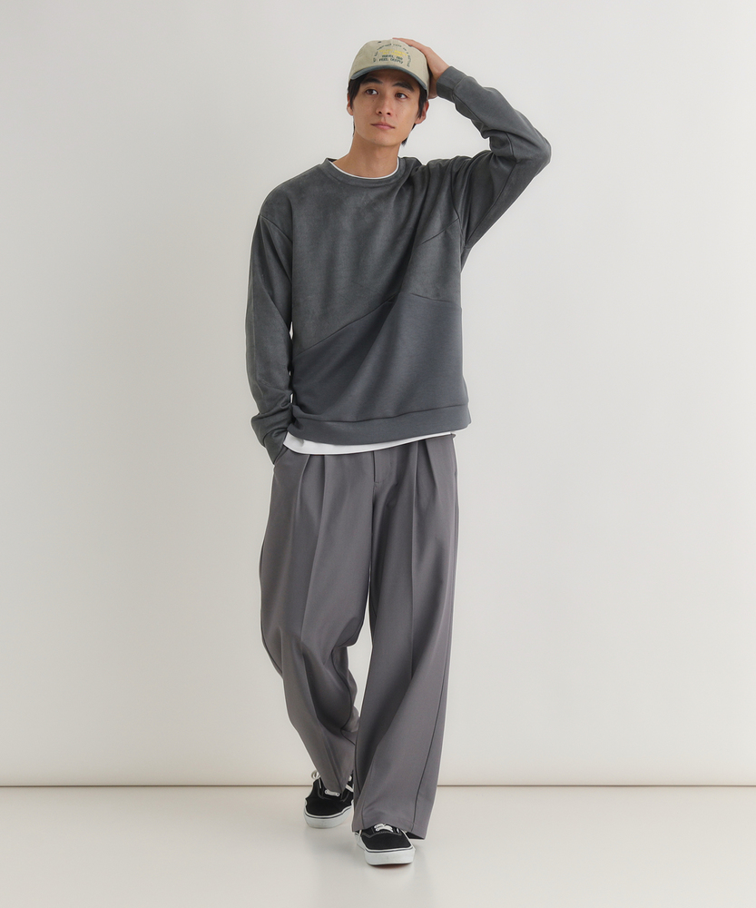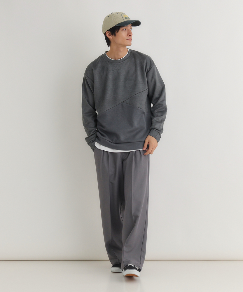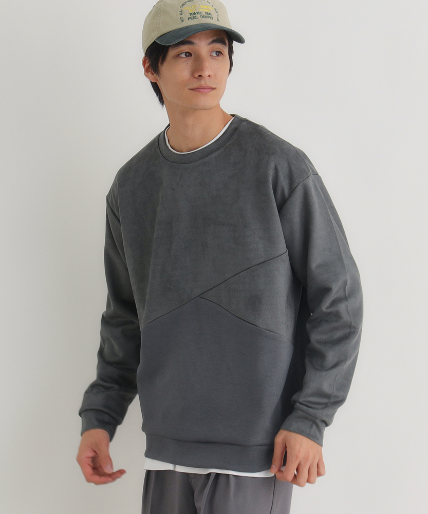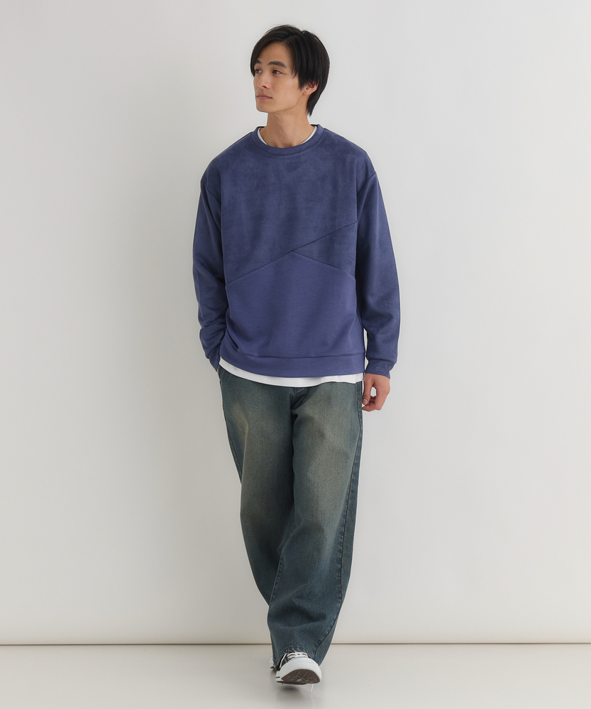 【仕様】ゆったりとしたシルエットが特徴の切り替えデザインプルオーバー。このトレーナーは、二つの素材が独自の美しさを引き立てており、シンプルながら目を引くスタイルを演出します。洗練された印象を与えるデザインが、日常のコーディネートに差をつけます。【素材】 ダンボールとフェイクスエード素材を組み合わせたこのトレーナーは、特有のタッチ感が魅力。ダンボール素材は軽量で快適な着心地を提供し、フェイクスエードは上品な質感を加え、暖かさも兼ね備えています。リラックス感とスタイルを両立させています。 【スタイリング】 カジュアルなパンツとの相性が良く、シンプルなコーディネートに取り入れるだけで、洗練のある印象に仕上がります。さらっと羽織るだけで、サマになる一着。レイヤードスタイルにも活用できる万能アイテムです。