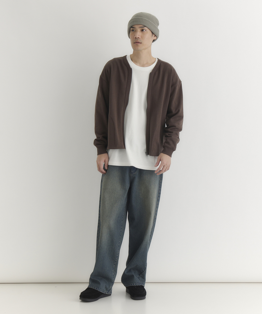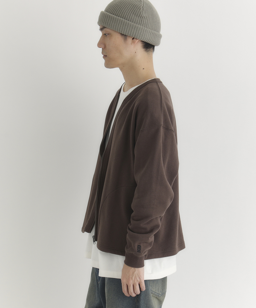 【仕様】洗練された印象のジップカーディガンは、ややゆったりとしたシルエットがリラックス感を演出します。シンプルなパターンながら、フロントのジップや大きめのポケットが実用性を加え、普段使いにぴったりのデザインです。【素材】 ヘビーオンスの綿100%裏毛素材を使用し、しっかりとした質感が魅力的。保温性に優れ、柔らかな肌触りが特徴で、快適さを保ちながらもカジュアルスタイルを楽しめます。 【スタイリング】 シンプルなTシャツやシャツの上に羽織ることで、軽やかな重ね着スタイルが楽しめます。スニーカーやローファーで、カジュアルながらもスタイリッシュなコーデに仕上げましょう。