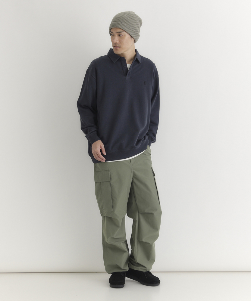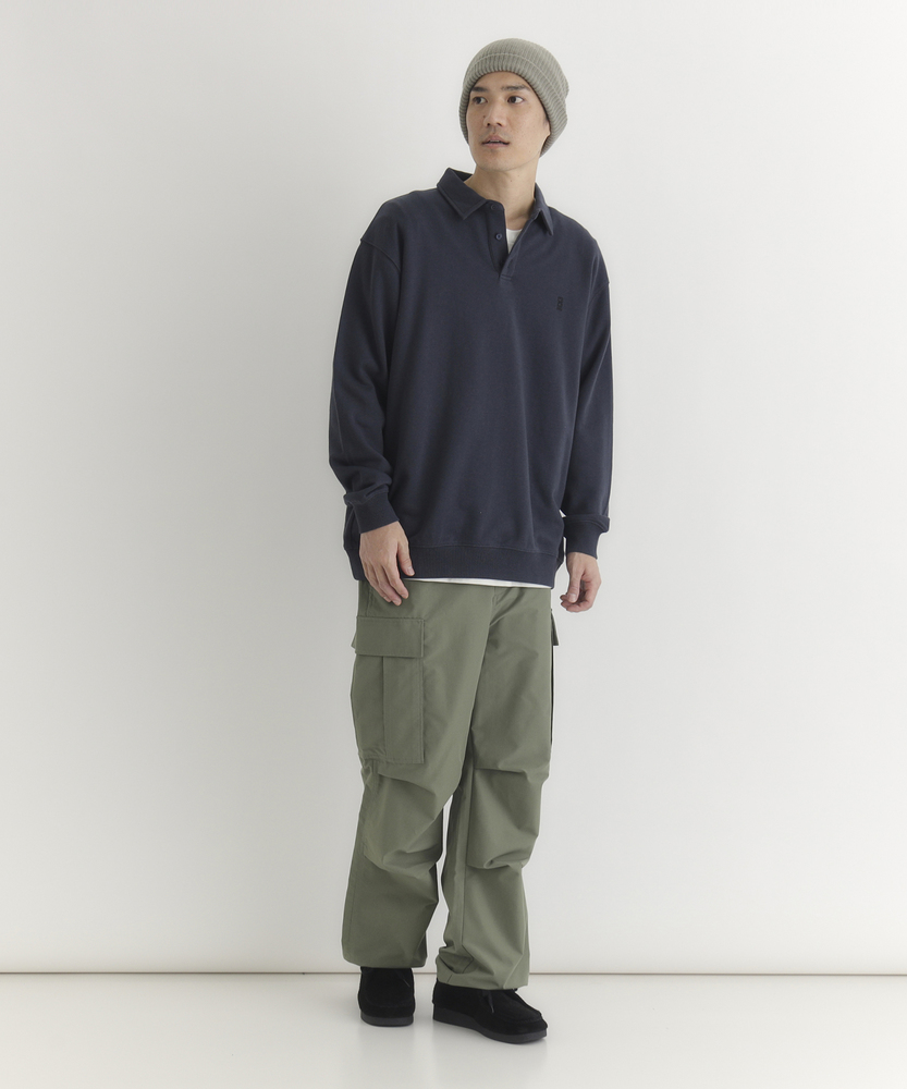 【仕様】スタイリッシュな襟付きロングスリーブトレーナーは、カジュアルシーンを優雅に演出します。ややゆったりとしたシルエットが体型をカバーしつつ、シャープな襟が上品さを加えています。シンプルなボタンデザインがアクセントです。【素材】 ヘビーオンスの綿100%裏毛素材で、しっかりとした生地感が特徴です。暖かく、快適な着心地を提供しながら、耐久性も兼ね備えています。リラックスした印象を与えつつ、適度なカジュアル感が楽しめます。 【スタイリング】 カジュアルなパンツと合わせることで、シンプルながらも洗練されたスタイルに。スニーカーやローファーを選んで、カジュアルとキレイめを絶妙にミックス。季節の変わり目に羽織るアウターとしても活躍します。