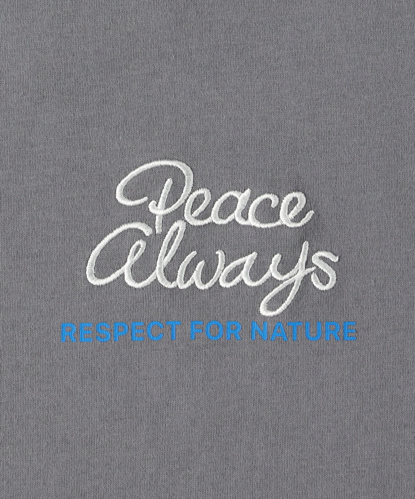 【仕様】シンプルでありながらメッセージ性を持つロングスリーブTシャツ。胸元には刺繍とプリントが施され、心を和ませるアイテムです。ややゆったりとしたシルエットがリラックスした着こなしを可能にし、デイリーユースに最適です。【素材】 リサイクルコットンをミックスしたしっかりとした素材感が魅力。持続可能な選択肢でありながら、柔らかさと耐久性も兼ね備えています。快適な着心地を実現し、日常のコーディネートに幅広く活用できます。 【スタイリング】カジュアルなパンツやジーンズとの相性が抜群。アウターやカーディガンとのレイヤードスタイルでも、シンプルながらも洗練された印象を演出します。日常使いにふさわしい一着として、活躍すること間違いなしです。