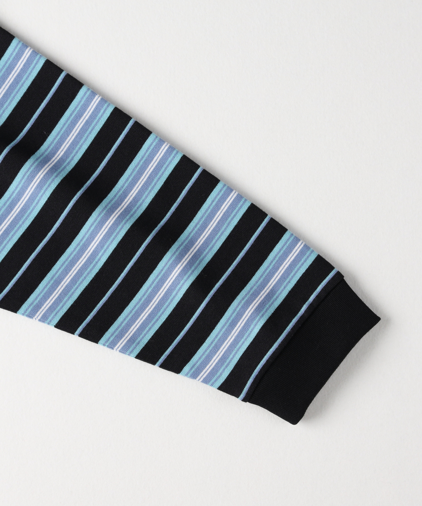 【仕様】クリーンでモダンな印象を与えるこのロングスリーブTシャツは、繊細なカラーボーダーが特徴。ストライプのリズミカルなデザインが、シンプルながらも洗練された雰囲気を演出し、デイリースタイルに華やかさをプラスします。どんなスタイルにもマッチしやすいオールマイティなアイテムです。【素材】 柔らかく肌触りの良い生地を使用しており、快適な着心地を実現。通気性に優れ、自然な落ち感でリラックスしたシルエットを演出します。洗濯後も型崩れしにくく、デイリーに気軽に活用できるのが魅力です。 【スタイリング】 ブラックを基調としたベースに、爽やかなカラーボーダーが映える一枚。デニムやスウェットパンツと合わせてカジュアルに。また、ジャケットを羽織れば、オフィスカジュアルにも最適。アクセサリーで個性を加えて、自分らしいスタイルを楽しんでください。