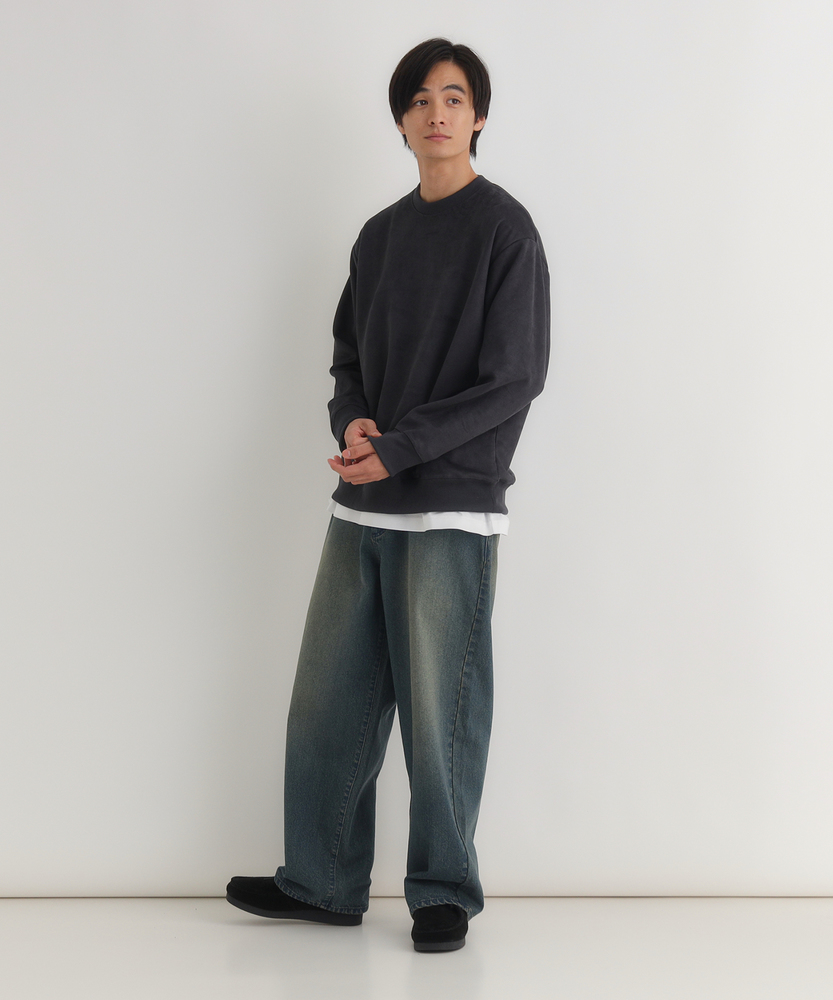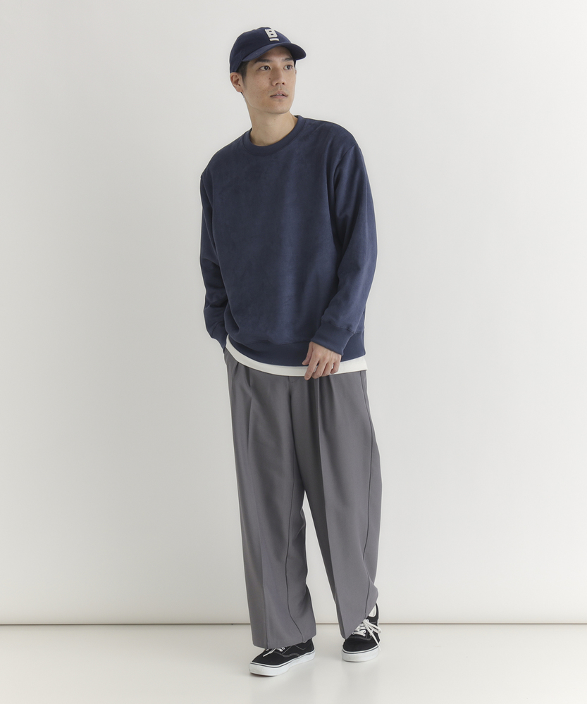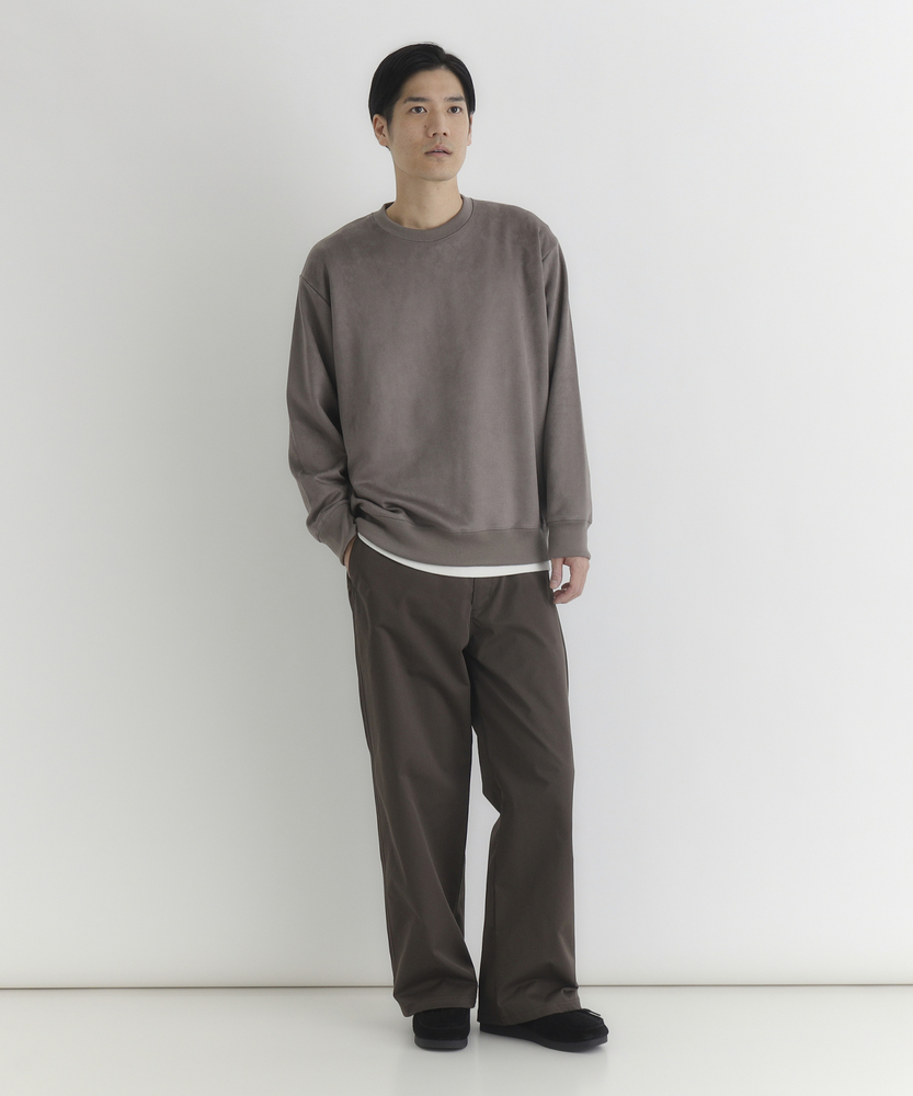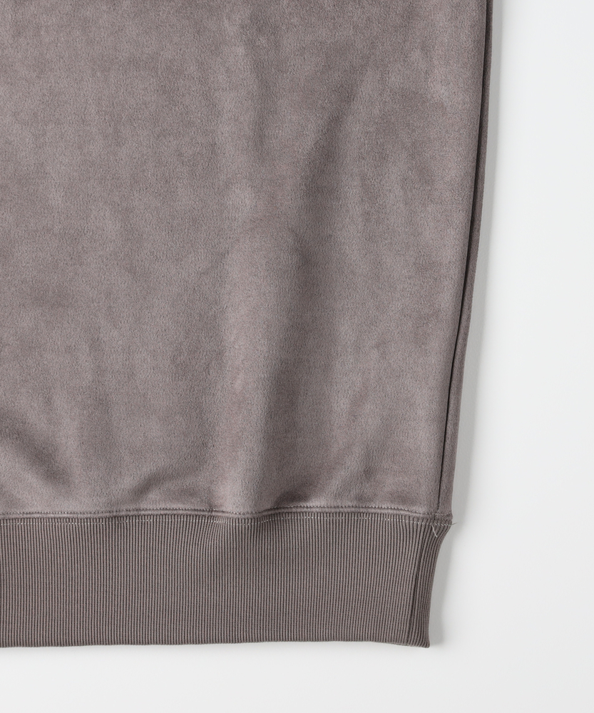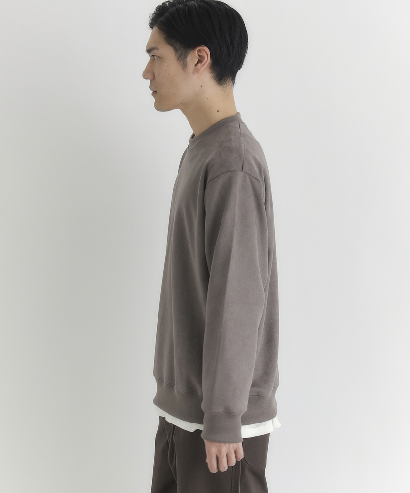 【仕様】シンプルなプルオーバーは、どんなスタイルにも合わせやすいレギュラーフィットで、日常使いに最適なアイテムです。落ち着いたシルエットがカジュアルな中にも品格を感じさせ、洗練された印象を演出します。【素材】 柔らかなフェイクスエードダンボール素材は、心地よい肌触りを提供し、動きやすさも抜群です。微光沢のある表面仕上げが上品さをプラスし、デイリーから特別な場面まで、幅広いシーンでの着用が可能となっています。 【スタイリング】シンプルなパンツとの相性が良く、カジュアルスタイルを一段と引き立てます。また、スリムなパンツと合わせることで、スマートで洗練された印象を持ちながらも、リラックスした着こなしが楽しめます。