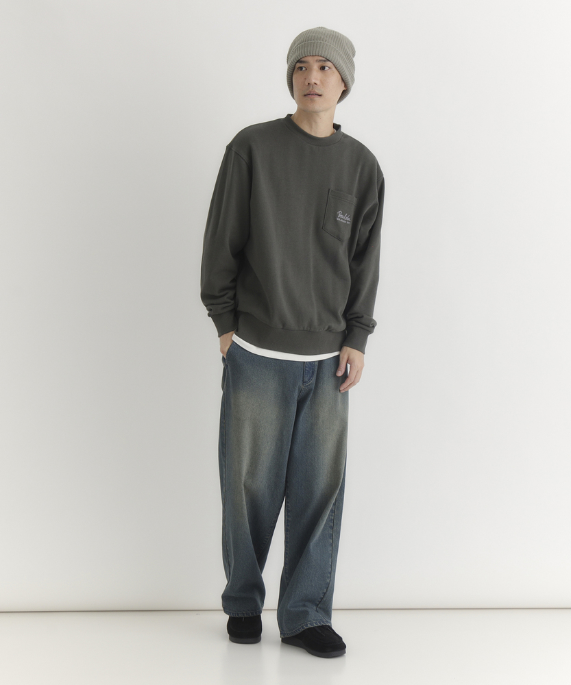 【仕様】胸ポケットに刺繍ロゴを施したシンプルなクルーネックトレーナー。スタイリッシュなデザインながら、使い勝手の良いポケット付きで機能性も兼ね備えています。カジュアルな雰囲気がありながら、どこか洗練された印象を与えます。【素材】 しっかりとした裏毛素材を使用し、保温性を確保しながら快適な着心地を実現。さらに、抗菌防臭加工が施されているため、長時間の着用でも安心して過ごせる一品です。 【スタイリング】 シンプルなと合わせることで、こなれ感のあるカジュアルスタイルが完成。シンプルなスニーカーを合わせれば、リラックスした日常使いに最適です。