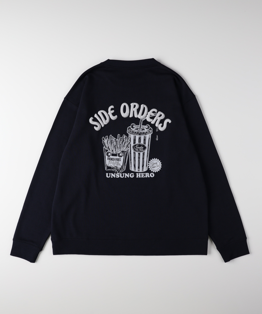 【仕様】クルーネックデザインのトレーナーは、バックに施されたインパクトあるプリントが特徴です。レギュラーフィットのシルエットで、カジュアルとスタイリッシュが融合した一着です。【素材】 TC裏起毛素材を使用し、ふんわりとした柔らかさと保温性を兼ね備えています。寒い季節でも快適に過ごせるため、アウターとして普段使いからアウトドアまで幅広く利用可能です。 【スタイリング】 カジュアルなパンツとの相性が抜群で、リラックスしたスタイルを楽しめます。また、ジャケットとのレイヤードを取り入れて、大人のストリートスタイルを完成させましょう。スニーカーやブーツと合わせることで、さらにおしゃれ度がアップします。